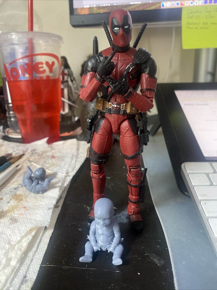 3-D printed unpainted Deadpool baby pool for use with Hasbro 1/12 action figures