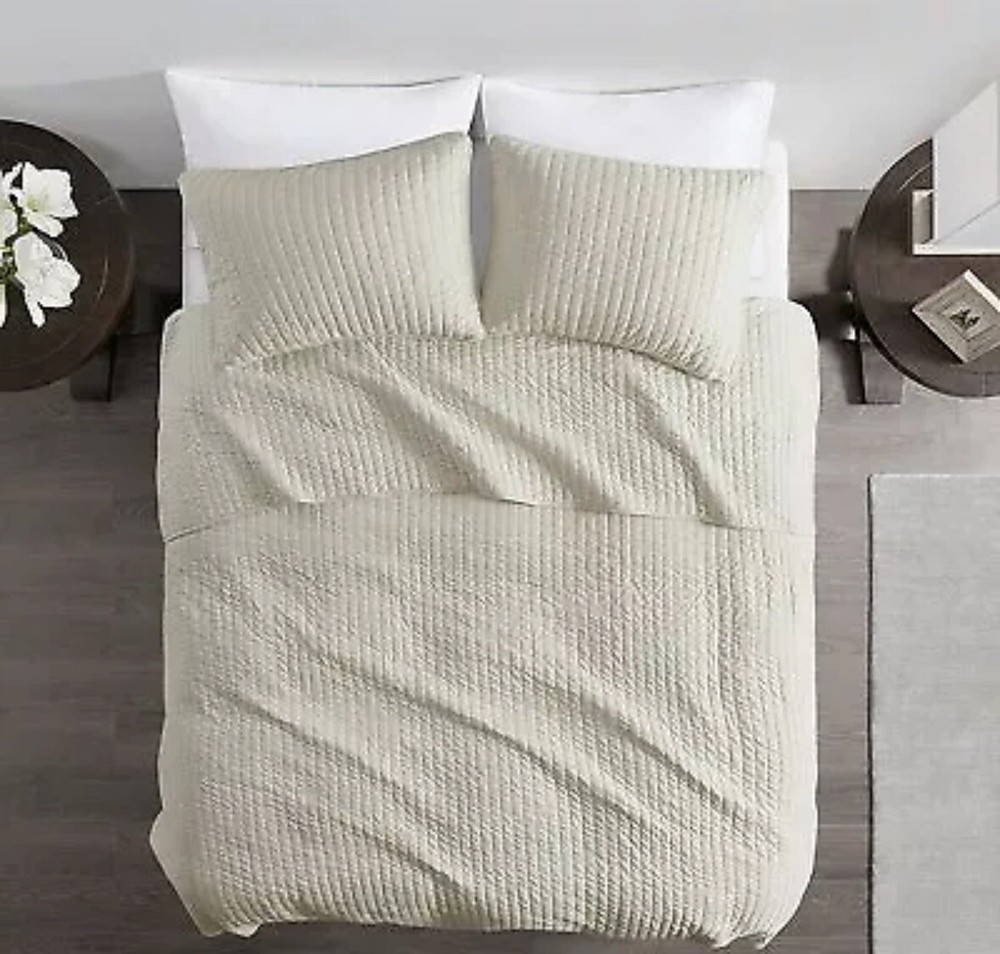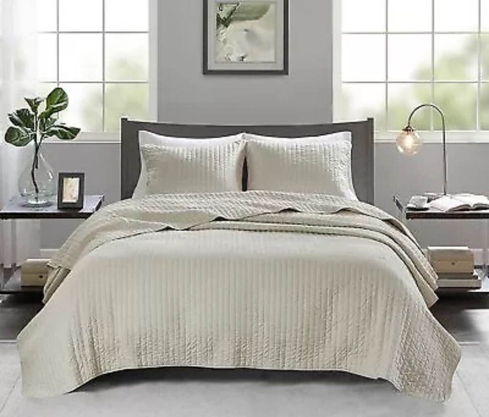 Elevate your bedroom decor with this 3-piece King Mitchell Reversible Coverlet Set in Cream from Madison Park. Crafted from 100% polyester with a thread count of 170, this bedding set is perfect for any bedroom size and type. The set includes a king-sized bedcover, bedspread, and coverlet, all in a beautiful cream color. Ideal for any home and garden setting, this bedding set is sure to add a touch of elegance and comfort to your bedroom. Perfect for those looking for a high-quality, reversible coverlet set, this Madison Park set is a great investment for any homeowner.