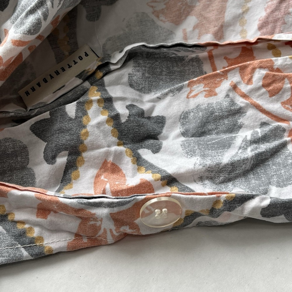3pc Pottery Barn Full/Queen Veronica Medallion Organic Cotton Duvet & Euro Shams Good preowned condition Check photos for details...