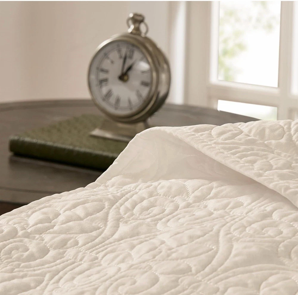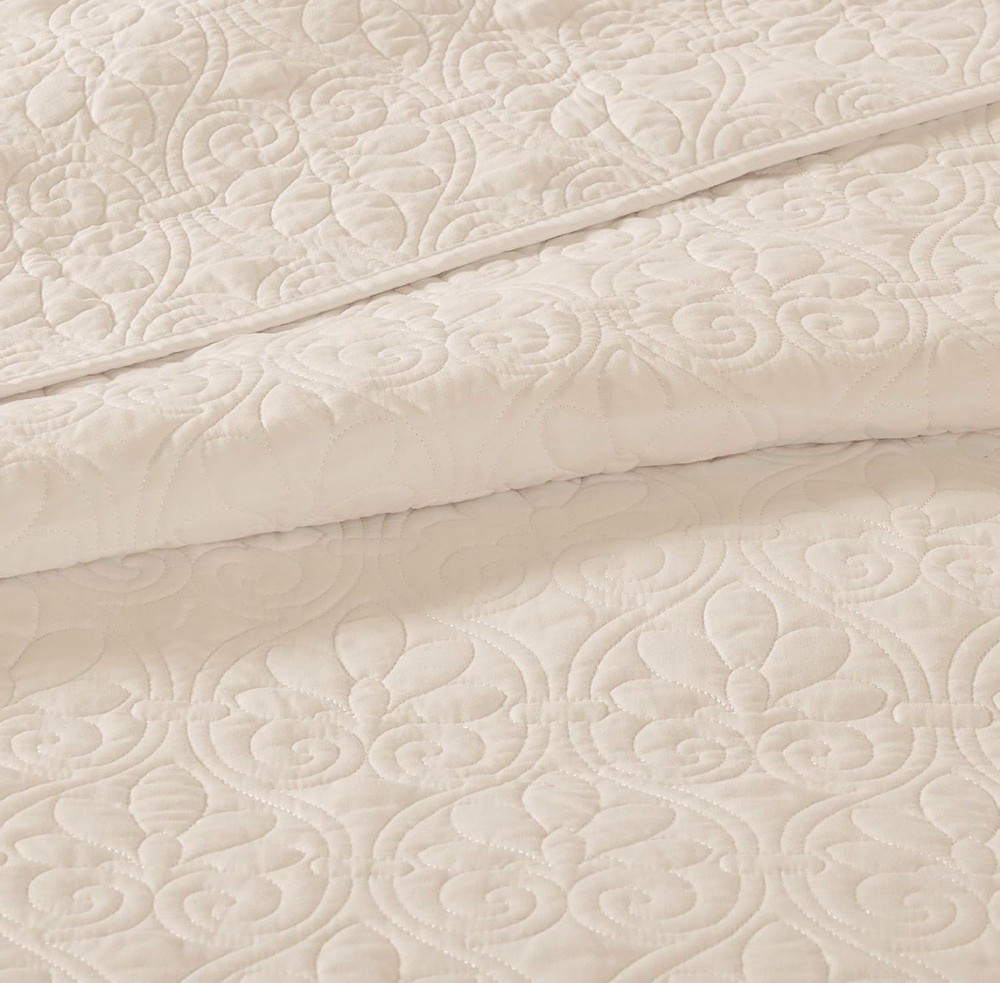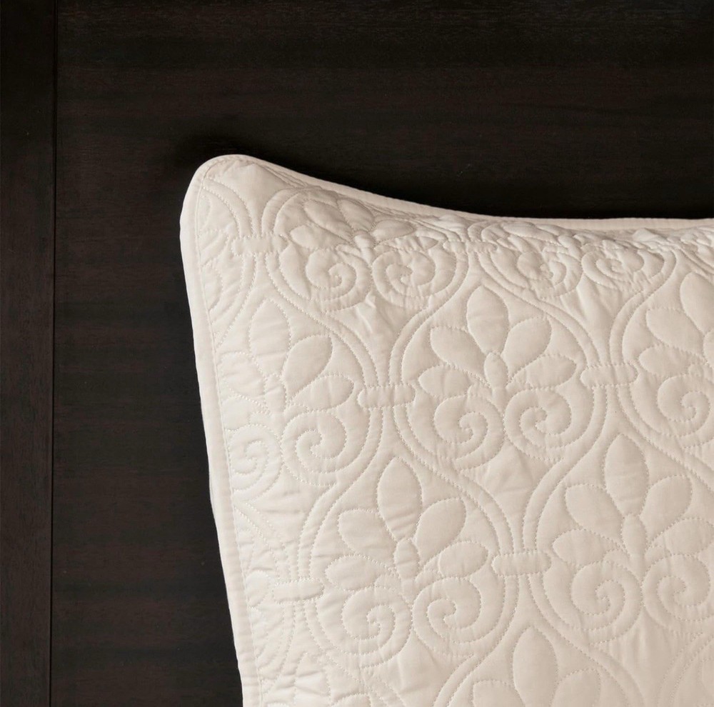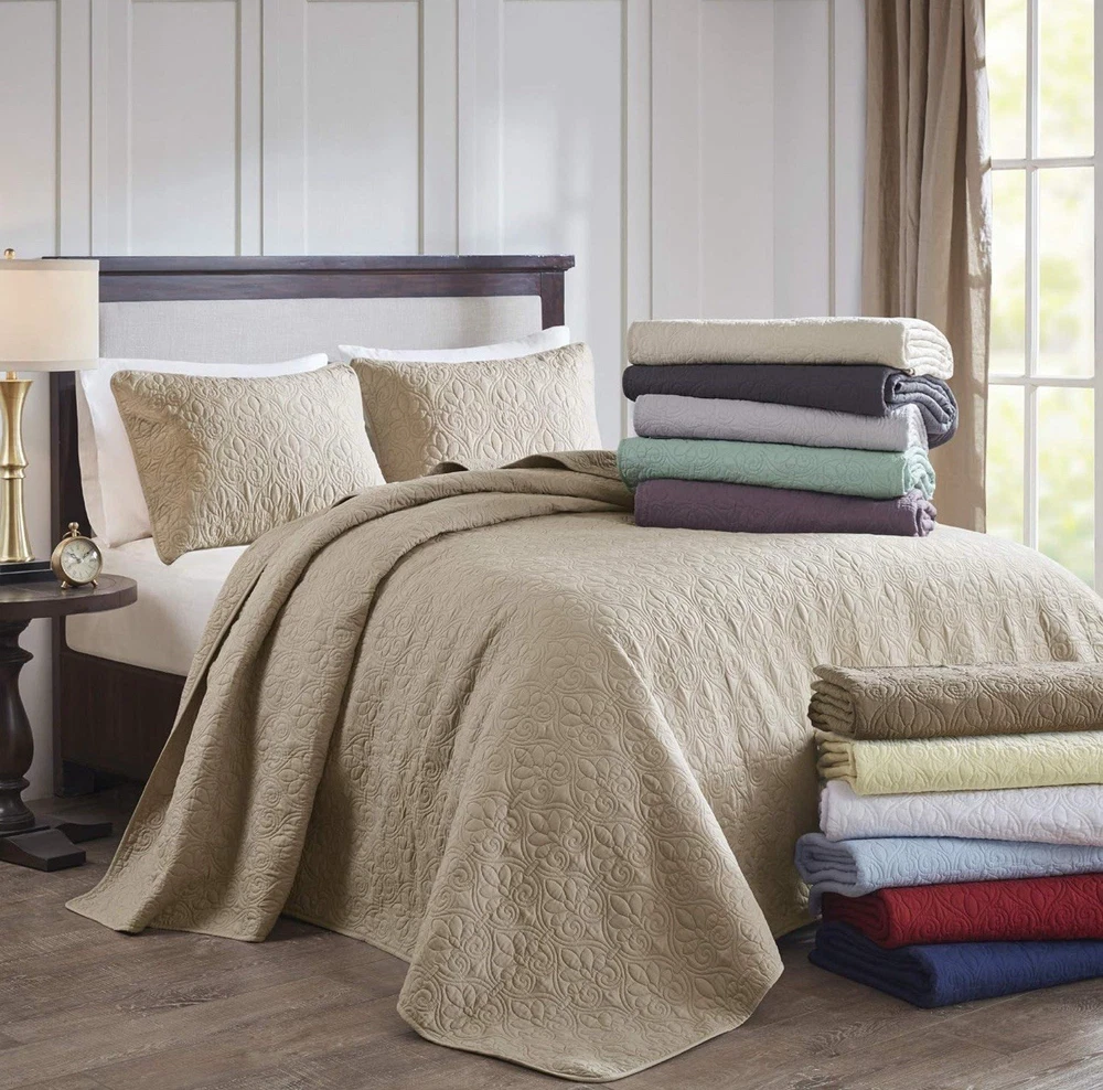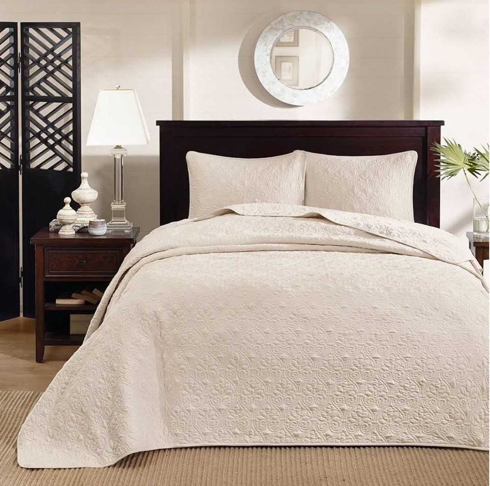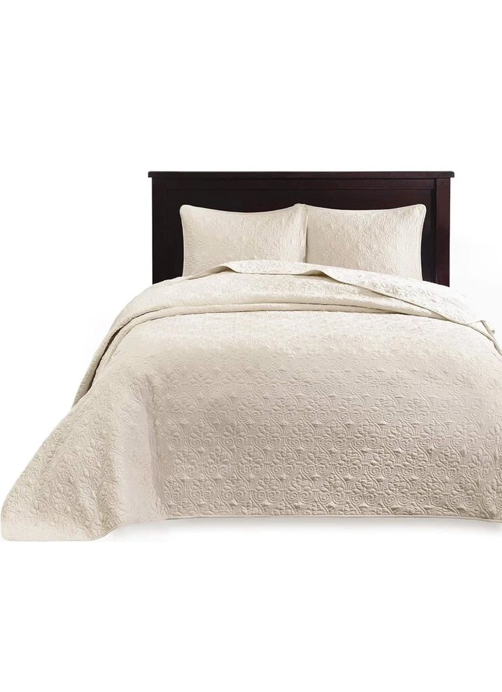 The 3pc Queen Vancouver Reversible Bedspread Set in Ivory by Madison Park is a stylish and comfortable addition to any bedroom. Made of 100% polyester with a thread count of 215, this set includes a bedspread and two pillow shams, perfect for a Queen-sized bed. The ivory color adds a touch of elegance, while the reversible design allows for multiple styling options. Ideal for creating a cozy and inviting atmosphere in your bedroom.
