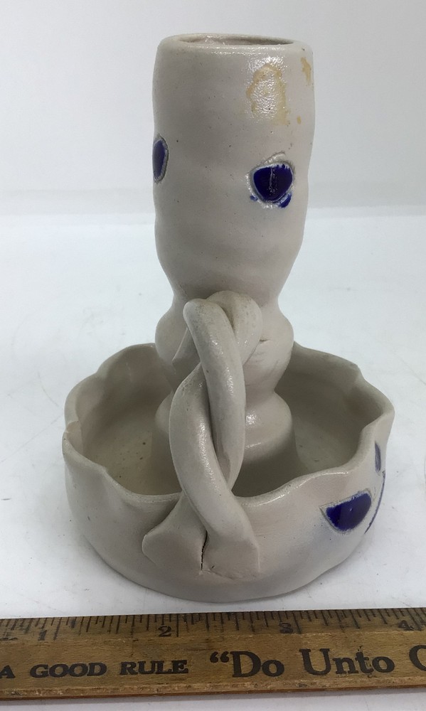 4 1/2" Tall Handmade Studio Art Pottery Chamber Candlestick 3 1/2” Wide Leaves....