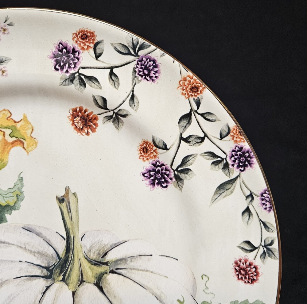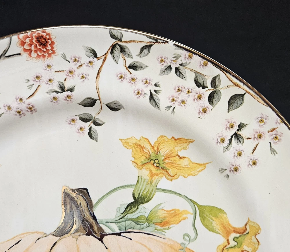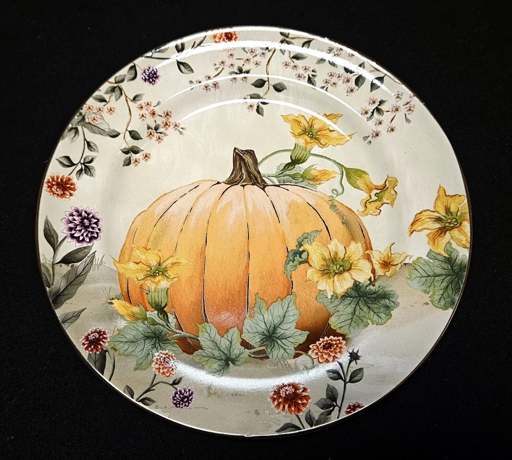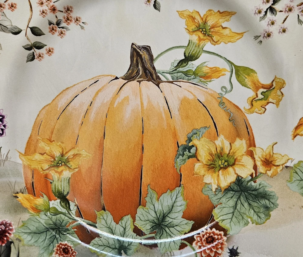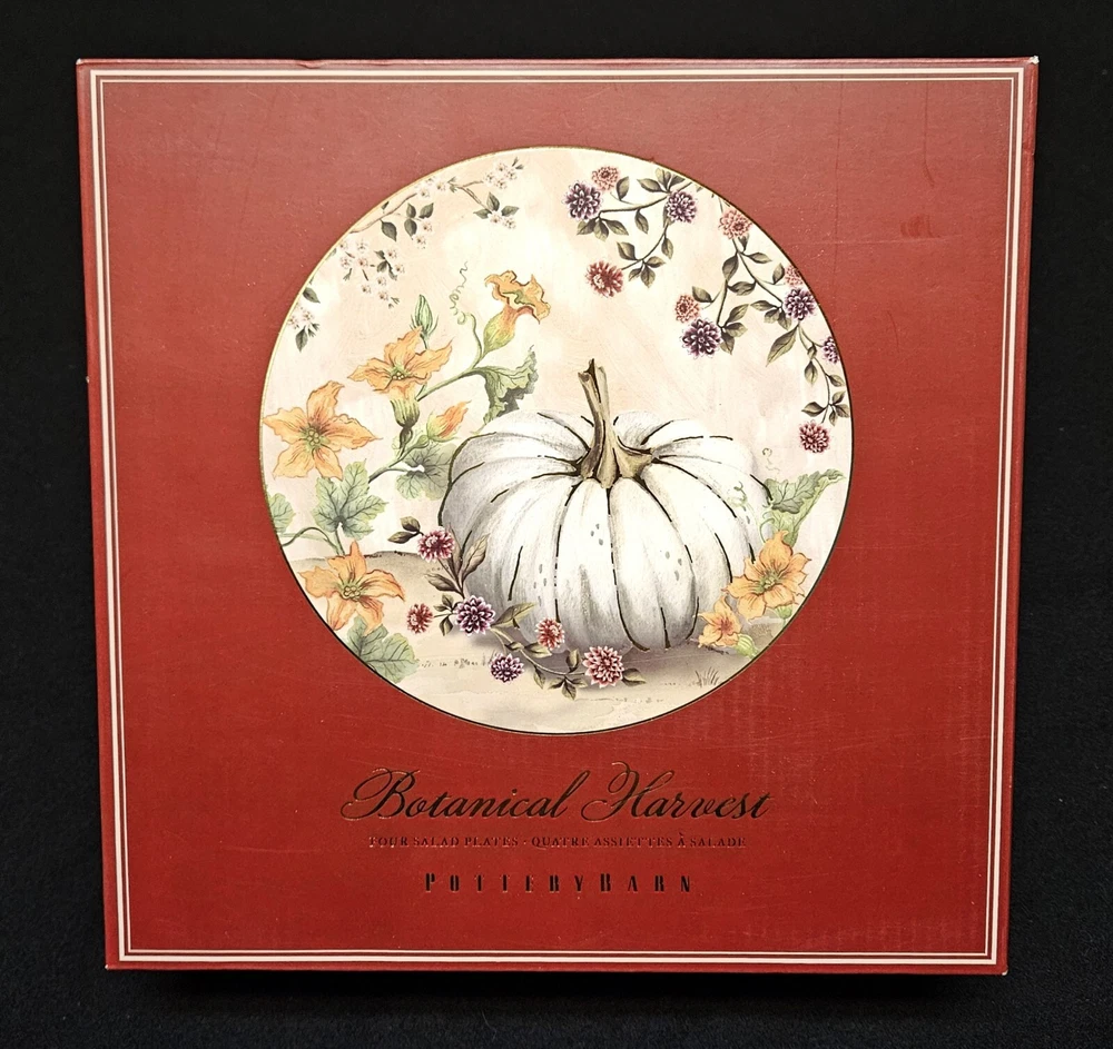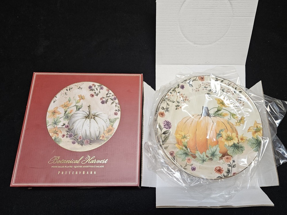 4 NEW Pottery Barn BOTANICAL HARVEST PUMPKIN 🍂 Salad Plates in Box 🍂 Fantastic artwork on these. The plates are in excellent, new in box condition with no chips or cracks. New Old Stock from 2022. Please see pics for details. We will package and pad these with great care using bubble wrap and packing peanuts. Shipping will include insurance and a tracking number. We are unable to deliver to PO boxes. I have thousands of items on eBay now. Please stop buy my store for more. 🍂🎃🍂🎃🍂🎃🍂🎃🍂🎃🍂 .....