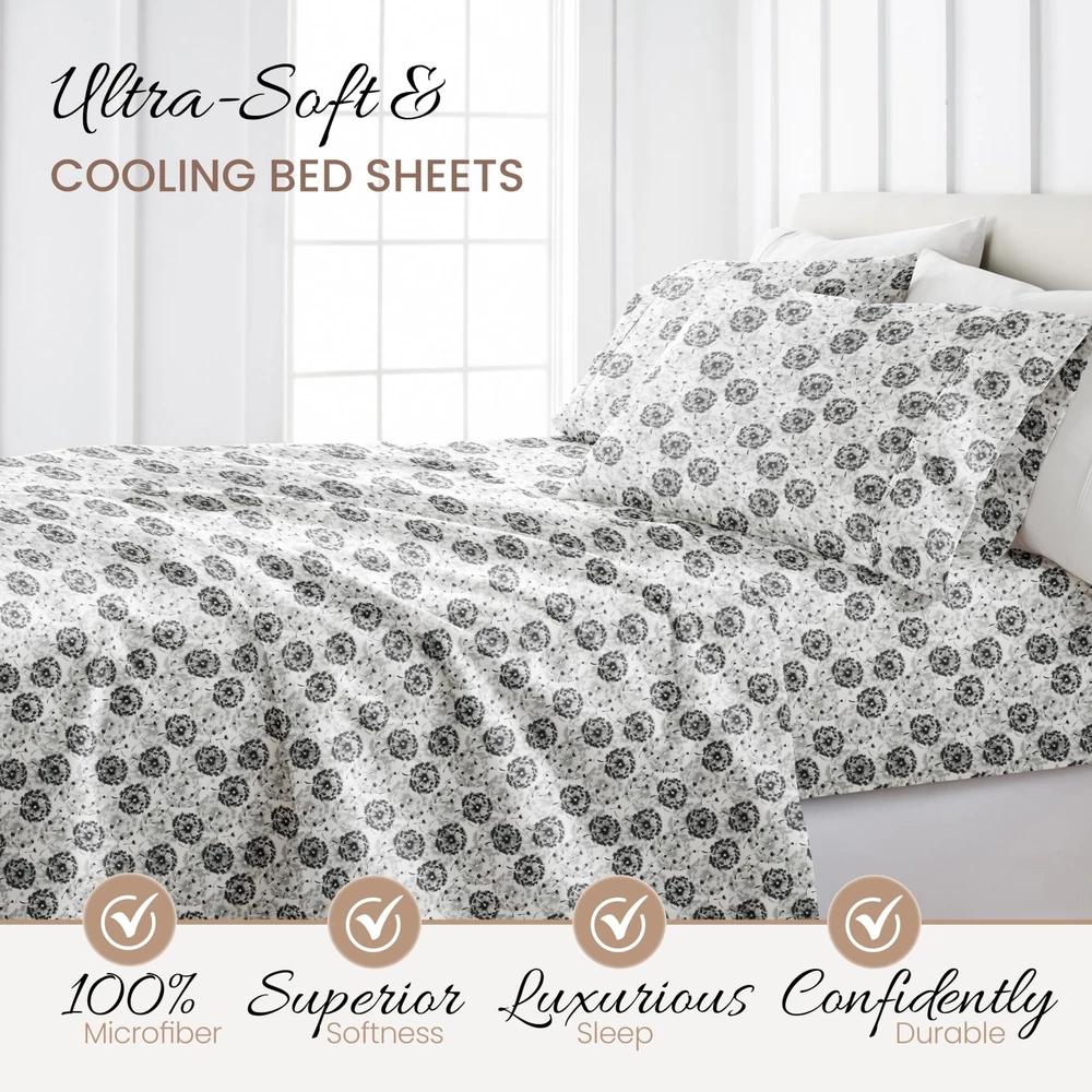 4 Piece Queen Bedding Sheet Set (Gray Floral) - Sleep Better Than Ever with T...