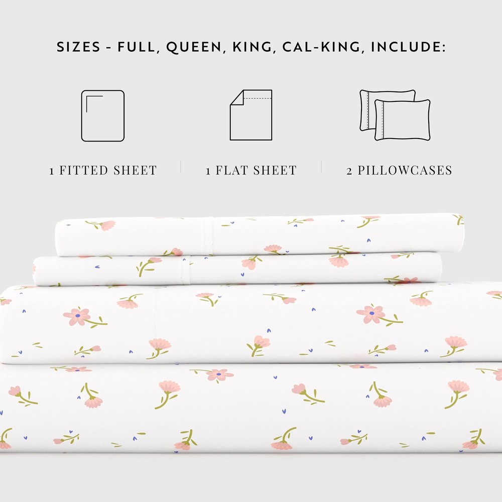 These sheets are incredibly soft and cozy—perfect for a good night's sleep! The floral design adds a lovely touch, and the microfiber fabric feels so smooth against the skin. They stay cool all night and don’t wrinkle, making them super easy to care for. Definitely worth it for the comfort and quality!