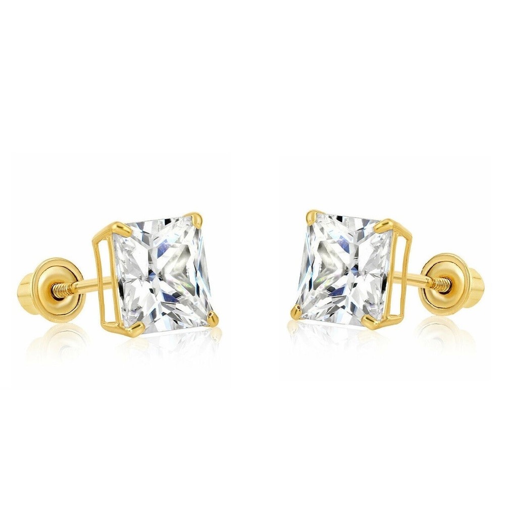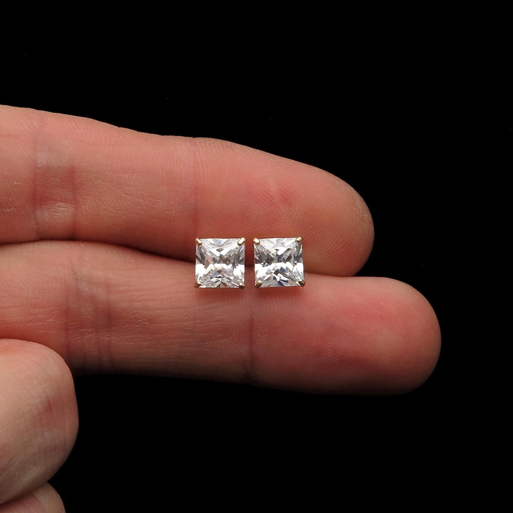 4.00CT PRINCESS CUT 14K SOLID YELLOW GOLD SOLITAIRE SCREWBACK EARRINGS Elegant solitaire earrings featuring princess cut brilliant simulated diamonds. Heavy basket settings with secure screw-back fastenings, all crafted from solid 14k yellow gold. High polished rhodium finish makes these classy earrings very bright and eye catching ** 100% Positive Feedback *** ** Fast & Free US Shipping ** *** 60-Days Money Back Guarantee ** * Our simulated diamonds feature ideal cut, brighter D color and VVS1 clarity making them visually indistinguishable from natural diamonds that cost thousands of dollars. Every diamond comes with a lifetime warranty, so if anything happens to it, we will replace it for free. We only use high quality solid gold heavy basket settings and fastenings, WE DO NOT sell plated or gold filled jewelry . Every pair is shipped with a presentable Gift Box so you can make a perfect gift for birthday, anniversary, wedding, Christmas or simply make a great addition to your own fine jewelry collection. ***If you need different size/style earrings, please visit our store as we carry a HUGE variety of fine and fashion jewelry*** Diamond Specifications Type: Simulated Cut: Princess | Square Color | Clarity: D | VVS1 Total Carat Weight: 4.00ct | 2.00ct each stone Metric Measures: 7mm x 7mm Earring Specifications: Metal: Yellow Gold | Solid Purity: 14K | .585 (Europe) Type: Heavy Double Basket 4-Prong Fastening: Screw-Back | 14K Stamped: 14K Payment We only accept payments through eBay (PayPal, VISA, MasterCard, Am Ex, Discover). Payments must be made within 48 hours from the purchase. Please let us know if you are waiting to purchase another item, or need more time to make full payment, and we will not open an unpaid item case Shipping Items will be shipped via United States Postal Service 1st Class mail. We usually ship same or next business day after payment is cleared and will provide a tracking number. Please allow 2-5 business days for delivery. We also offer next day delivery to most U.S. addresses via Express mail. For guaranteed next day delivery, please contact us. Return Policy We offer 60 days money back guarantee. you can send back your item for a full refund within 60 days after delivery day. Note that the items should be returned in their original, new condition otherwise it will not be accepted, Buyer is responsible for return postage, unless item is damaged or not as described. We do our best to provide an outstanding customer service, so if there is any problem or a concern, please contact us via eBay messages ANYTIME. We will solve any issues and make sure you are 100% SATISFIED ! Please contact us if you are not happy with your purchase for ANY reason. Thank you.