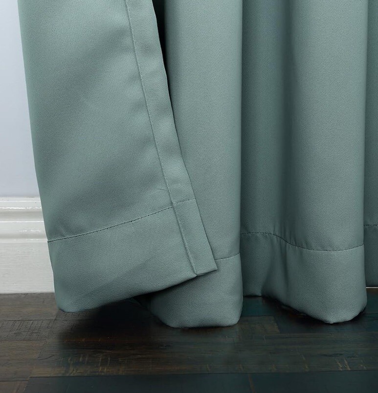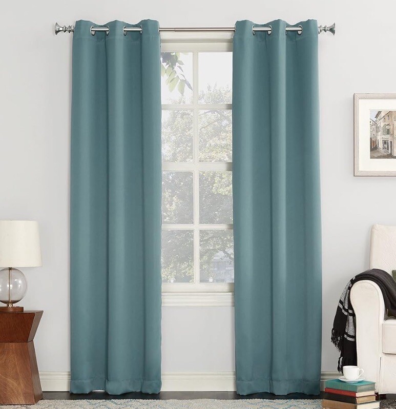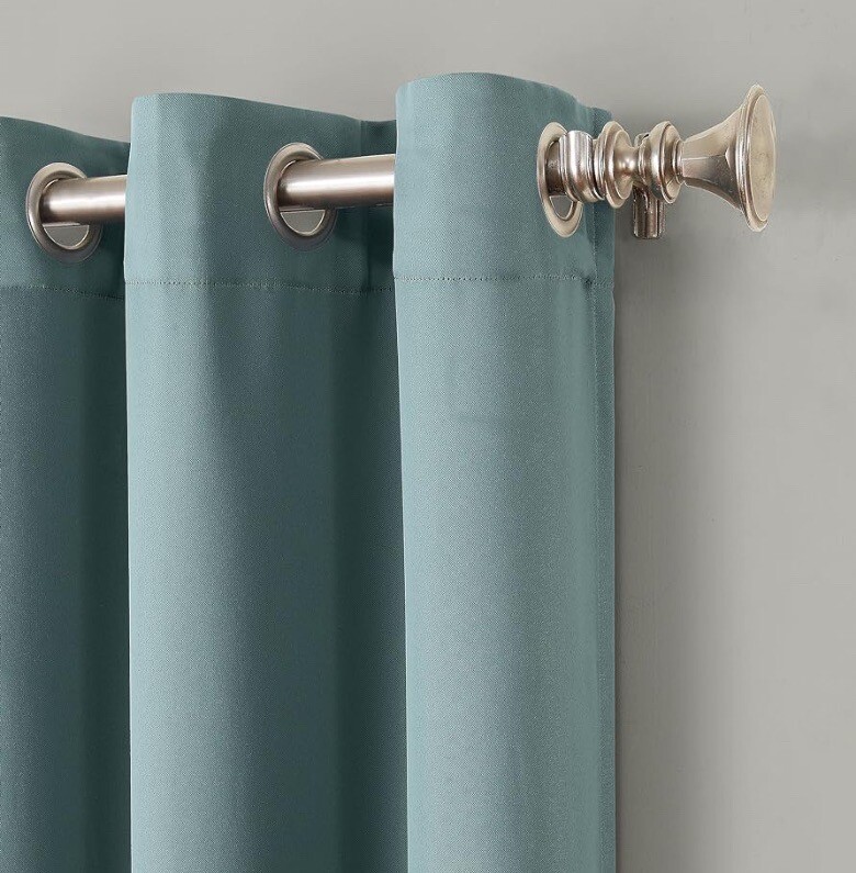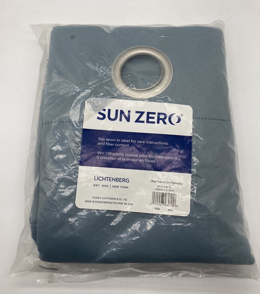 Color: Mint Number of Panels in Packaging: 1 Dimensions (Overall): 84 in L x 40 in W Accommodates Pole Size: 1.5 Inches Indoor/Outdoor: Indoor Required, Not Included: Rod Hanging Style: Grommet Light Filtration: Blackout Performance varies by product color; darker the base color the more light blocked. Thermal properties help keep summer heat and winter chill out of your home. Note: Depending on the brightness on the computer, color may look slightly different. Double rod may be needed for layering. Built-in metal grommets fit curtain rods up to 1.5" in diameter. Each panel sold separately. (Image features 2 panels). Noise Reduces outside noise by up to 30%. They will help you get a sounder, better, more uninterrupted sleep.. Energy efficient design reduces energy lost through your windows by up to 40%. Blackout technology blocks out most unwanted light while enhancing privacy. Sun Zero Easton Blackout Curtain is perfect for any room in your home. The woven solid design with an easy to hang grommet-top offers a classic style that fits in with any room decor while blocking light and noise for better sleep; help keep your home cooler in the summer and warmer in the winter. Blackout or opaque panels virtually block all light. This valance when paired with panels does not allow any light to come through; a lamp has to be turned on to see inside a room when closed. This panel gives complete privacy. Sold individually. Hang on a rod up to 1.5 inch in diameter. Polyester. Washable. Imported.