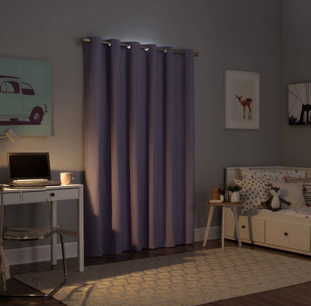 Block out 100% of outside light with a bright, fun pop of color in a kids bedroom, playroom, or any room of your home • Thermal insulation helps keep summer heat and winter chill out of your home • Energy efficient design reduces energy lost through your windows by up to 35% • Noise reduction up to 35% helps you get a sounder, more uninterrupted sleep • Built-in metal grommets fit curtain rods up to 1.5" in diameter • Each panel sold separately. (Image features 2 panels) Sun Zero Harper Curtain Panels add a bright, fun pop of color to a kids bedroom, playroom, or any room of your home. Sun Zero Total Blackout technology is laboratory tested to block out 100% of light, reduce outside noise by up to 35%, and decrease energy lost through your windows by up to 35%. Comfort is optimized with thermal insulation that helps keep summer heat and winter chill out of your home. Equipped with built-in metal grommets for easy hanging on standard curtain rods up to 1.5" in diameter. Hang in your entertainment room to eliminate screen glare and reduce distracting outside noise, or in your bedroom for enhanced privacy and a sounder, more uninterrupted sleep. Sold as individual panels. Measure carefully before selecting your desired size and quantity. Rod not included. Machine wash cold on gentle cycle. Use non-chlorine bleach when needed. Tumble dry on low heat, using a cool iron as needed. Dimensions (Overall): 84 Inches (L), 40 Inches (W) Fabric Name: Plain Weave Accommodates Pole Size: 1.5 Inches Indoor/Outdoor: Indoor Textile Material: 100% Polyester Required, Not Included: Rod Hanging style: Grommet Top Light Filtration: Blackout Single Panel Weight: 1.25 POUND Care & Cleaning: Iron as Needed, Machine Wash, Machine Dry
