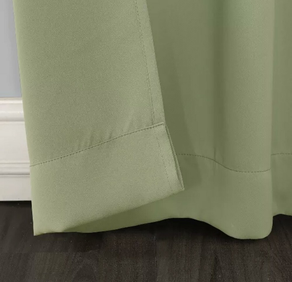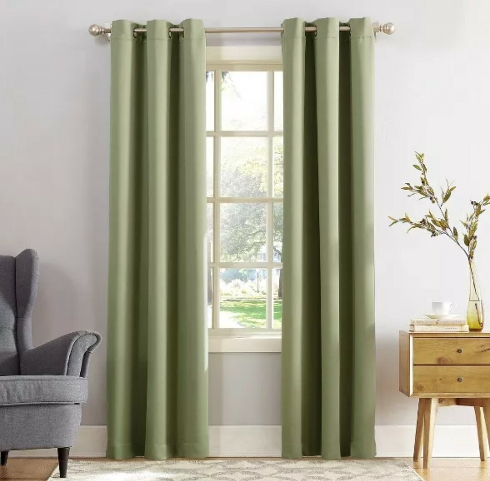 Color: Sage Green Number of Panels in Packaging: 1 Dimensions (Overall): 84 in L x 40 in W Indoor/Outdoor: Indoor Required, Not Included: Rod Hanging Style: Grommet Blackout technology blocks out most unwanted light while enhancing privacy Energy efficient design reduces energy lost through your windows by up to 25% Thermal properties help keep summer heat and winter chill out of your home Noise reduction up to 25% helps you get a sounder, more uninterrupted sleep Built-in metal grommets fit curtain rods up to 1.5" in diameter Panels sold individually. Measure carefully prior to purchase. (Image features 2 panels) Sun Zero Kenneth Curtain Panels infuse a modern sophistication into any living space. Equipped with built-in metal grommets for easy hanging on standard curtain rods up to 1.5" in diameter. Sun Zero Blackout technology blocks out most outside light, offers outside noise reduction by up to 25%, and decreases energy lost through your windows by up to 25%. Comfort is optimized with thermal properties that help keep summer heat and winter chill out of your home. Hang in your living room for enhanced privacy, or in your bedroom for a sounder, more uninterrupted sleep. Sold as individual panels. Measure carefully before selecting your desired size and quantity. Rod not included. Machine wash cold on gentle cycle. Use non-chlorine bleach when needed. Tumble dry on low heat, using a cool iron as needed.