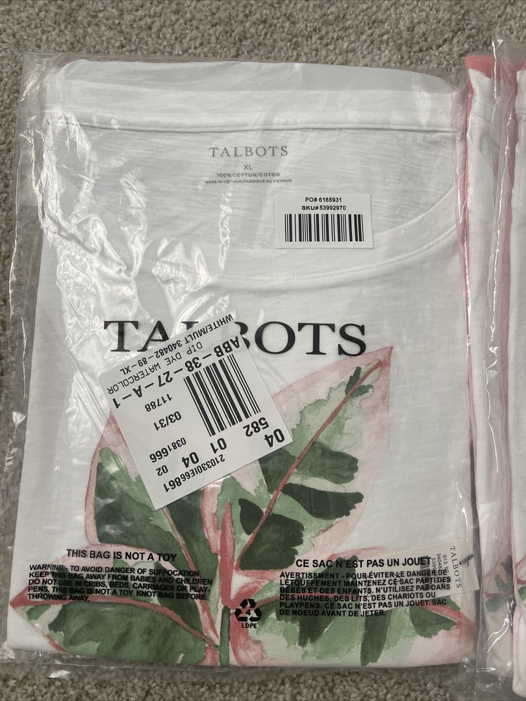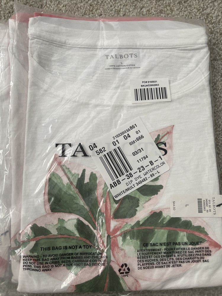 NEW WITH TAG TALBOTS WOMENS TOP TEE SIZE L I am offering FREE combine SHIPPING for any additional PAYMENT: PAYMENT IS DUE AFTER 24 HOURS OF THE ENDING AUCTION THROUGH PAYPAL ONLY. PLEASE CONTACT US IF YOU NEED EXTRA TIME MAKING THE PAYMENT. RETURN POLICY Items to be returned, must be in the ORIGINAL state as received from the seller and MUST be returned to the SELLER in the exact same manner. ITEM CAN NOT BE WORN, DAMAGED, ALTERED OR TAMPERED WITH IN ANYWAY. THERE ARE NO REMORSE REFUNDS! ALL SHIPPING AND HANDLING FEES ARE NON-REFUNDABLE. IF YOU HAVE ANY QUESTIONS ABOUT COLOR, FABRIC OR MEASUREMENTS PLEASE ASK PRIOR BIDDING. PLEASE CONTACT US DIRECTLY IF YOU WOULD HAVE ANY PROBLEM WITH ITEM THAT YOU RECEIVE. WE WOULD BE MORE THAN GLAD TO RESOLVE THE PROBLEM.