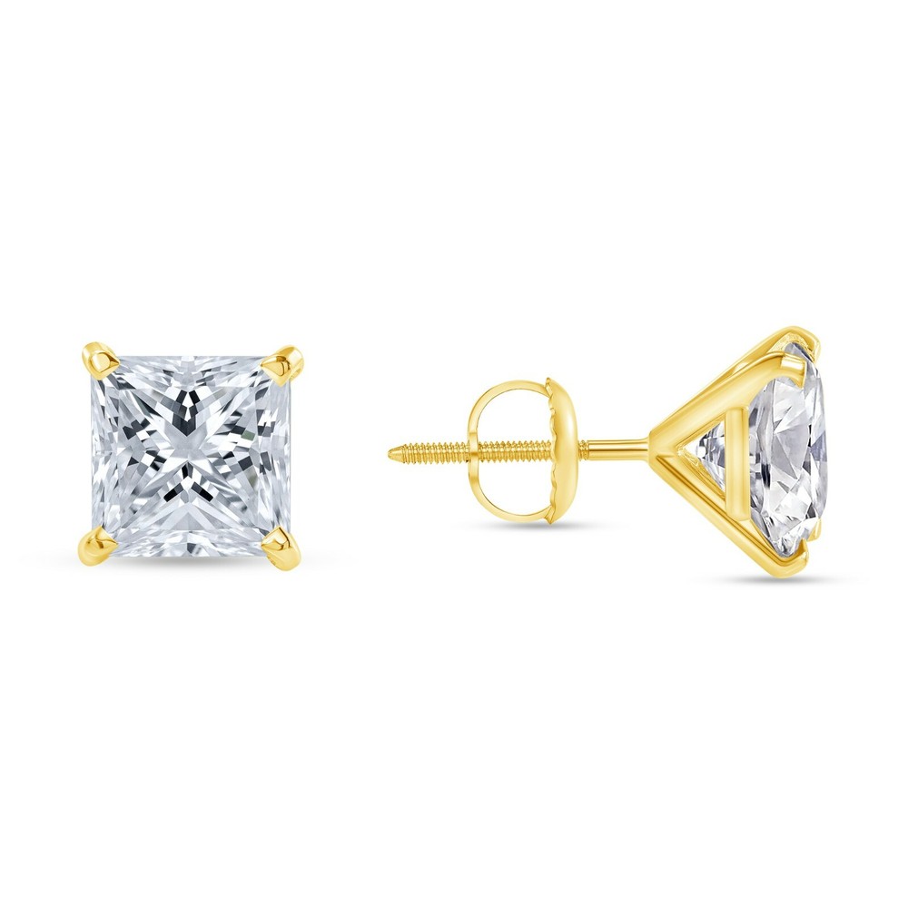 4.50 Carat Princess Cut Studs Screw Back Martini Earrings in Solid 14K Yellow Gold These exquisite simulated diamond stud ear rings are crafted out of solid 14k yellow gold and brilliant simulated diamonds. This design of stud earrings is one of the most desired and classy of all. They are set in a unique, secure, 4-prong martini style setting. They emit every shade of light that a natural diamond would emit. The radiance and fire of these simulated diamonds is equivalent if not superior to a natural diamond of a VVS1 Clarity, D Color, Excellent Cut. Brand --> Shine Brite With A Diamond Total Carat Weight (TCW) --> 4.50 Carat (2.25 Ct. (Approx. 8.25 mm) each) Metal --> Real, Genuine, Solid Yellow Gold Metal Purity --> 14K (585) Gem Type --> Simulated Diamond Design --> Studs Main Stone Shape --> Princess, Brilliant Cut Diamond Color --> D Diamond Clarity --> VVS1 Setting --> 4-Prong Martini Style Type of Post or Back --> Screw Back Number of Stones --> 2 Country of Manufacture --> United States Origin of Stones --> Simulated Diamond Availability --> Limited Quantity EVERY GEMSTONE COMES WITH A LIFETIME GUARANTEE! Our simulated diamonds are guaranteed to last a lifetime or we will replace them free of charge! So What Will I Be Receiving in the Mail? A Pair of Genuine Solid 14 Karat Yellow Gold Princess Brilliant Cut Stud Earrings . An Elegant and Luxury Jewelry Box. Certificate of Appraisal with a Lifetime Warranty. REFUNDS We guarantee your satisfaction and offer a 30-day money-back return (or exchange) policy. If for ANY reason you are unsatisfied with your purchase, please contact us first before opening up a case or leaving negative/neutral feedback so that we could make things right! We are here to help YOU! SHIPPING All items will ship free within 1 business day with USPS Priority Mail for expedited delivery. Please select the FedEx shipping options for even faster (overnight and 2-day) delivery. CONTACT US We're always available by e-mail through eBay messages 24 hours a day, 7 days a week. Please feel free to contact us anytime with any questions or concerns you may have.