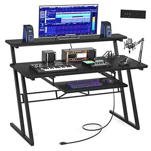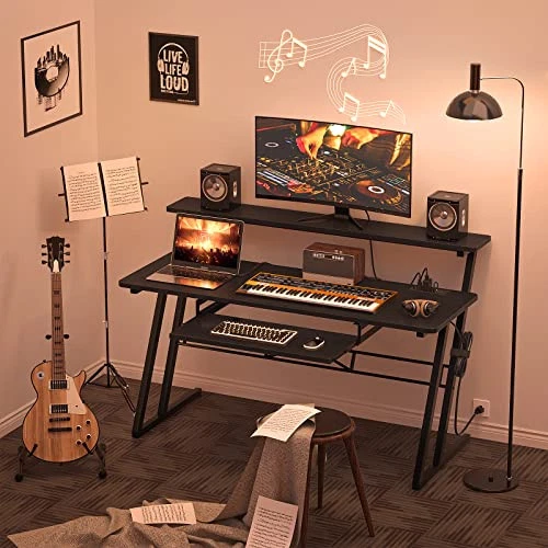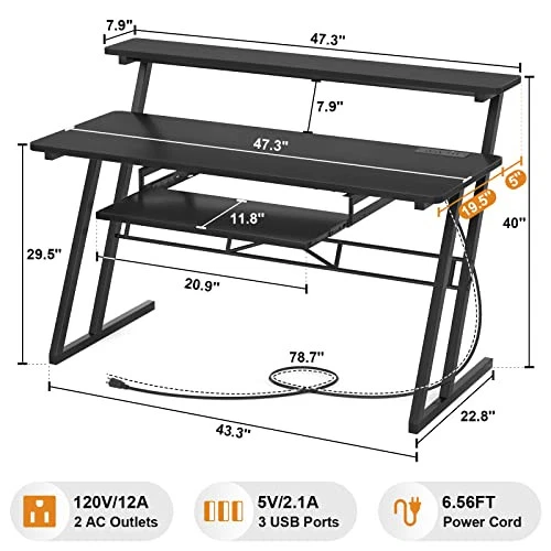 Return Policy Fast Delivery Trusted seller 47'' Music Studio Desk with Power Outlet, Studio Desk for Music Production, Recording Studio Desk for Producer, Studio Workstation for Music Recording, Black Product Description STUDIO DESK WITH POWER OUTLET: Studio Desk has 3 USB ports and 2 outlet plugs built-in, which provides you with the convenience of charging your studio setup. You can charge your monitor, laptop, i-pad, and keyboard controller without the extra charging station. It will come with one velcro tape, helping you to organize the wires, which makes your music desk neat and tidy. MUSIC DESK WITH LARGE WORKABLE AREA: Features a raised stand, our music production desk can place your monitors at eye level to help to prevent neck pain. 47'' shelf can fit two monitors for space savings. T is also a pull-out keyboard tray underneath the tabletop. This music studio desk leaves plenty of workable areas. It has enough space on the three layers for the necessary equipment such as your laptop, monitors, keyboard, speakers, audio, and external drives. FUNCTIONAL MUSIC PRODUCTION DESK: Fitting little studio set up, this recording studio desk is the perfect complement to any home studio or editing suite environment, practical space for writing, producing, mixing and recording music. You can use it as a music production desk, study desk, studio workstation desk, even a DJ table. STEADY CONSTRUCTION AND ENOUGH LEGROOM: The legs' shape design makes our black desk very sturdy and gives it a wide base. Nice solid metal legs and brace bar make the standing and support more sturdy. Enough legroom lets you sit and work comfortably. You do not feel cramped at all. It will come with well-written and clearly-illustrated installation instructions. All the parts are labeled. If you have an electric screwdriver, the installation will be a lot quicker. WHAT YOU WILL GET: You can get a durable sound desk, which is perfect recording studio furniture for your music production. If you receive our music with any defects or meet any issues when installing, please just contact us. We will get back to you within 24 hours. Just purchase our piano desk without any worries. Shipping Returns Payment Shipping Shipping is FREE to all addresses other than APO/PO boxes in the lower 48 states. All our stock ships from US-based warehouses. Shipped via USPS or UPS (depending on location and package weight) Unless stated otherwise, all orders will ship within 24-72 hours of your payment being processed. Check our feedback to see the great reviews of FAST shipping we offer. Returns Seller does not accept returns Payment We currently accept payment via eBay managed payments only. Once payment is cleared, we will dispatch your shipment within 1-3 business days. Please refer to the "Shipping" tab for more information regarding shipping speed to your destination.