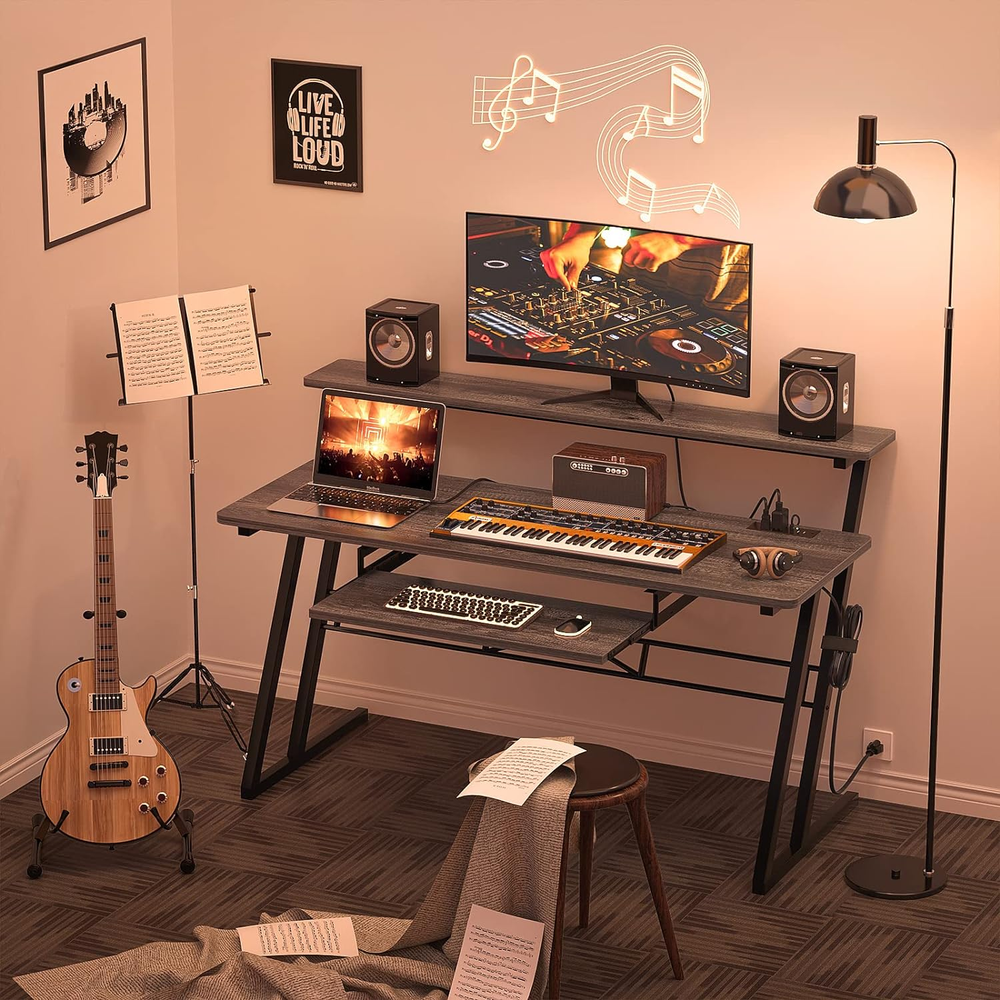 Store New Arrivals Add to Favorite View Feedback Contact 47'' Music Studio Desk with Power Outlet, Studio Desk for Music Production, Recording Studio Desk for Producer, Studio Workstation Desk for Music Recording, Piano Tray, Raised Stand, Oak Description Age Range Description Adult Style Studio Desk with Outlet Minimum Height 29.5 Inches Warranty Type Limited Is Electric Yes Top Material Type Engineered Wood Desk Design Computer Desk Finish Types Oak Room Type Production Studio, Music Studio Required Assembly Yes Base Engineered Wood Number Of Shelves 3 Leg Style Z-Shaped Additional Features Enough Leg Room Finish Type Oak Number Of Open Shelves 1 Has Finished Back No Furniture Leg Material Metal Item Weight 36.55 Pounds Top Color Black Special Feature Enough Leg Room Base Color Black Mounting Type Tabletop Color Grey Oak Item Dimensions D x W x H 24.5"D x 47.3"W x 40"H Furniture Finish MDF Board and Metal Base Material Engineered Wood Shape Rectangular Base Type Engineered Wood Shape Rectangular Desk design Computer Desk Recommended Uses For Product function(f) {var _np=(window.P._namespace("DetailPageProductOverviewTemplatesJava"));if(_np.guardFatal){_np.guardFatal(f)(_np);}else{f(_np);}}(function(P) { P.when('A').execute(function(A){ A.on('a:truncate:po-attribute-truncate-9:updated', function(data) { var isTruncated = !data.truncateInstance.getIfTextFits(); var seeMoreElement = document.getElementById('po-attribute-see-more-id-9'); if(seeMoreElement) { seeMoreElement.style.display = isTruncated ? '' : 'none'; } }) }); })); desk for music producer, music workstation desk, mixing music desk, studio desk, music production desk See more Included Components Built-in USB Port Mfg Warranty Type (ie Parts, Labor) Limited Product Dimensions 24.5"D x 47.3"W x 40"H Style Name Studio Desk with Outlet Size 47"(Built-in Outlets) STUDIO DESK WITH POWER OUTLET: Armocity Studio Desk has 3 USB ports and 2 outlet plugs built-in, which provides you with the convenience of charging your studio setup. You can charge your monitor, laptop, i-pad, and keyboard controller without the extra charging station. It will come with one velcro tape, helping you to organize the wires, which makes your music desk neat and tidy. MUSIC DESK WITH LARGE WORKABLE AREA: Features a raised stand, our music production desk can place your monitors at eye level to help to prevent neck pain. 47'' shelf can fit two monitors for space savings. There is also a pull-out keyboard tray underneath the tabletop. This music studio desk leaves plenty of workable areas. It has enough space on the three layers for the necessary equipment such as your laptop, monitors, keyboard, speakers, audio, and external drives. FUNCTIONAL MUSIC PRODUCTION DESK: Fitting little studio set up, this recording studio desk is the perfect complement to any home studio or editing suite environment, practical space for writing, producing, mixing and recording music. You can use it as a music production desk, study desk, studio workstation desk, even a DJ table. STEADY CONSTRUCTION AND ENOUGH LEGROOM: The legs' shape design makes our black desk very sturdy and gives it a wide base. Nice solid metal legs and brace bar make the standing and support more sturdy. Enough legroom lets you sit and work comfortably. You do not feel cramped at all. It will come with well-written and clearly-illustrated installation instructions. All the parts are labeled. If you have an electric screwdriver, the installation will be a lot quicker. WHAT YOU WILL GET: You can get a durable sound desk, which is perfect recording studio furniture for your music production. If you receive our music with any defects or meet any issues when installing, please just . We will get back to you within 24 hours. Just purchase our piano desk without any worries. Product Description Armocity is dedicated to bringing you with the complement for your studio set-up. THE LATEST ITEM OF STUDIO DESK Advantages - Power Outlets - Our studio table desk has 2 outlet plug and 3 USB ports built-in, which provides you with the convenience of charging your studio setup. - Velcro Tape - It will come with one velcro tape, helping you to organize the wires, which makes your music desk neat and tidy. - Raised Monitor Shelf - This studio workstation desk provides you with convenient monitor placement, keeping them at eye level to help to prevent neck pain. 47'' shelf can support two monitors for space savings. - Pull-out Keyboard Tray - Armocity music production desk features one extra tray underneath the desktop, offering you more space for set-up . - Enough Legroom - The legs' shape design makes it very sturdy and gives it a wide base. Enough legroom lets you sit and work comfortably. You do not feel cramped at all. - Extra Metal Frame - Adding an extra metal frame to strengthen the support for the desk, making the support more durable. It aims at providing you with plenty of workable areas, more comfortable screen views, and enough legroom for sitting. When you attach the sliding tray on Part 8, please note to pull the silver part forward first. Then pull it back after attaching the screws through the hole of the black part. Fitting little studio set up, this recording studio desk is the perfect complement to any home studio or editing suite environment, practical space for writing, producing, mixing and recording music. You can use it as a music production desk, study desk, workstation desk. Specification - Color: Grey Oak - Monitor Shelf Dimension: 47.3’’ (Length) * 7.9’’ (Width) - Main Desktop Dimension: 47.3’’ (Length) * 19.5’’ (Width) - Keyboard Tray Dimension: 20.9’’ (Length) * 11.8’’ (Width) - Height from Monitor Shelf: 40'' - Height from Main Desktop: 29.5'' - Power Outlet: 120V/12A (2*AC Outlets), 5V/2.1A (3*USB Ports ) What You Will Get - 1 * Studio Desk - 1 * Pack of Accessories - 1 * Instruction ABOUT US We offer the best prices around on high quality products. Our E-store includes med