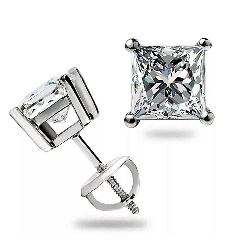Spectacular and Gorgeous… Dazzle her with these amazing push-back earrings 4.00 Ct Princess Cut Lab Created White Sapphire Stud Earrings 14k White Gold With Screw Backs 7mm Value $495.00 These premiere lab created white sapphire stud earrings are made from 14k White gold and brilliant stud earrings . This stylish design of stud earrings is one of the most classy and elegant of all. The stud earring are set in a secure, one of a kind, 4-prong stylish setting and screw back fastening. Our stones emit every shade of light that a natural diamond would emit that cost thousands making them indistinguishable to the human eye and at a fraction of the cost. The radiance and fire of these stud earrings is equivalent if not superior to a natural diamond of a VVS1 Clarity, D Color, Excellent SPECIFICATIONS Design: Stud Earrings Shape: Princess Cut Stud Earrings : Lab Created /White Sapphire Metal Purity: 14K Metal: 14K White Gold Total Carat Weight: 4.00 Ct (Approx., 7 MM & 2.00 Ct Each) Color: D Clarity: VVS1 Number of Stones: 2 Fastening: Screw Backs Setting: 4 Prong Designer Style Manufacture: United States PAYMENT We prefer PayPal but also accept E-check, VISA, MASTERCARD, DISCOVER & AMEX via PayPal. We ship to confirmed addresses, if you wish to ship to a friend or send as a gift please add the address as a secondary shipping address. Feel free to contact us if you have any questions or concerns with paying for your merchandise. SHIPPING Once your payment has cleared, we will ship your item - within 24 hours. If you have completed a special order or if your piece needs resizing, it may take up to an additional 2 business days before shipping. We ship to all U.S. addresses for free, all items over $300 require a signature on arrival to ensure your jewellery arrives safely. Please allow four to six business days for your item to arrive. Keep in mind that UPS tracking numbers may not reflect the current position of your item, as they can take up to 48 hours to update. If you have any questions, feel free to contact us and we will be able to assist you. For buyers outside of the U.S., we are not responsible for any customs or duty charged by your country. RETURNS At Jewels customer satisfaction is our priority, our jewelry is produced with high standards of quality and excellence, if for any reason you are not completely satisfied you can return or exchange any order within 30 days after you receive your item for a full refund no questions asked. The returned items must be undamaged, including marks or scratches, and must not be altered in any way, including sizing. Please contact us with any problem you may have to allow us the opportunity to guarantee your issue resolved immediately. Once we receive the returned item, we will issue a refund within 48 hours, in the same way it was paid. All credit card reimbursements must be made to the same credit card. Keep in mind it may take one monthly billing cycle for your item to appear on your transaction list. CUSTOMER SERVICE Your 100% Satisfaction is our goal! Our Customer service is here to serve you if you have any issues or concerns, please feel free to contact us. Please email us to resolve any issue before leaving unfair or negative feedback. We are very friendly to deal with.