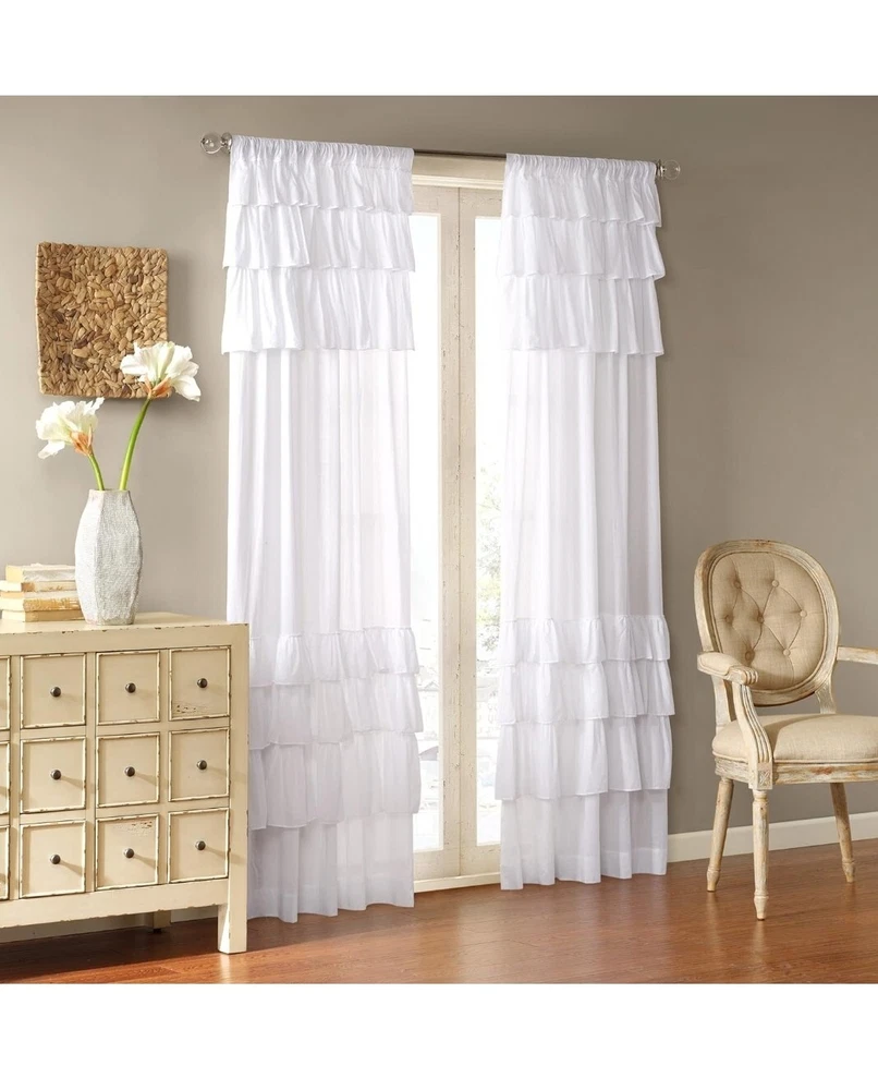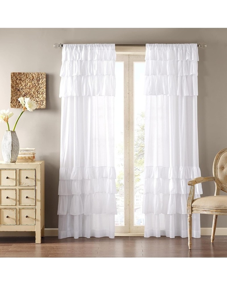 Madison Park WIN40-140 White Living Room, Cottage Country Rod Pocket Ruffle Bedroom, Solid Anna Voile Single Window Curtain, 50X84, 4-Pack Make your living room look stylish and elegant with the 4-pack Madison Park WIN40-140 White Solid Anna Voile Single Window Curtain. The curtains feature a ruffled pattern that adds a touch of femininity to your room. They are designed with a rod pocket heading that makes them easy to install and use. Each panel measures 84 inches in length and 50 inches in width, making them perfect for most living room windows. The curtains are made of high-quality materials that guarantee durability and longevity. They come in a beautiful white color that blends with any décor. These curtains are perfect for people who love country-style home décor. Add them to your cart now and enjoy a touch of elegance in your living room.