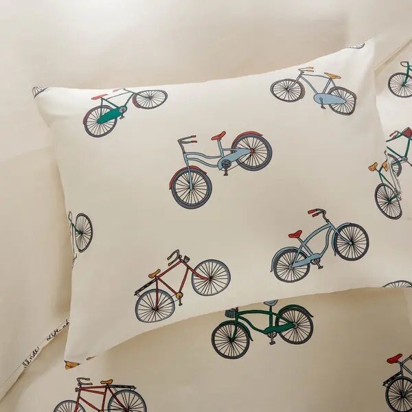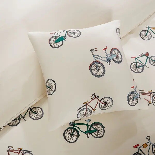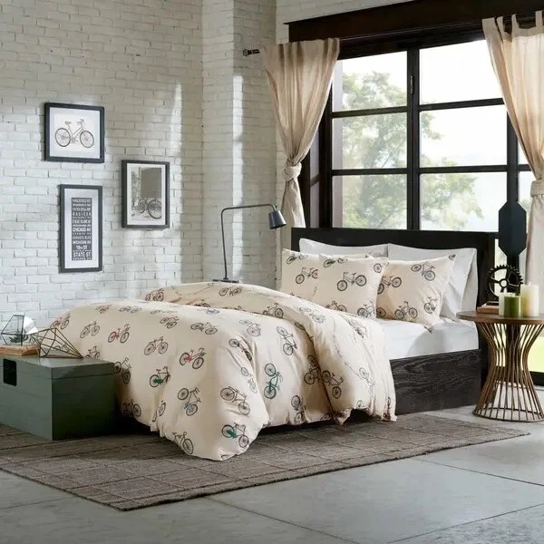 *4 -Pc HipStyle Raleigh King Duvet Cover Set * Brand New Make your bedroom retro chic with the unique Madison Park HipStyle Raleigh Duvet Cover Set. Adorned with an allover trendy bicycle print in bold colors, the fun bedding instantly brings a playful, vintage feel to your space. King duvet cover set includes: 104" W x 90" L duvet cover Two 20" W x 36" L king pillow shams 18" W x 18" L square throw pillow 200 thread count 100% Cotton Machine Washable I also have the coordinating shower curtain listed! * Please feel free to contact me with any questions. * International Buyers use USPS First Class, Priority Mail International shipping or eBay Global International shipping. Smoke Free and Pet Free Environment.