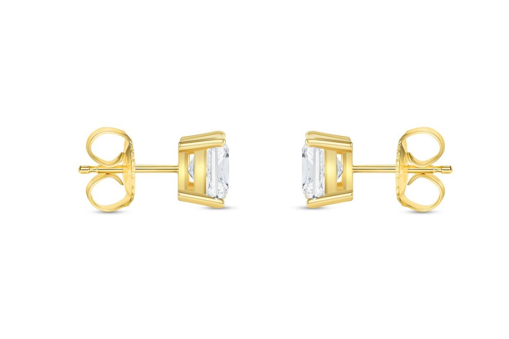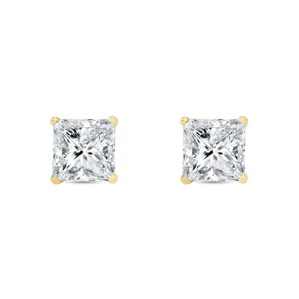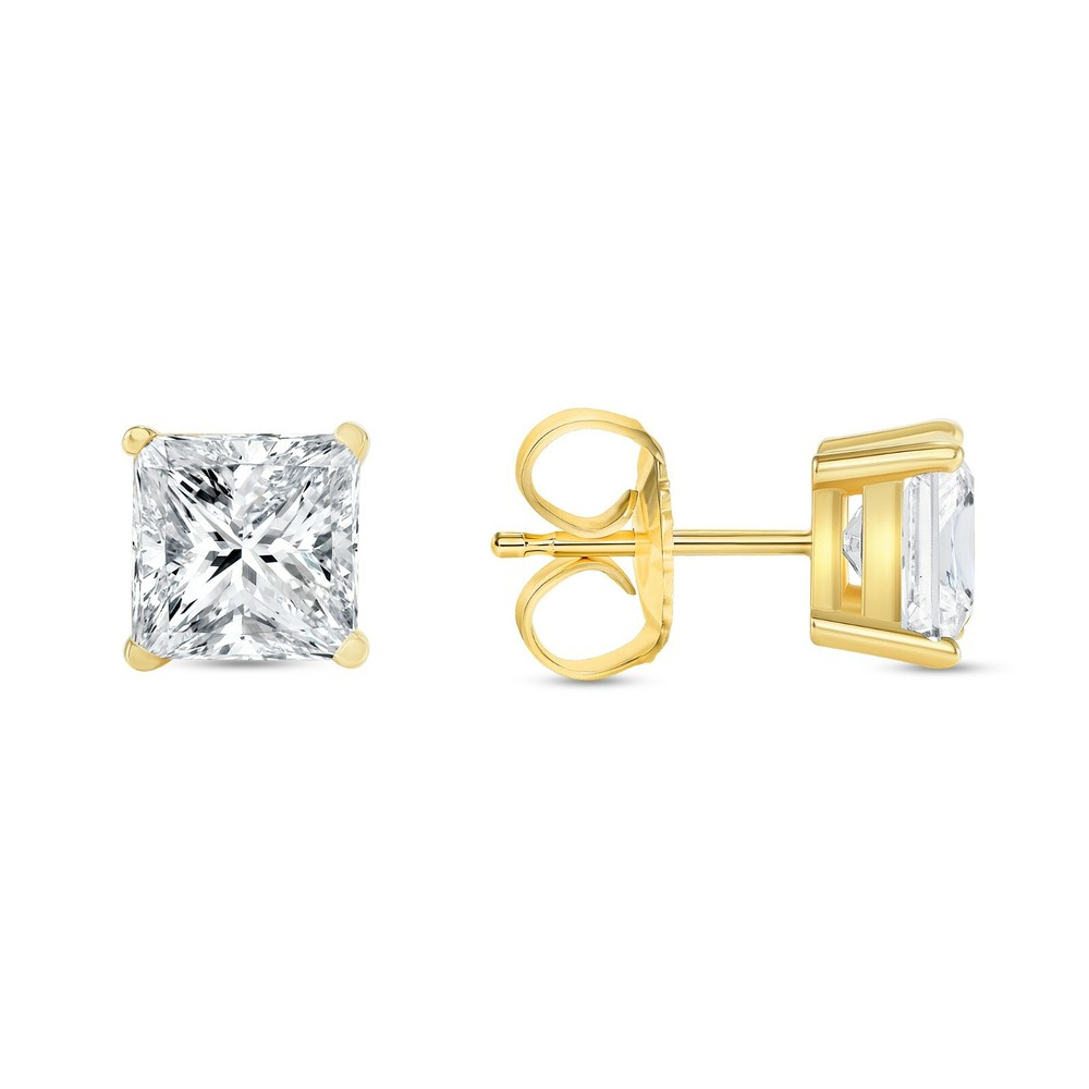 5 Carat Princess Brilliant Cut Solitaire Stud Push Back Basket Earrings in Solid 14K Yellow Gold These exquisite simulated diamond stud ear rings are crafted out of solid 14k Yellow gold and brilliant man-made diamonds. This design of stud earrings is one of the most desired and classy of all. The diamonds are set in a unique, secure, 4-prong designer style setting. The diamonds emit every shade of light that a natural diamond would emit. The radiance and fire of these created diamonds is equivalent if not superior to a natural diamond of a VVS1 Clarity, D Color, Excellent Cut. Brand --> Shine Brite With A Diamond Total Carat Weight (TCW) --> 5.00 Carat (2.50 Ct. (Approx. 8.5 mm) each) Metal --> Real , Genuine , Solid Yellow Gold Metal Purity --> 14K (585) Gem Type --> Man-Made/Simulated Diamond Design --> Studs Main Stone Shape --> Princess, Brilliant Cut Diamond Color --> D Diamond Clarity --> VVS1 Setting --> 4-Prong Designer Style Type of Post or Back --> Push Back Number of Stones --> 2 Country of Manufacture --> United States Origin of Stones --> Man-Made or Simulated Diamond Availability --> Limited Quantity EVERY GEMSTONE COMES WITH A LIFETIME GUARANTEE! Our simulated diamonds are guaranteed to last a lifetime or we will replace them free of charge! So What Will I Be Receiving in the Mail? A Pair of Genuine Solid 14 Karat Yellow Gold Princess Brilliant Cut Stud Earrings . An Elegant and Luxury Jewelry Box. Certificate of Appraisal with a Lifetime Warranty. REFUNDS We guarantee your satisfaction and offer a 30-day money-back return (or exchange) policy. If for ANY reason you are unsatisfied with your purchase, please contact us first before opening up a case or leaving negative/neutral feedback so that we could make things right! We are here to help YOU! SHIPPING All items will ship free within 1 business day with USPS Priority Mail for expedited delivery. Please select USPS Express Mail for RUSH Delivery. CONTACT US We're always available by e-mail through eBay messages 24 hours a day, 7 days a week. Please feel free to contact us anytime with any questions or concerns you may have.