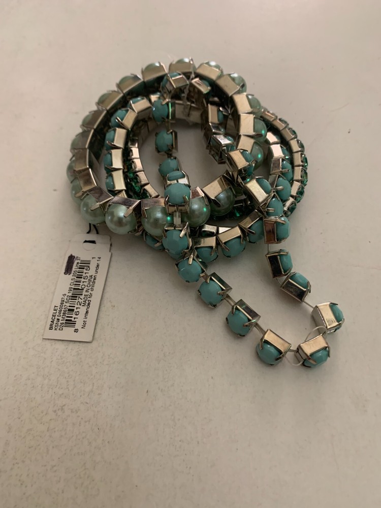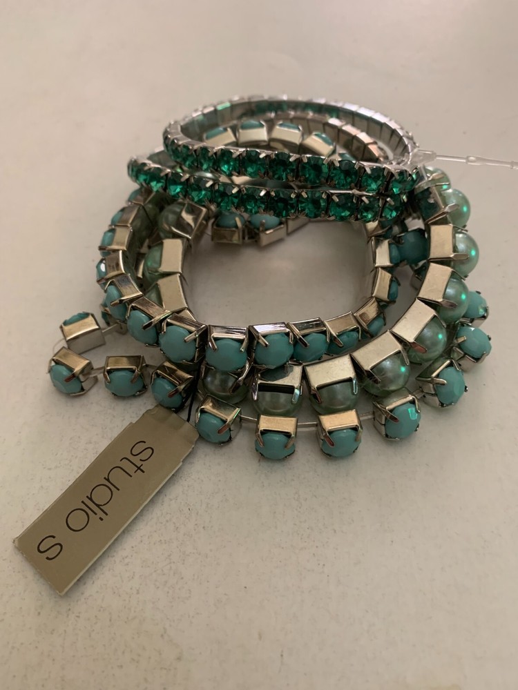 ITEM: 5 Studio S Fashion Bracelets Faux Robin Eggs Pearls and Faux Green Stones DESCRIPTION: This is a 5 Studio S Fashion Bracelets Faux Robin Eggs Pearls and Faux Green Stones. Nice Find ! This is made out of silver tone metal, and plastic it is 5 expandable bracelets . The size is approximately 2 3/4 inches in diameter expandable . CONDITION: This is in Very Good unused condition . The pictures are part of the description, so please view all pictures. This is being as shown, so if you have any questions please contact us. NOTE: The post office goes by size and weight and location, I ship Priority mail unless otherwise stated. If a Parcel post option is listed as a shipping option (sometimes it is due to weight or size or a combination of both) please be aware that this is for a one way ticket from the Post Office--if it is returned for any reason I have to pay to pick it up and pay to reship it to you-- Parcel Post can take up to 9 days to get to you, if you are buying a book and choose Media Mail this could take up to 9 days to get to you so please keep this in mind. Even though I ship within 1 business day, these forms of shipping take longer. If you are an International Buyer and choose a First Class International Shipping Option Be Aware There is No Tracking Number And Items Do Get Lost. You Will Be Responsible If The Item Is Lost, I recommend shipping via International Priority Mail so you have a tracking number!! I always ship within one business day. If you want the item very quickly then pay for the item by 7 pm Monday through Friday then the item will be at my local post office on its way to you at 7 am the next day. If you pay after 7 pm Monday through Friday nights, I will ship the item out the second business day. For example, if you pay for an item at 7:05 pm on Monday night, it will be taken to my local post office at 7 am on Wednesday. I do ship out on Saturday too. If you pay via an e-check it will not ship until payment clears through Paypal which can take from 5-10 days. I only accept returns if the item is not as I described it. All pricing is up front so you know exactly how much everything is! CONTACT: If you have any questions, comments, or concerns please use eBay messages. PAYMENT : PAYPAL PREFERRED Payment is expected within 4 days of completed auction. International Buyers – Please Note: • Import duties, taxes, and charges are not included in the item price or shipping charges. These charges are the buyer's responsibility. • Please check with your country's customs office to determine what these additional costs will be prior to bidding/buying. • These charges are normally collected by the delivering freight (shipping) company or when you pick the item up – do not confuse them for additional shipping charges. • We do not mark merchandise values below value or mark items as "gifts" - the US and International government regulations prohibit such behavior. RETURN POLICY: I only accept returns if the item is grossly misrepresented. The return shipping is the buyer's responsibility. SHIPPING & HANDLING: The post office goes by size and weight and location, I ship Priority mail unless otherwise stated. There is no handling charge passed on to buyers. You are paying for the cost of the shipping only. The cost of the supplies used to ship your item is being paid by me. COMBINED SHIPPING: I offer combined shipping on all items of similar size and weight. However, if you purchase an extremely large and fragile piece, I will NOT ship that with other large and fragile pieces. INTERNATIONAL SHIPPING: The post office goes by size and weight and location, I ship Priority mail unless otherwise stated. There is no handling charge passed on to buyers. You are paying for the cost of the shipping only. The cost of the supplies used to ship your item is being paid by me. Jewelry 47 Bag C----B