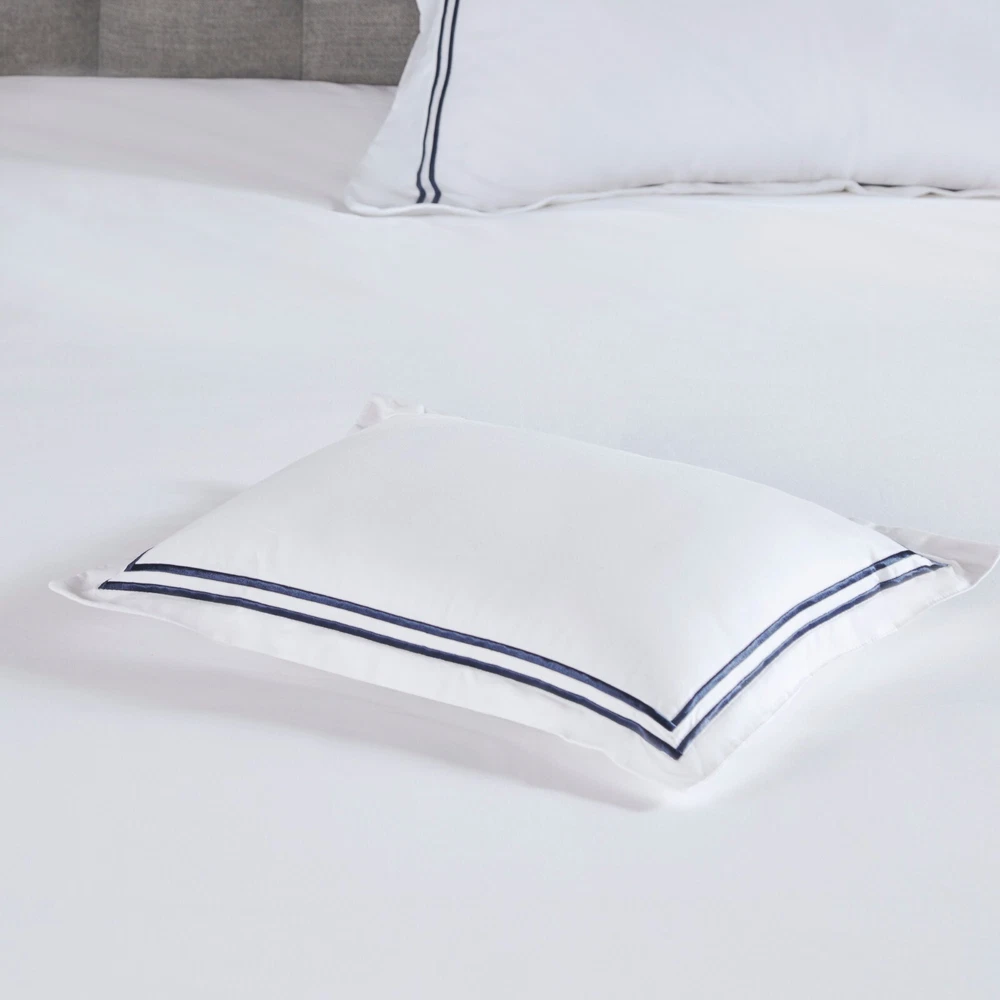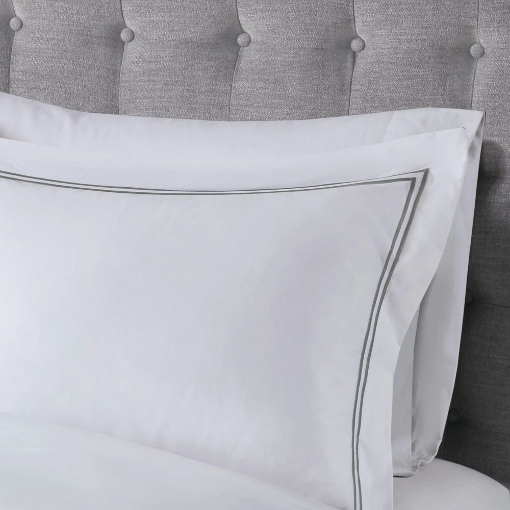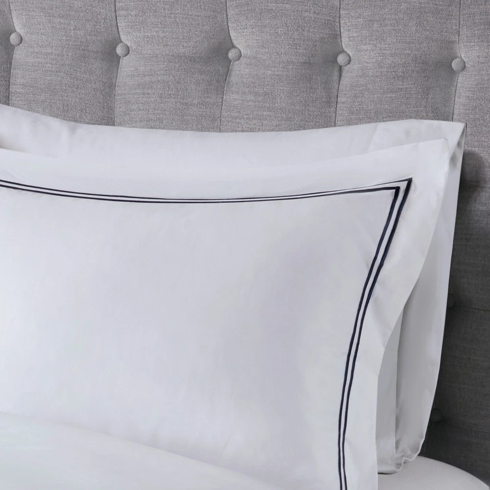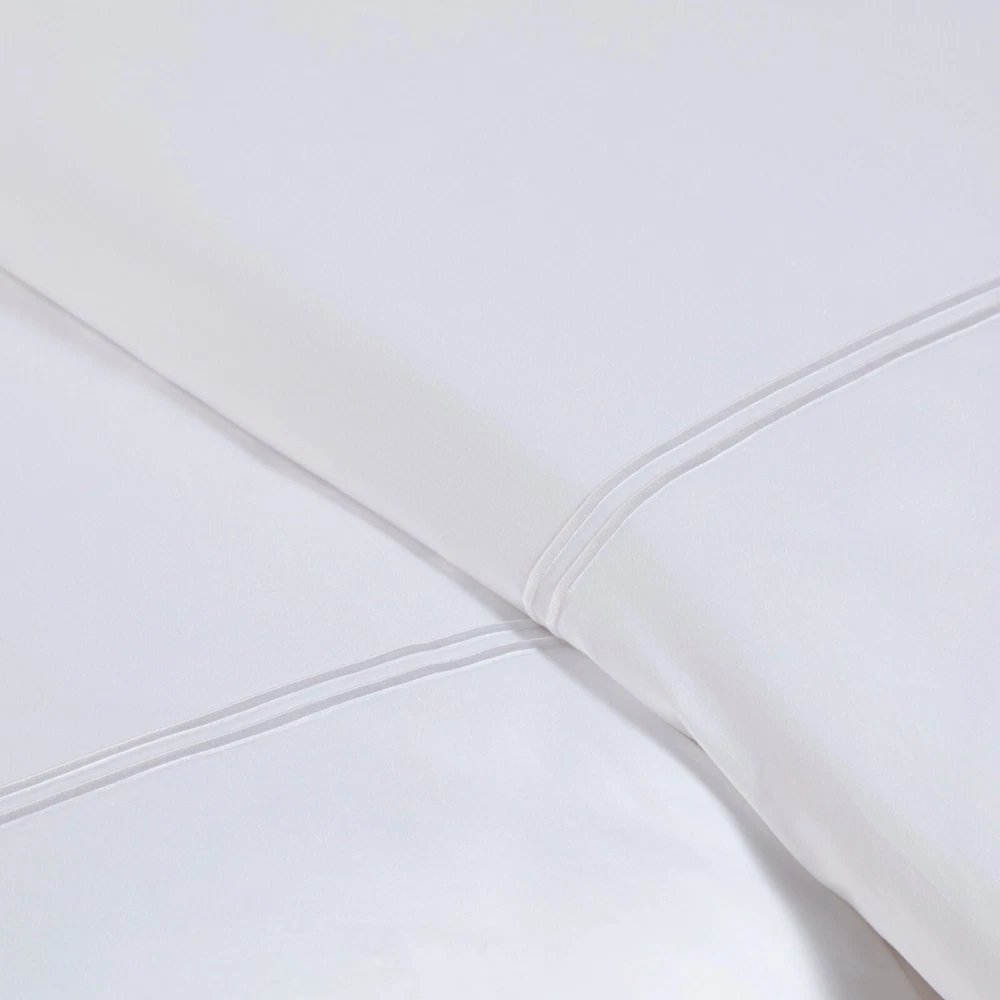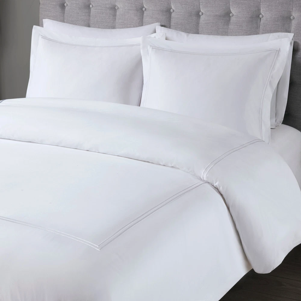 Madison Park Signature 500TC Cotton Sateen Duvet Cover Set Full Queen King DESCRIPTION Make every night feel like a luxurious hotel escape with this 500 Thread Count duvet cover set. Made of soft cotton, this refined 4 piece set features a double-row striped embroidered border for an elegant finish. The duvet cover is removable and has corner ties with a zipper closure for easy care. This set is also OEKO-TEX certified, meaning it does not contain any harmful substances or chemicals to ensure quality comfort and wellness. FEATURES • 500 thread count 100% cotton sateen premium fabric • Embroidered double-row striped design for a luxury hotel look • Zipper closure on duvet with 4 corner ties • Conveniently machine washable for easy care • 4 piece duvet cover Set - 1 duvet cover, 2 shams and 1 matching decorative pillow • Duvet covers are not filled. It has an opening where you can insert your comforter. Filler insert not included. • Oeko-Tex Certified, includes no harmful substances or chemicals MATERIAL Duvet: 500TC Cotton sateen embroidery face and back, knife edge, zipper closure at bottom, inner corner ties Sham: 500TC Cotton sateen embroidery face and back, 2" flange, zipper closure Pillow: 500TC Cotton sateen face and back, embroidery on face, down alternative polyester fiber fill Available Sizes: Full/Queen Duvet Cover Set includes: 1 Duvet Cover: 90"W x 96"L 2 Standard Shams: 20"W x 26"L + 2"D 1 Throw Pillow: 12"W x 16"L King/California King Duvet Cover Set includes: 1 Duvet Cover: 108"W x 96"L 2 King Shams: 20"W x 36"L + 2"D 1 Throw Pillow: 12"W x 16"L