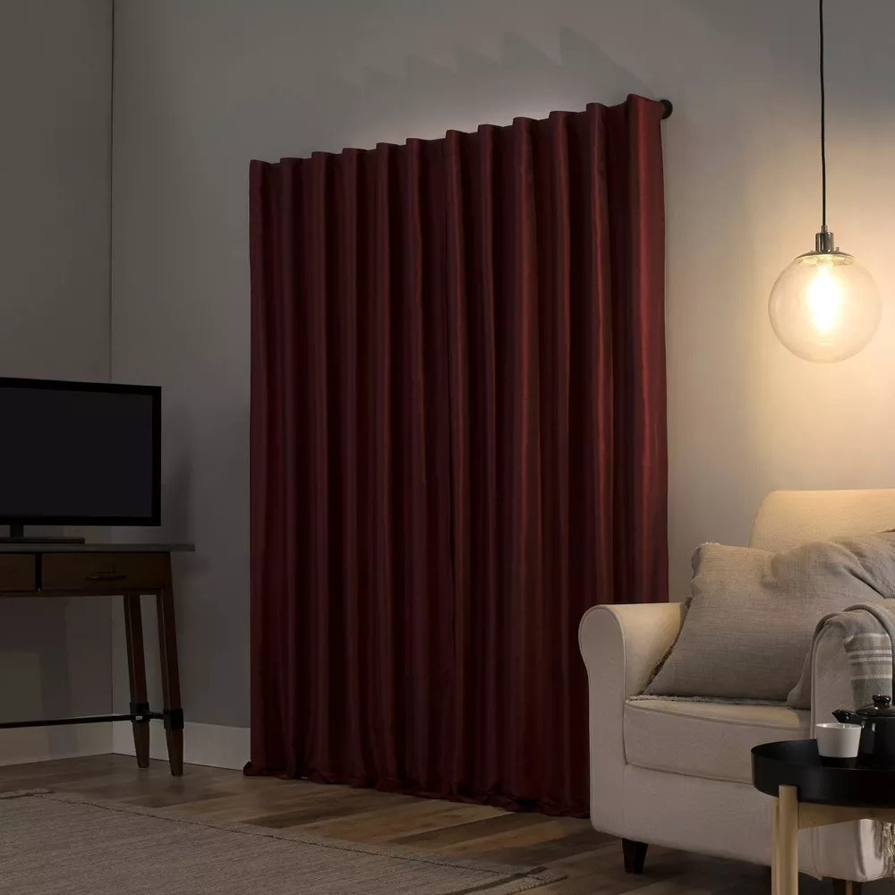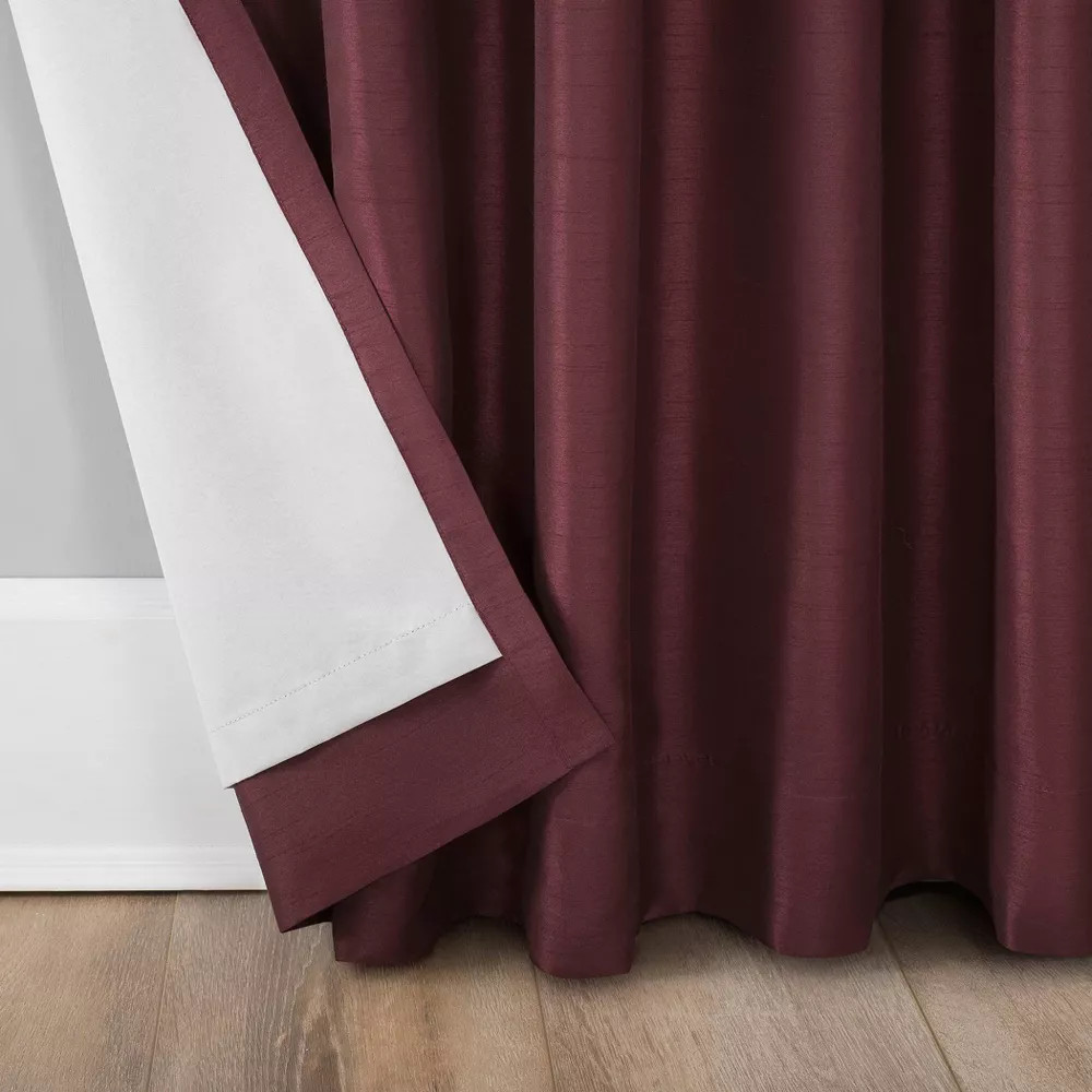•Elegant faux dupioni silk fabric with a raw slub texture imparts opulent radiance •Extreme Blackout Thermal Lining blocks out 100% of outside light •Energy Efficient design reduces energy lost through your windows by up to 40% •Thermal properties help keep summer heat and winter chill out of your home •Noise reduction by up to 30% helps you get a sounder, more uninterrupted sleep •Back tabs fit curtain rods up to 1.5" in diameter Description Featuring an elegant dupioni faux silk fabric with a raw slub texture, Evelina Faux Dupioni Silk Extreme 100% Blackout Back Tab Curtains provide the ultimate in light blocking technology to keep out even the harshest of light while adding opulent radiance to any room of your home. Sun Zero Extreme Blackout Thermal L Shop Our Store Contact Us Add to Favorite Sellers 50"x95" Sun Zero Blackout Evelina Faux Dupioni Silk Curtain Panel Red: Modern Solid Back Tab Indoor Curtain Product Details •Elegant faux dupioni silk fabric with a raw slub texture imparts opulent radiance •Extreme Blackout Thermal Lining blocks out 100% of outside light •Energy Efficient design reduces energy lost through your windows by up to 40% •Thermal properties help keep summer heat and winter chill out of your home •Noise reduction by up to 30% helps you get a sounder, more uninterrupted sleep •Back tabs fit curtain rods up to 1.5" in diameter Description Featuring an elegant dupioni faux silk fabric with a raw slub texture, Evelina Faux Dupioni Silk Extreme 100% Blackout Back Tab Curtains provide the ultimate in light blocking technology to keep out even the harshest of light while adding opulent radiance to any room of your home. Sun Zero Extreme Blackout Thermal Lining is laboratory tested to block out 100% of light, reduce outside noise by up to 30%, and decrease energy lost through your windows by up to 40%. Comfort is optimized with thermal properties that help keep summer heat and winter chill out of your home. Built-in hidden back tabs allow for easy slide-through installation on curtain rods up to 1.5" in diameter. Hang in your entertainment room to eliminate screen glare and reduce distracting outside noise, or in your bedroom for enhanced privacy and a sounder, more uninterrupted sleep. Sold as individual panels. Measure carefully before selecting your desired size and quantity. Rod not included. Machine wash cold on gentle cycle. Use non-chlorine bleach when needed. Tumble dry on low heat, using a cool iron as needed. Number of Pieces: 1 Dimensions (Overall): 95 Inches (L), 50 Inches (W) Fabric Name: Faux Silk Textile Material: 100% Polyester Indoor/Outdoor: Indoor Accommodates Pole Size: 1.5 Inches Required, Not Included: Rod Hanging style: Back Tab Light Filtration: Blackout Single Panel Weight: 2.2 POUND Care & Cleaning: Machine Dry, Iron as Needed, Machine Wash Payment For fixed priced listings, Buy it Now and Best Offer, payment is required at the time of purchase. We accept PayPal and credit cards via PayPal. We make every effort of shipping within 1 business day of payment clearing. All payments must be through PayPal, utilizing eBay checkout. For auction listings, payment is required within two (2) days of purchase. Any items not paid within two (5) days will risk the product being re-listed and sold to another buyer. Taxes - US We collect sales tax, as required by law. Please see the Shipping and Payments tab for more information. Shipping For fixed priced listings, Buy it Now and Best Offer, payment is required at the time of purchase. We accept PayPal and credit cards via PayPal. We make every effort of shipping within 1 business day of payment clearing. All payments must be through PayPal, utilizing eBay checkout. For auction listings, payment is required within two (2) days of purchase. Any items not paid within two (2) days will risk the product being re-listed and sold to another buyer. Policies If you do need to return your item, please contact us via phone or email (you will receive an email when your product ships with additional details - Subject: Important information about your purchase from Bullseye Deals). You will then be provided with a return shipping label and packing slip. Pack the item carefully. Include the packing slip, apply the shipping label, and return the item within 5 business days of the date you request a return. You must return the item within 5 business days of requesting the return, or your return will be canceled. Once we receive your order we will inspect the return. Please allow up to 5 business days of receiving the returned item for your refund.
