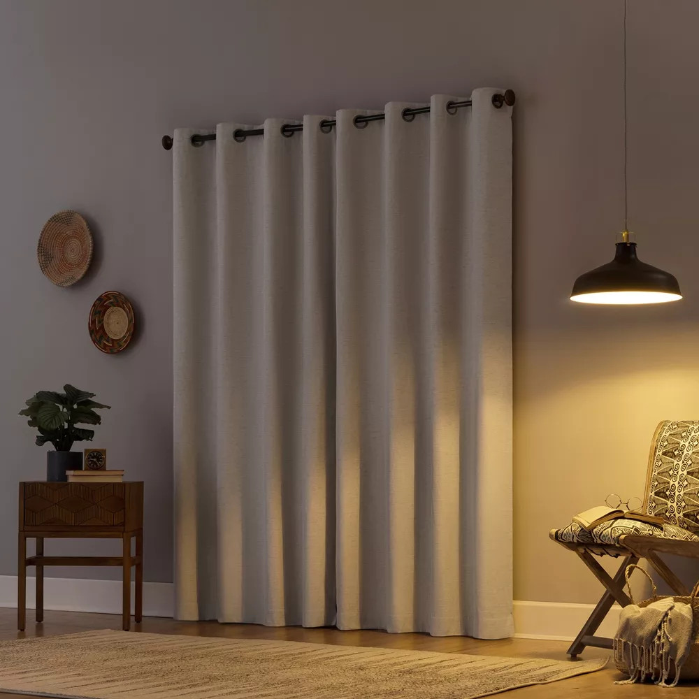 •Raw linen texture adds dimension and style to any room of your home •Sun Zero Theater Grade 100% Blackout lining offers complete light blocking, thermal efficiency, and noise reduction •Gunmetal grommet top design fits curtain rods up to 1 ½" in diameter •Linen Blend •Machine washable •Panels sold individually. Measure carefully prior to purchase. (Image features 2 panels) Description Add dimension and style to any room of your home with the Textured Linen Blend Total Blackout Grommet Top Curtain from Archaeo. The Sun Zero Theater Grade 100% Blackout lining offers complete light blocking, thermal efficiency, and noise reduction. Gunmetal grommet top design fits curtain rods up to 1 ½" in diameter. Sold as individual panels measuring 50" width by 96" len Shop Our Store Contact Us Add to Favorite Sellers 50"x96" Archaeo Total Blackout Textured Linen Blend Grommet Top Curtain Panel Product Details •Raw linen texture adds dimension and style to any room of your home •Sun Zero Theater Grade 100% Blackout lining offers complete light blocking, thermal efficiency, and noise reduction •Gunmetal grommet top design fits curtain rods up to 1 ½" in diameter •Linen Blend •Machine washable •Panels sold individually. Measure carefully prior to purchase. (Image features 2 panels) Description Add dimension and style to any room of your home with the Textured Linen Blend Total Blackout Grommet Top Curtain from Archaeo. The Sun Zero Theater Grade 100% Blackout lining offers complete light blocking, thermal efficiency, and noise reduction. Gunmetal grommet top design fits curtain rods up to 1 ½" in diameter. Sold as individual panels measuring 50" width by 96" length in color white. Measure carefully before selecting your desired size and quantity. Rod not included. Machine wash cold on gentle cycle. Use non-chlorine bleach when needed. Tumble dry on low heat. Number of Pieces: 1 Dimensions (Overall): 96 Inches (L), 50 Inches (W) Fabric Name: Plain Weave Features: Noise reduction, Thermal Insulated Textile Material: 93% Polyester, 7% Linen Indoor/Outdoor: Indoor Accommodates Pole Size: 1.5 Inches Required, Not Included: Rod Hanging style: Grommet Top Light Filtration: Blackout Single Panel Weight: 1.43 Pounds Care & Cleaning: Machine Dry, Machine Wash Payment For fixed priced listings, Buy it Now and Best Offer, payment is required at the time of purchase. We accept PayPal and credit cards via PayPal. We make every effort of shipping within 1 business day of payment clearing. All payments must be through PayPal, utilizing eBay checkout. For auction listings, payment is required within two (2) days of purchase. Any items not paid within two (5) days will risk the product being re-listed and sold to another buyer. Taxes - US We collect sales tax, as required by law. Please see the Shipping and Payments tab for more information. Shipping For fixed priced listings, Buy it Now and Best Offer, payment is required at the time of purchase. We accept PayPal and credit cards via PayPal. We make every effort of shipping within 1 business day of payment clearing. All payments must be through PayPal, utilizing eBay checkout. For auction listings, payment is required within two (2) days of purchase. Any items not paid within two (2) days will risk the product being re-listed and sold to another buyer. Policies If you do need to return your item, please contact us via phone or email (you will receive an email when your product ships with additional details - Subject: Important information about your purchase from Bullseye Deals). You will then be provided with a return shipping label and packing slip. Pack the item carefully. Include the packing slip, apply the shipping label, and return the item within 5 business days of the date you request a return. You must return the item within 5 business days of requesting the return, or your return will be canceled. Once we receive your order we will inspect the return. Please allow up to 5 business days of receiving the returned item for your refund.