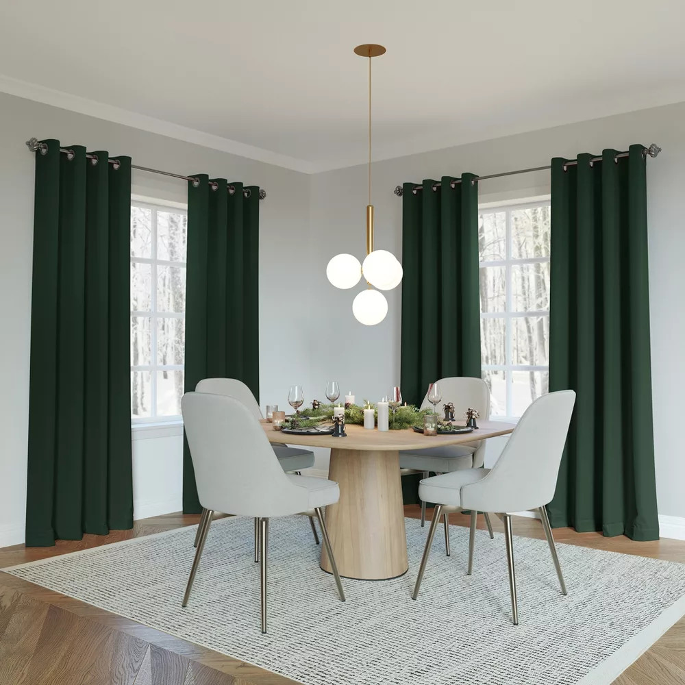 These curtains are a game-changer! They completely black out the room, making it pitch dark for perfect sleep or home theater. Love how they also keep the room cozy by blocking heat and cold while reducing outside noise. The grommets slide smoothly, and installation was super easy. Highly recommend for anyone wanting total darkness and energy savings!