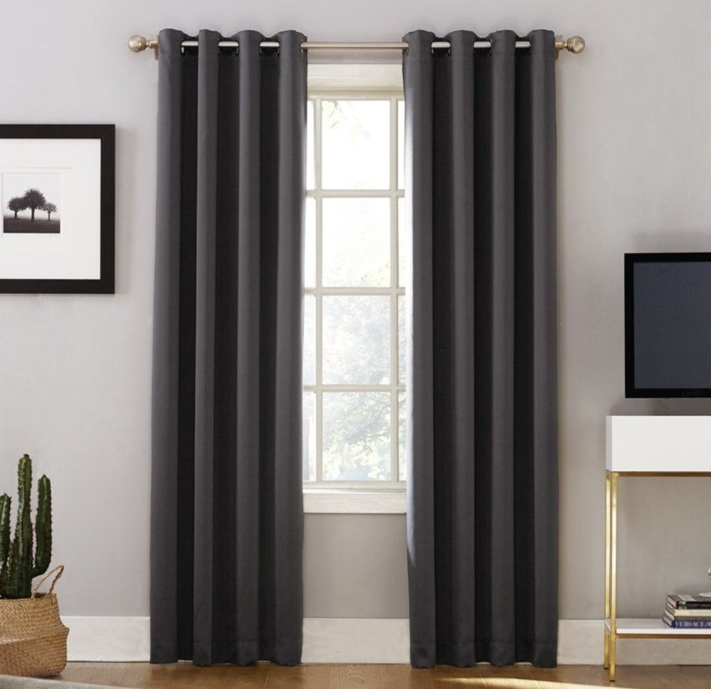 Color: Coal Number of Panels in Packaging: 1 Dimensions (Overall): 63 in L x 52 in W Indoor/Outdoor: Indoor Required, Not Included: Rod Hanging Style: Grommet Light Filtration: Blackout Extreme Blackout technology blocks out 100% of outside light Energy Efficient design reduces energy lost through your windows by up to 50% Thermal properties help keep summer heat and winter chill out of your home Noise reduction by up to 35% helps you get a sounder, more uninterrupted sleep Includes 1 single grommet curtain panel made from machine washable material Machine Wash cold, gentle cycle. Use only non-chlorine bleach when needed. Tumble dry low heat. Cool iron as needed. Sun Zero Oslo Home Theater Grade Extreme Blackout Grommet Curtain Panel provide the ultimate in light blocking technology to keep out even the harshest of light while bringing an elegant urban sophistication to any room of your home. Sun Zero Extreme Blackout technology is laboratory tested to block out 100% of light, reduce outside noise by up to 35%, and decrease energy lost through your windows by up to 50%. Comfort is optimized with thermal properties that help keep summer heat and winter chill out of your home. Hang in your entertainment room to eliminate screen glare and reduce distracting outside noise, or in your bedroom for enhanced privacy and a sounder, more uninterrupted sleep. Machine wash cold on gentle cycle. Use non-chlorine bleach when needed. Tumble dry on low heat, using a cool iron as needed.