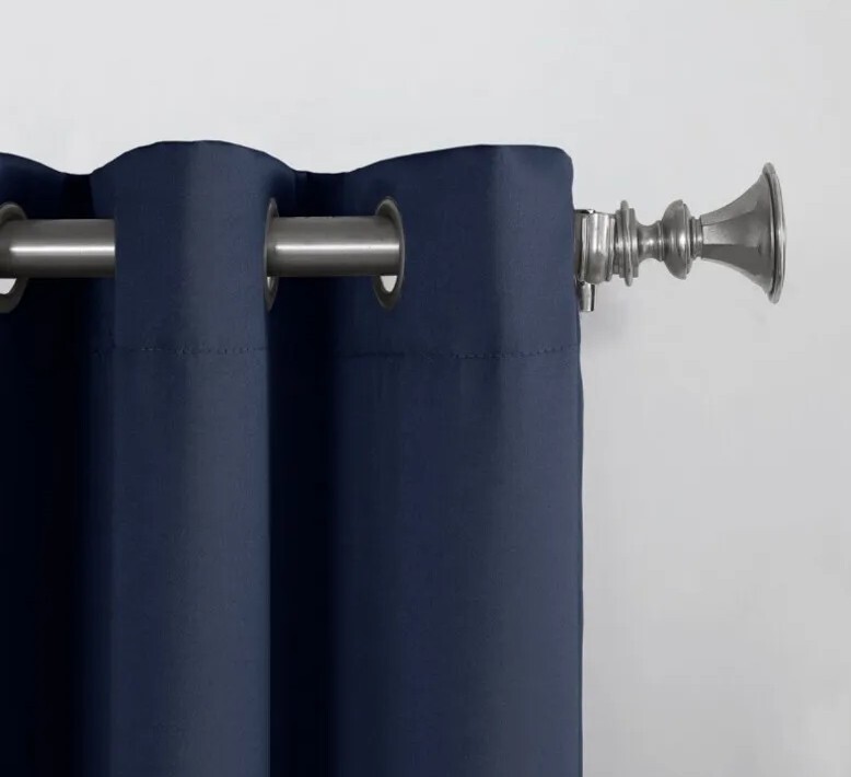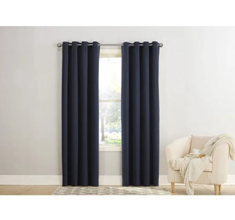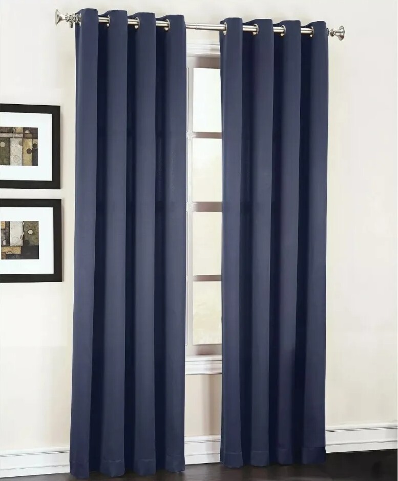 Color: Navy Number of Panels in Packaging: 1 Number of Packaging Being Sold as: Pair Dimensions (Overall): 63 in L x 54 in W Accommodates Pole Size: 1.5 inches Indoor/Outdoor: Indoor Textile Material: Polyester Required, Not Included: Rod Hanging Style: Grommet Introducing the Sun Zero Navy Blackout Grant Grommet Curtain Panel – the perfect fusion of style and functionality for your home. Elevate your space with this sophisticated 54"x63" curtain panel that seamlessly combines timeless design with cutting-edge blackout technology. Crafted with precision, the Navy Blackout Grant Grommet Curtain Panel boasts a rich navy hue that effortlessly complements any interior decor. Its 54"x63" dimensions make it an ideal fit for various window sizes, providing a sleek and tailored appearance. The single panel design ensures easy customization and adaptability to your specific needs. The Sun Zero curtain panel features blackout technology, designed to block out unwanted light and enhance privacy. This not only creates a cozy and inviting atmosphere in your living space but also helps regulate temperature, providing energy efficiency benefits. The innovative grommet top design adds a contemporary touch to the curtain, allowing for smooth and easy installation. The metal grommets not only contribute to the modern aesthetic but also ensure durability and longevity. Upgrade your home with the Sun Zero Navy Blackout Grant Grommet Curtain Panel – a single panel solution that combines style, functionality, and energy efficiency. Transform your living space into a haven of comfort and elegance with this exquisite curtain panel.