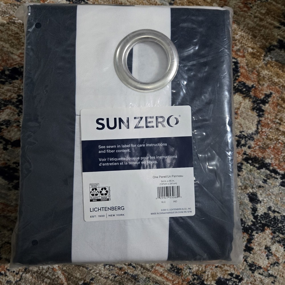 Add a touch of modern style to any room with this 54"x95" Indigo Striped Curtain Panel from Sun Zero. The blackout feature ensures privacy and blocks out unwanted light, while the noise-reducing design creates a peaceful environment. The grommet top makes installation easy and adds a contemporary touch to your space. Made of durable polyester, these panels are easy to care for and perfect for adults. With a sleek design and functionality, these curtains are ideal for any room in your home.