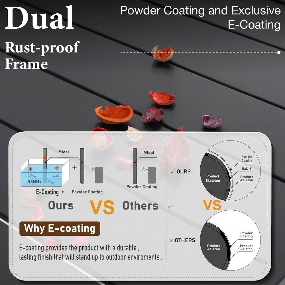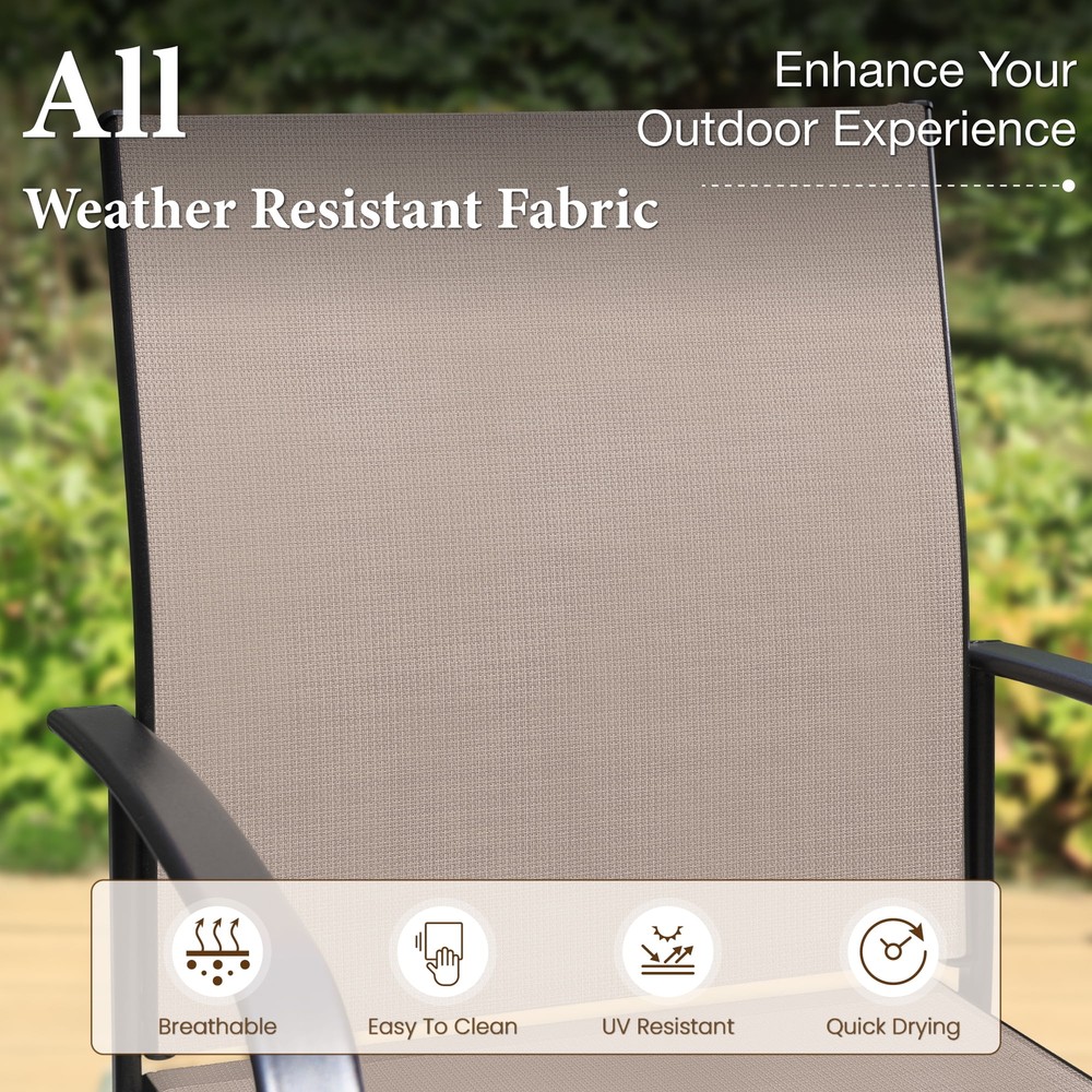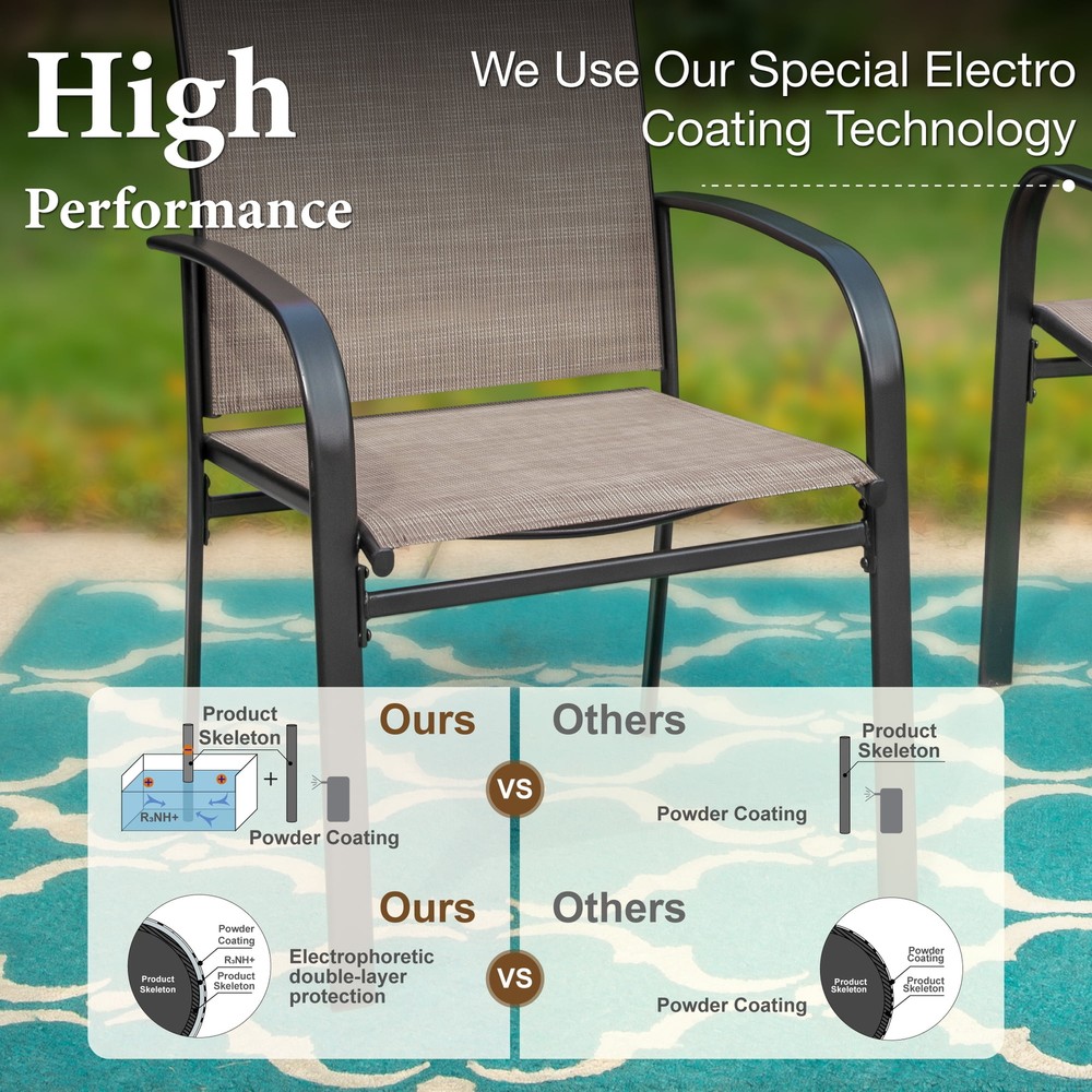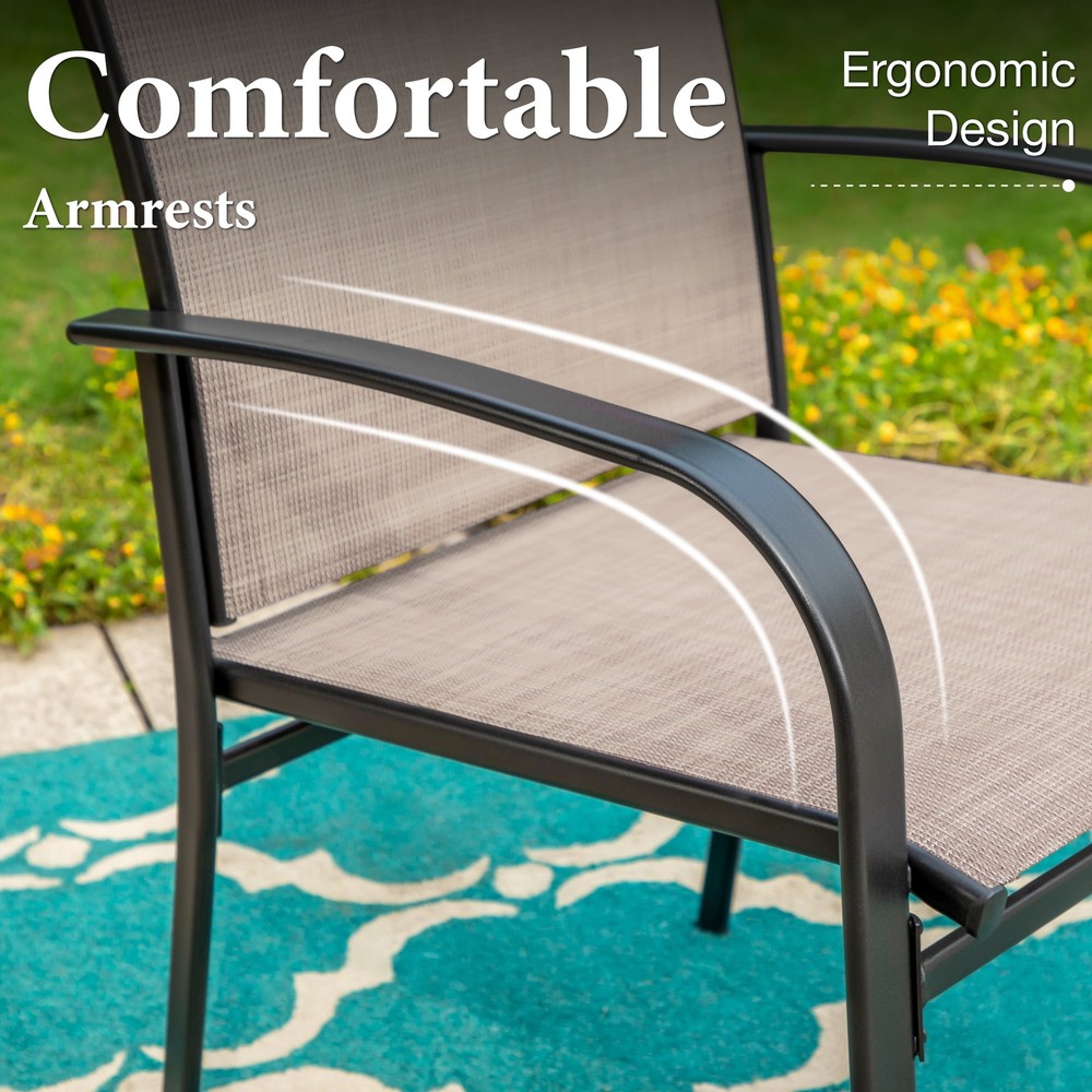 Store New Arrivals Add to Favorite View Feedback Contact 5-Piece Outdoor Patio Dining Set Metal Steel Square Table Textilene Chairs Black & Brown 4-Person Set FAST FREE Shipping! Order Today! Collection Outdoor Dining Furniture Set Type Dining Table with Chair Piece Count 5 Seating Capacity 4 Items Included 4 Chairs & 1 Table Color Black & Brown Finish Powder Coated & E-coating Table Shape Square Base Color Brown Base Material Metal Steel Base Style Frame Table Top Material Steel Top Color Black Table Height 28 in Table Length 37 in Table Width 37 in Seat Color Brown Seat Material Textilene Fabric Content 100% Textilene Overall Chair Depth 20 in Overall Chair Height 36.2 in Overall Chair Width 20.5 in Seat Depth 20 in Seat Height 36.2 in Seat Width 20 inches Seat Back Height 18.9 in Seat Back Width 20 in Seat Back Style Low Back Leg Color Black Leg Material Steel Features Weatherproof Home Decor Style Modern Recommended Location Outdoor Assembled Product Weight 80 lb Maximum Load Weight 300 lb Age Group Adult Is Assembly Required Yes Assembled Product Dimensions (L x W x H) 27.20 x 21.70 x 36.20 Inches Turn your backyard into a unique, comfortable getaway with this stylish MF Studio outdoor patio furniture that provides seating for 4, perfect for entertaining, hosting a dinner, gathering or a small party. The set includes one square table and four armchairs. Crafted with heavy-duty steel frame with E-coating & powder coated finish, this patio set offers supportive structure and stands up to outdoor elements for reliable long-lasting strength. The chair features a clean-lined design of black powder-coated steel frame & Textilene seat that looks simple, but elegant with a timeless look. The Textilene fabric is made of tightly woven polyester with specially formulated PVC coating which has good performance of UV-protection, breath ability and bearing capacity. The table is topped with premium slats and a 1.57" diameter umbrella hole in the center for a shade solution. If you're looking for outdoor furniture to enjoy your family gathering or a party, this MF Studio 5-piece set is sure to be your favorite. Entertaining outside with MF Studio is a breeze, taking in the great outdoors in style. Specifications: Table Overall Size: L 37" x W 37" x H 28" Slat Top&Bow Legs Umbrella Support, Hole Diameter 1.57" Chairs Overall Size: 27.2" D x 21.7" W x 36.2" H Seat Dimension: 20" x 20", Seat Height: 17.3" Weight Capacity: 300 LBS Set including one square dining table & four steel armchairs Heavy-duty steel frames with E-coating & powder coated finish, all weather & strong rust resistant 4-seat outdoor dining set, perfect for entertaining, hosting a dinner, gathering or a small party Square table with slat top, bow legs & 1.57" diameter umbrella hole, great for patio life Chairs with tightly woven Textilene, good performance of UV-protection, breath ability & bearing capacity SHIPPING FAST FREE Shipping! We are always working hard to ensure your package arrives as soon as possible. Please understand that some factors like weather, high postal traffic, and the performance of shipping companies are outside of our control. We offer free shipping to the lower 48 states and ship within 2 business days of payment, usually sooner. We do not accept P.O. Boxes. Please provide a physical address. Get It Today!... Buy It Now! RETURNS We offer a 30-Day Return Policy. PAYMENT We accept PayPal. CONTACT US This page content is yet to come Please ad us to your favorite seller and visit again later Thank You CUSTOMER SATISFACTION We try our very best to make sure every customer is completely satisfied. If there's a problem, message us! We're happy to help. WE ACCEPT Buy It Now!