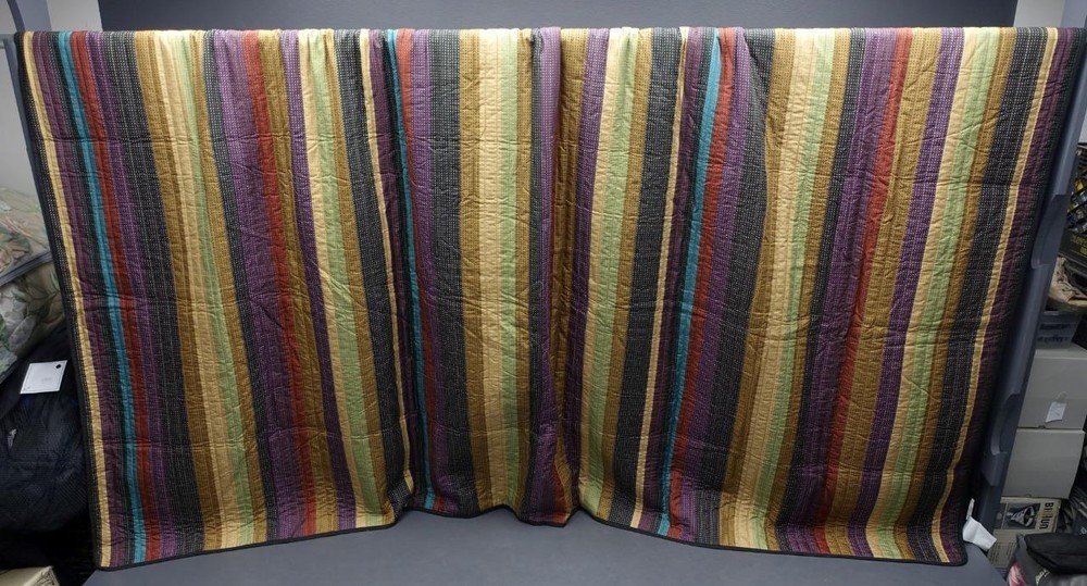5pc Madison Park King/Cal King Size Purple/Red/Gold/Black Stripe Includes: (1) Coverlet 95" x 106" (2) Shams 40" x 23" (2) Square Decorative Pillows 17" x 17" & 14" x 14" 100% Polyester Excellent pre-owned condition No stains/rips/holes/odor Be sure to view all photos. 5pc Madison Park King/Cal King Size Purple/Red/Gold/Black Stripe Includes: (1) Coverlet 95" x 106" (2) Shams 40" x 23" (2) Square Decorative Pillows 17" x 17" & 14" x 14" 100% Polyester Excellent pre-owned condition No stains/rips/holes/odor Be sure to view all photos. ABOUT US FAVORITE THIS OUR REVIEWS CONTACT US Get images that make Supersized seem small. THE simple solution for eBay sellers.