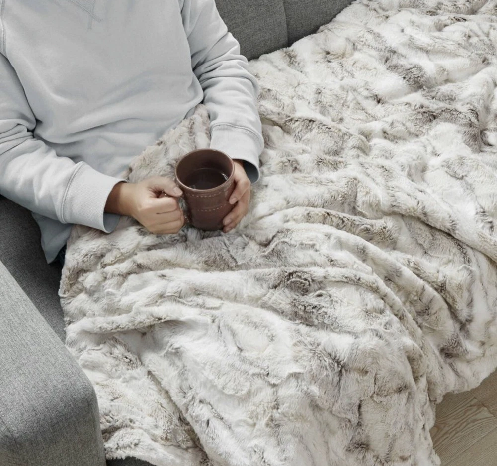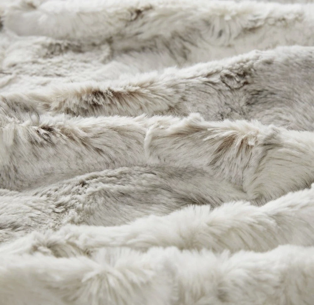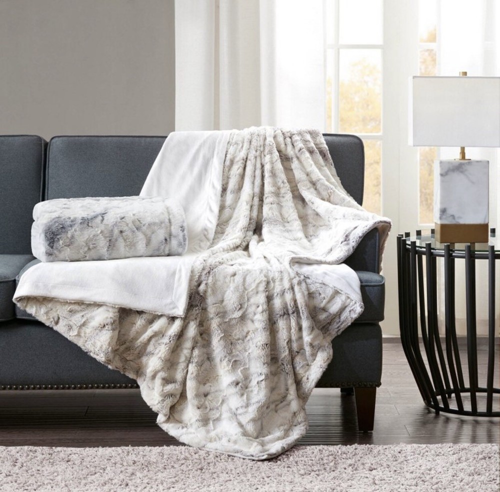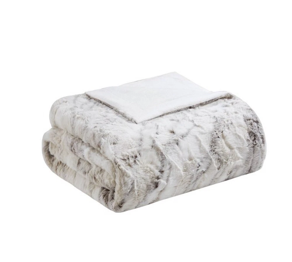 Oversized Throw - Madison Park Sachi Faux Fur Throw in Natural 70 x 60 inches. Faux-fur design brings elegant appeal to any room 60in x 70in is perfect for sofas, loveseats, chairs and more Durable fabric construction ensures lasting use Pairs well with a variety of different decor styles Machine washable for easy care Bring cozy appeal to your living room, guest bedroom or other space with the Aina Oversized Faux-Fur Throw Blanket. This throw blanket features a faux-fur design and texture in color that brings elegant charm to any room or furniture piece and is super soft to touch. Its 60-inch by 70-inch size makes it great for throwing over a loveseat, sofa or chair. Whether you're curled up with your favorite book or enjoy a cup of hot cocoa on a snowy day, this faux-fur throw blanket brings warmth and comfort to any interior. Number of Pieces: 1 Dimensions (Overall): 70 Inches (L), 60 Inches (W) Textile Material: 100% Polyester Backing Material: 100% Polyester Textile construction: Faux Fur Fabric Weight Type: Year Round Fabric Construction Care and Cleaning: Machine Wash & Drying