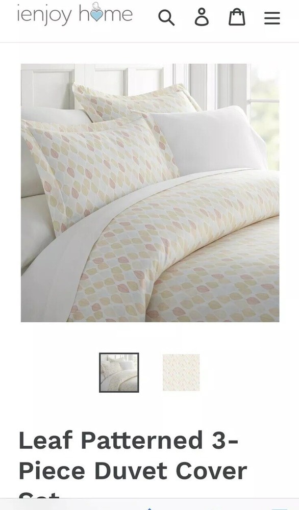 ienjoy Home Duvet Cover Set Ultra Soft Patterned Leaves Full/Queen NEW. Condition is New with tags. Shipped with USPS Priority Mail.