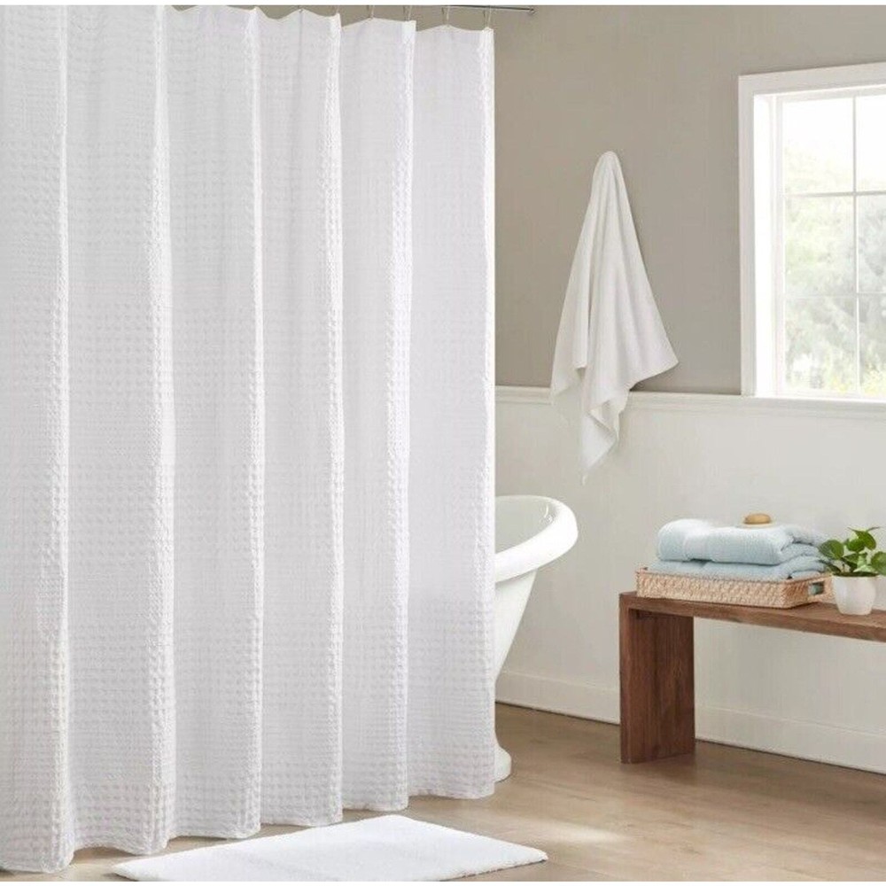 <![CDATA[<div>Add a touch of elegance to your bathroom with this 72"x72" spa waffle shower curtain from Madison Park. The curtain is made of 100% polyester and comes in a pristine white color, perfect for any bathroom decor. It's suitable for use in the shower and comes with a 3M treatment to ensure durability and longevity. The shower curtain set includes one shower curtain, measuring 72"x72", and is perfect for anyone looking to add a touch of style to their bathroom.