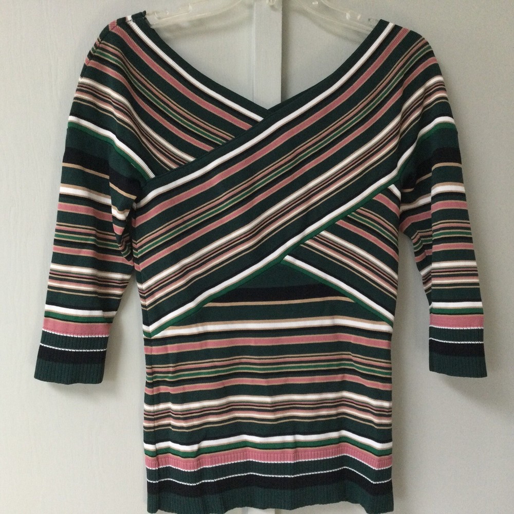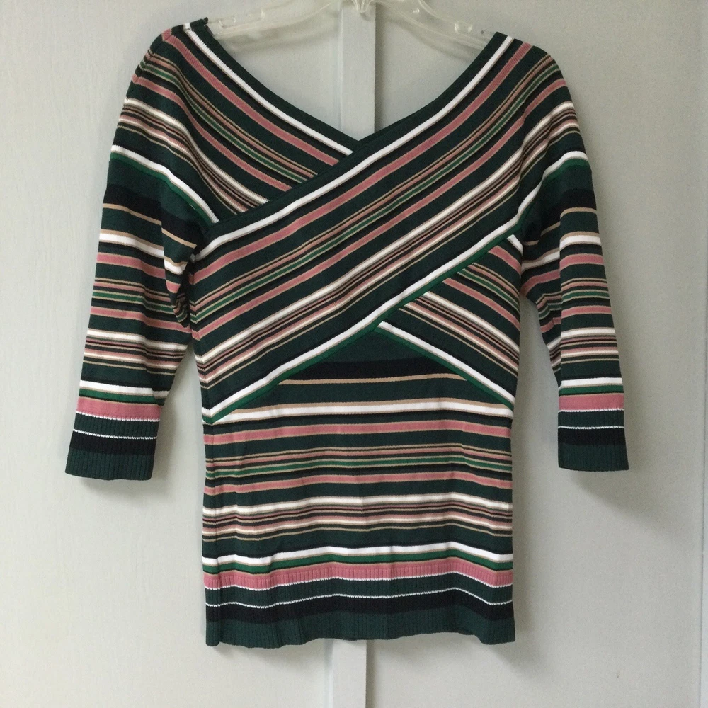 7th AVENUE Design Studio New York Co Top Size Medium Bandage Shaped Multicolor. Bust 15” across Length 25” Bandage shape Multicolor V neckline Preowned and in good condition Happy shopping #74B11/22...