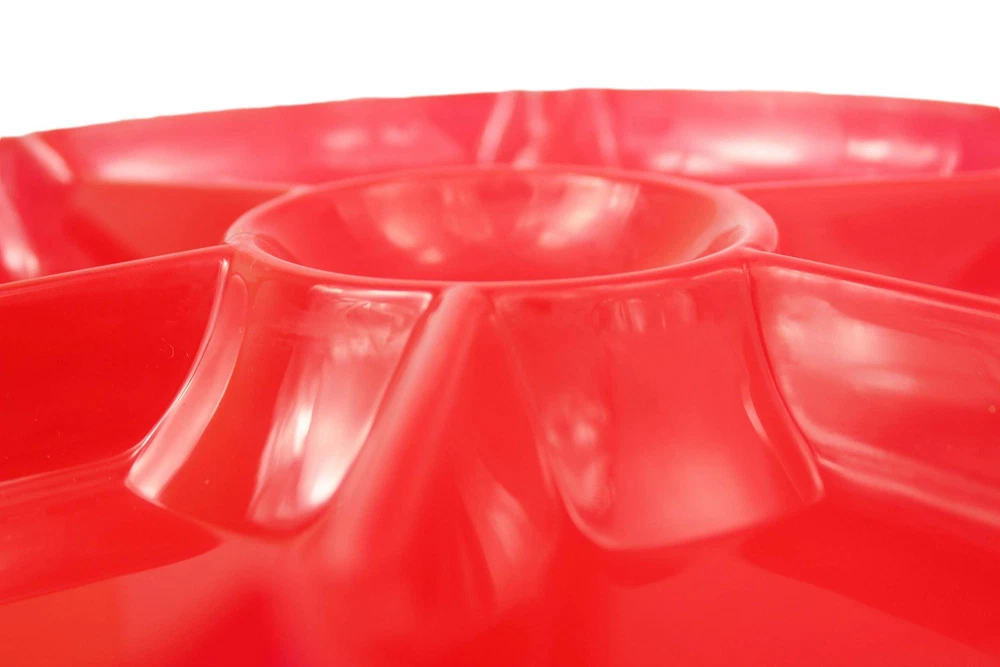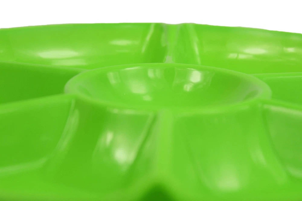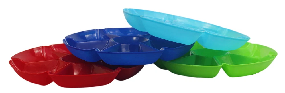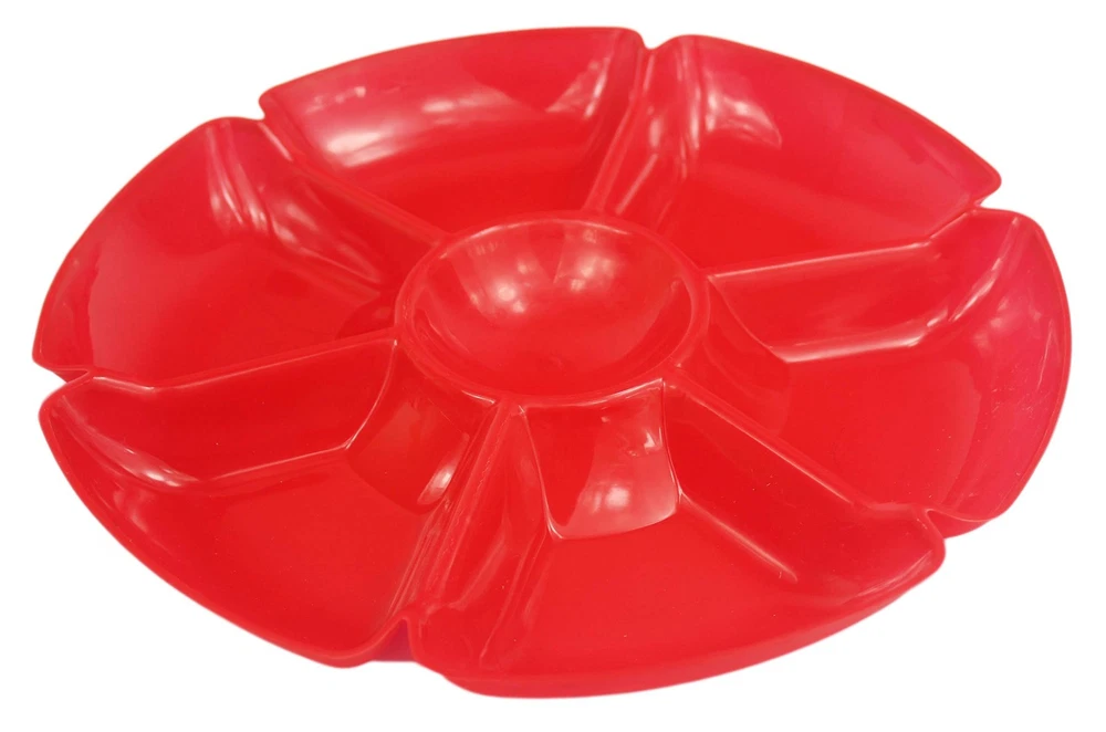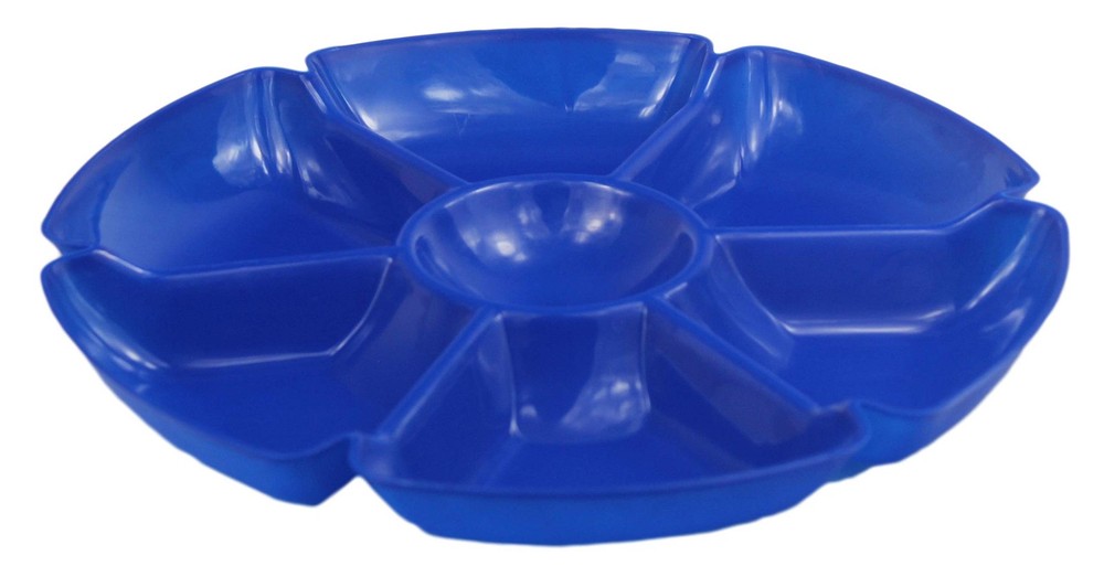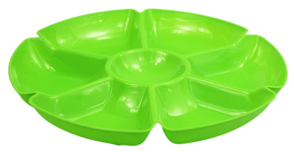 These heavy duty hard plastic trays are the perfect solution for presenting all things "party fare" because they're super-sturdy, come in a variety of beautiful colors and are hand washable and reusable so they can make many memorable appearances on your party table! So, whether it's a wedding, neighborhood get together, casual buffet, corporate retreat or an easy clean-up tapas tasting for two, get these beautiful trays to make the event truly special! Includes (8) Chip N Dip Trays Heavy duty hard plastic trays measures 12" in diameter; ideal for chips, dips, veggies or snacks! Tray is hand washable and reusable! Ideal for catering, food service, picnics, weddings, buffets, family reunions and everyday use! Playful styling and a versatile shape make these 7-section trays the perfect addition to any party table!