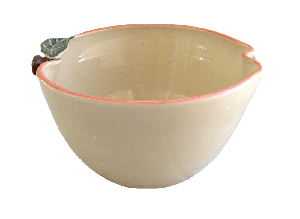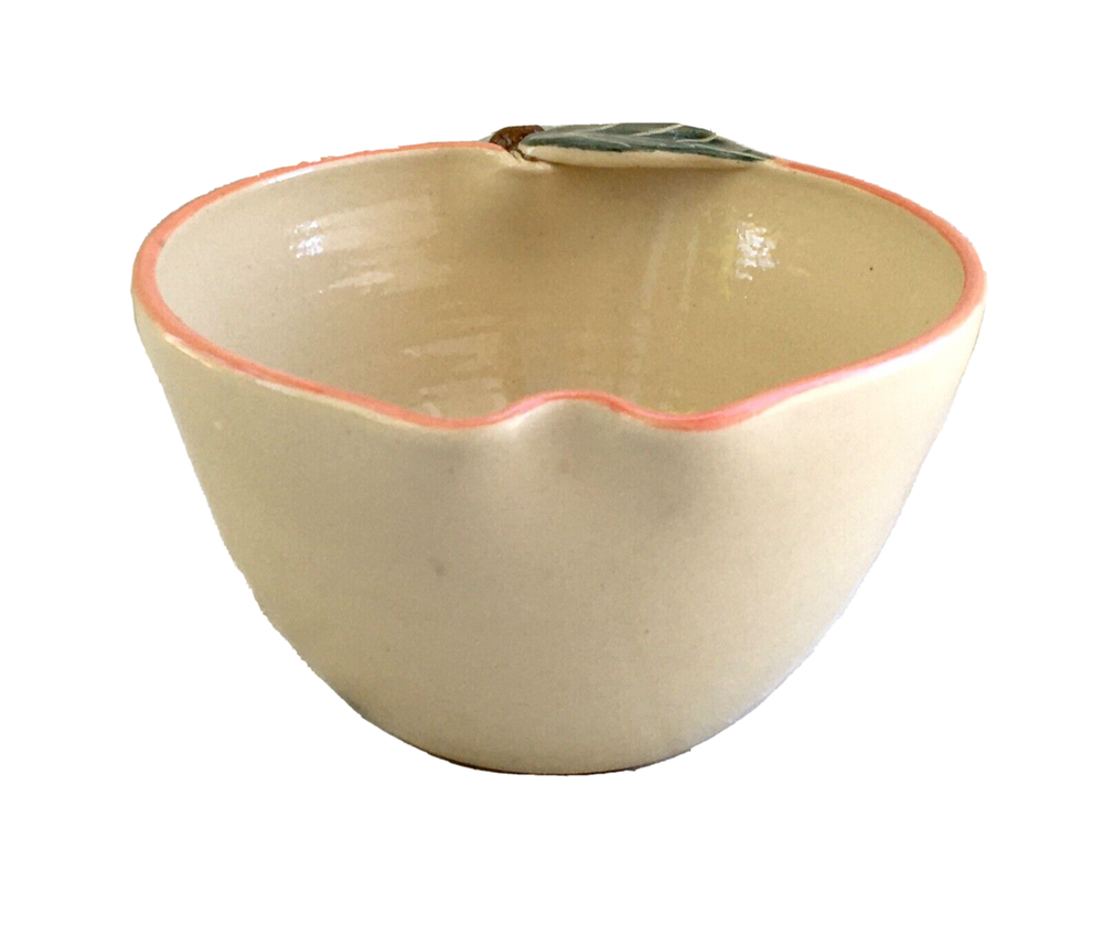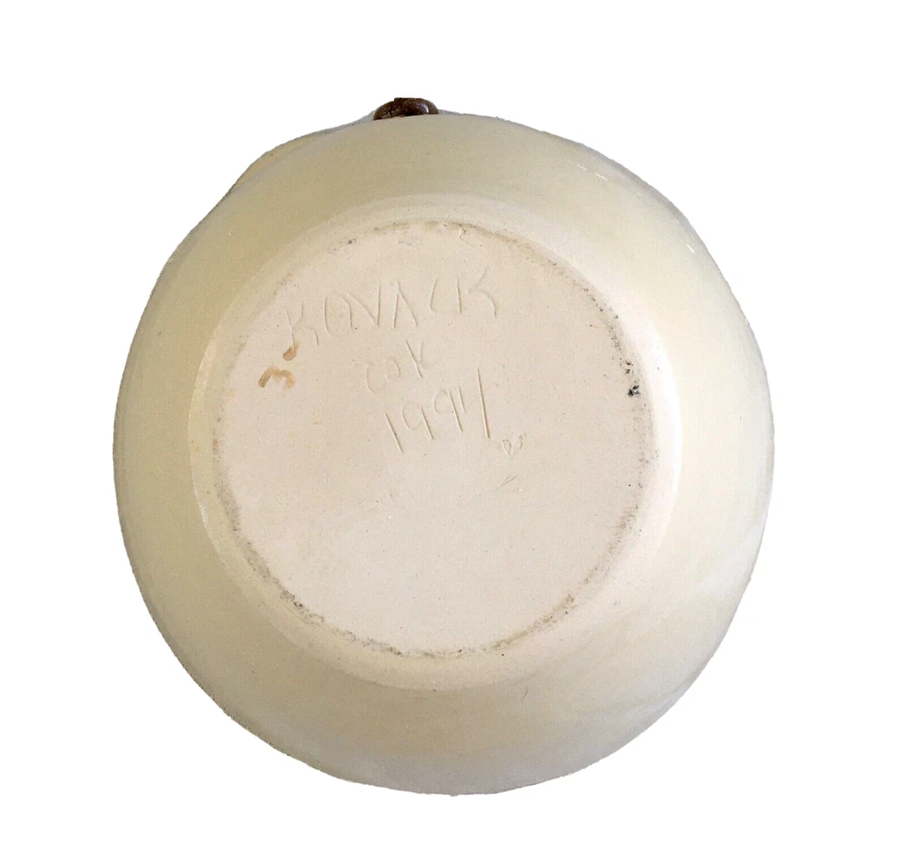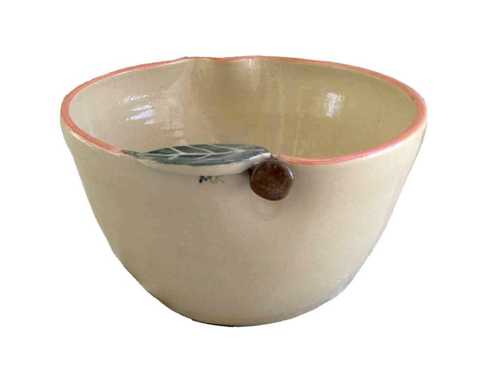 Available is a Vintage Hand Thrown Studio Art Apple Shaped Pottery Bowl, Signed MK Kovack and dated 1994. The bowl is from Kovack Pottery out of Seagrove, NC. It measures 4-1/2 inches high and 8 inches across the top. The Seagrove area is one of the largest communities of potters with the longest continual history of pottery making in the United States. Today visitors can explore the rural landscape by back roads and visit the potters in their workshops and studios, to witness the Seagrove potters continuing the tradition of making pots. The area is home to more than 100 potters who offer a full spectrum of pottery and ceramic art. With a diversity of talents, Seagrove has something to offer both the serious collector and the casual buyer. The Seagrove area offers the visitor an opportunity to learn about North Carolina's ongoing pottery culture.