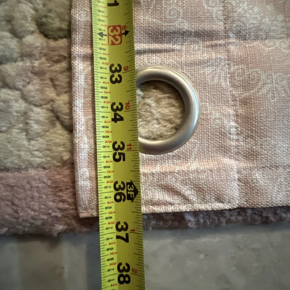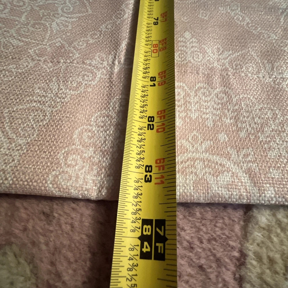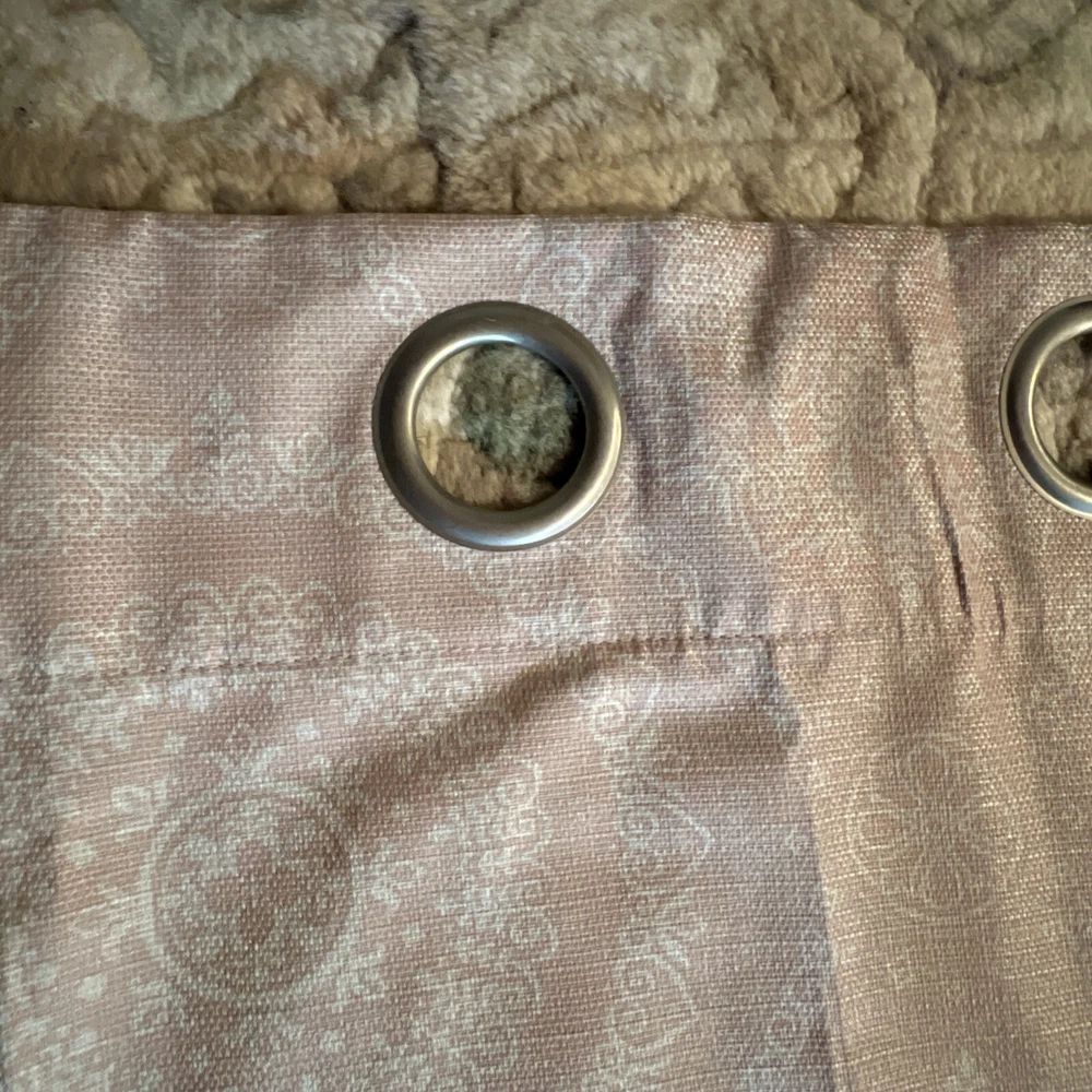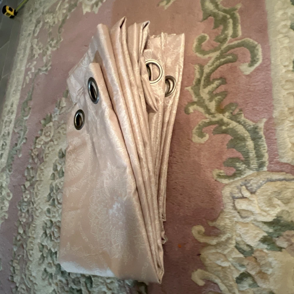 This is a set of 8 Madison Park curtain panels in a modern style with a blush pink and white medallion pattern. The curtains are opaque, made of polyester, and have a grommet curtain heading. They are designed for indoor use and measure 37 inches in width and 83 inches in length, suitable for any room. Beautiful condition