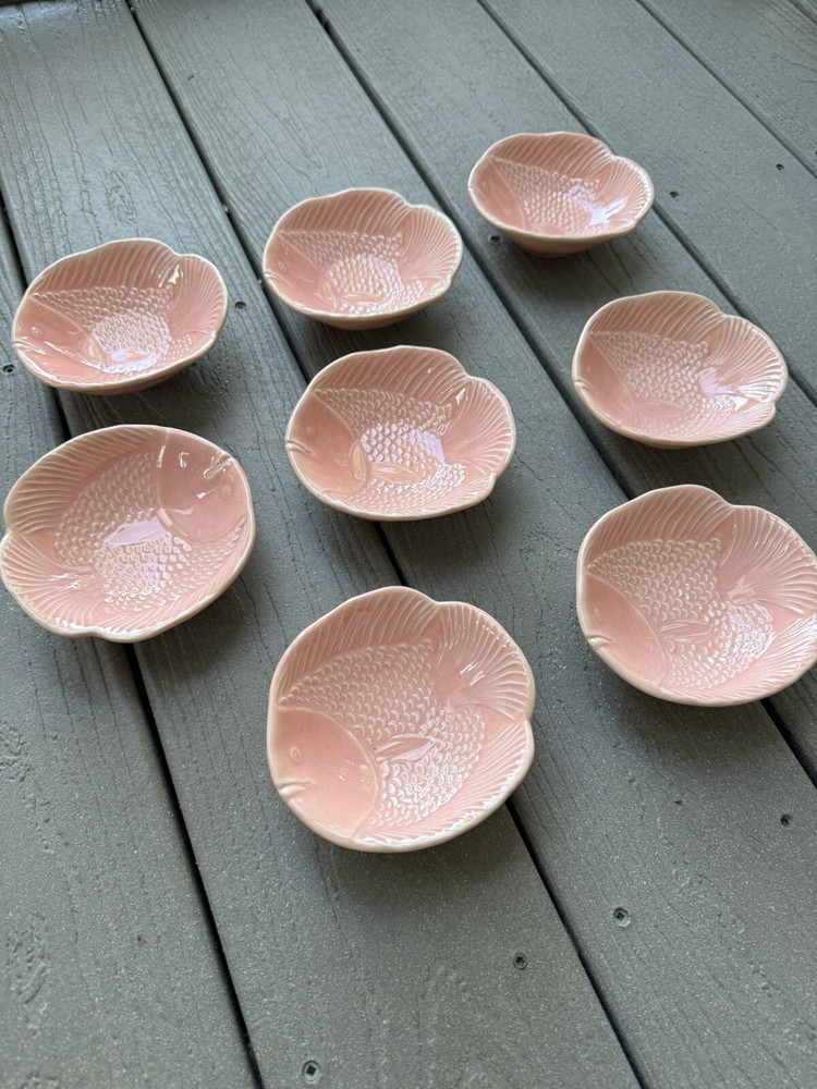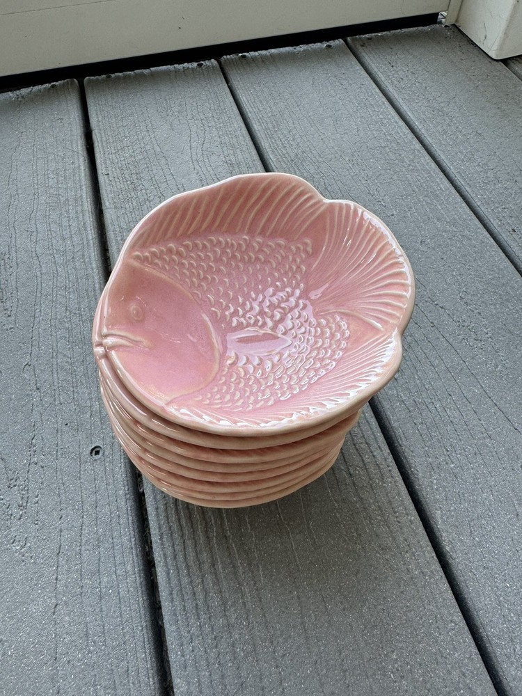8 Pottery Barn Malibu Collection Coral Pink Fish Dipping Ceramic Embossed Bowls. Condition is New. Shipped with USPS Priority Mail....