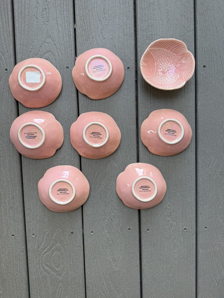8 Pottery Barn Malibu Collection Coral Pink Fish Dipping Ceramic Embossed Bowls. Condition is New. Shipped with USPS Priority Mail.