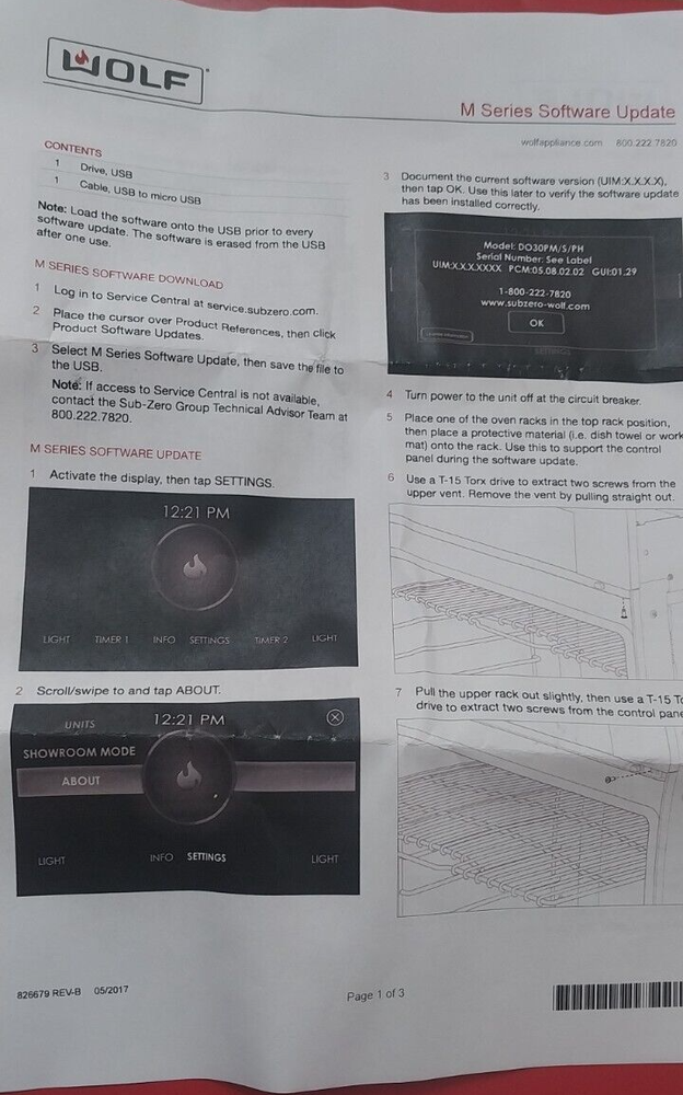 Sub-Zero Software Update Part Number 826884...