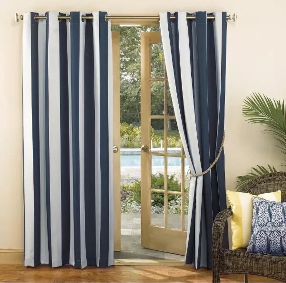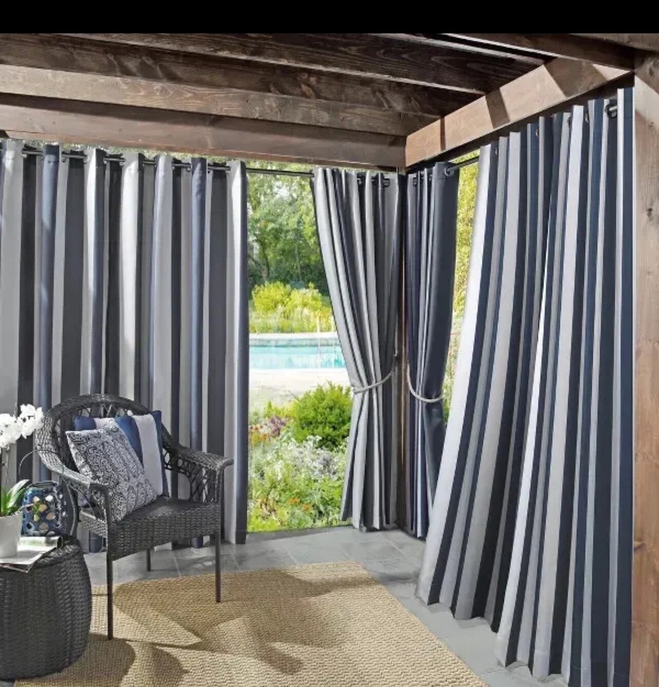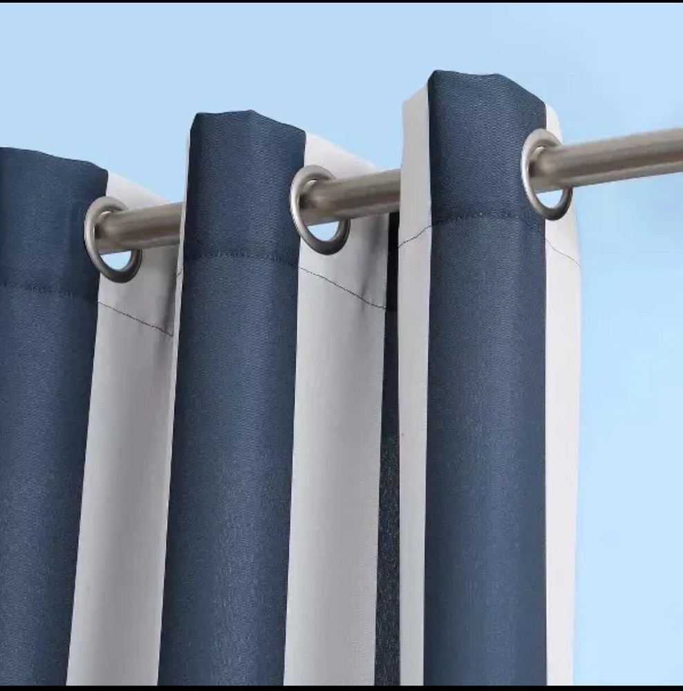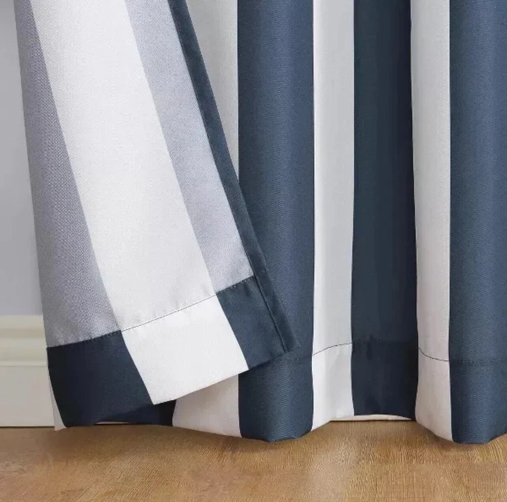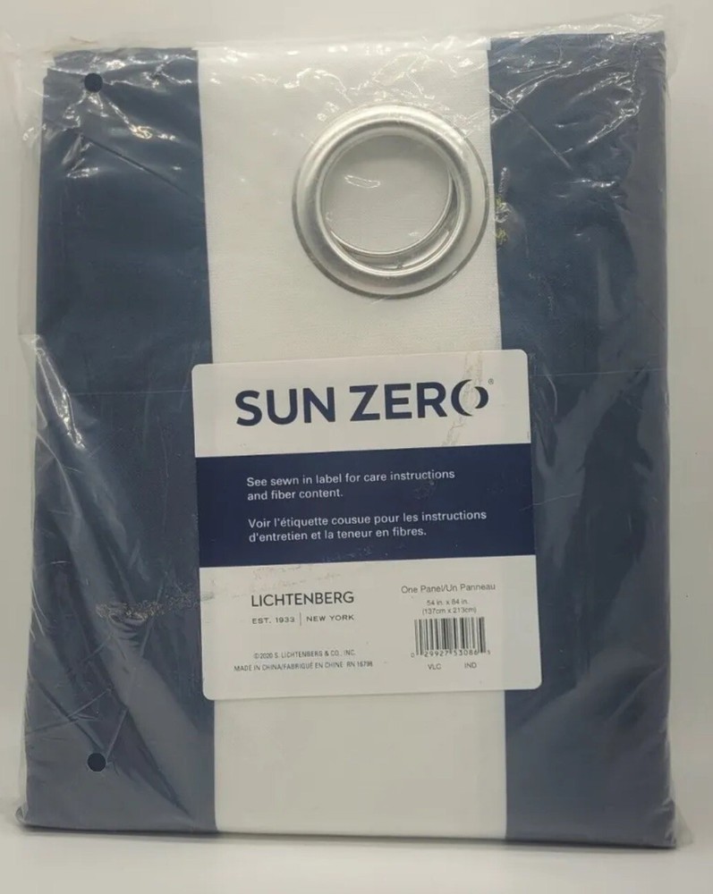 84"x54" Indigo Stripped Curtain Panel, Valencia Cabana, Grommet Top, Sun Zero. Condition is New. Shipped with USPS Ground Advantage....