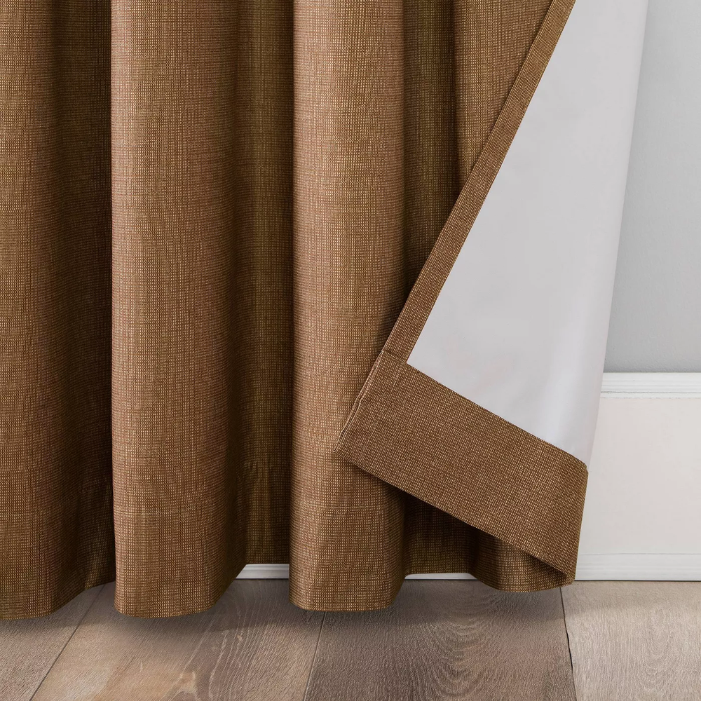 Sun Zero Duran Curtain Panels provide the ultimate in light blocking technology to keep out even the harshest of light while bringing a subtle texture to any room of your home. Sun Zero Total Blackout technology is laboratory tested to block out 100% of light, reduce outside noise by up to 35%, and decrease energy lost through your windows by up to 35%. Comfort is optimized with thermal insulation that helps keep summer heat and winter chill out of your home. Equipped with built-in metal grommets for easy hanging on standard curtain rods up to 1.5" in diameter. Hang in your entertainment room to eliminate screen glare and reduce distracting outside noise, or in your bedroom for enhanced privacy and a sounder, more uninterrupted sleep. Machine Wash Tumble Dry
