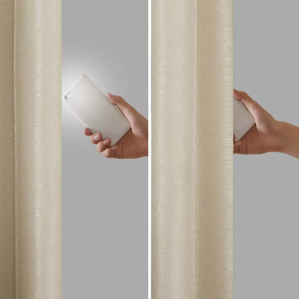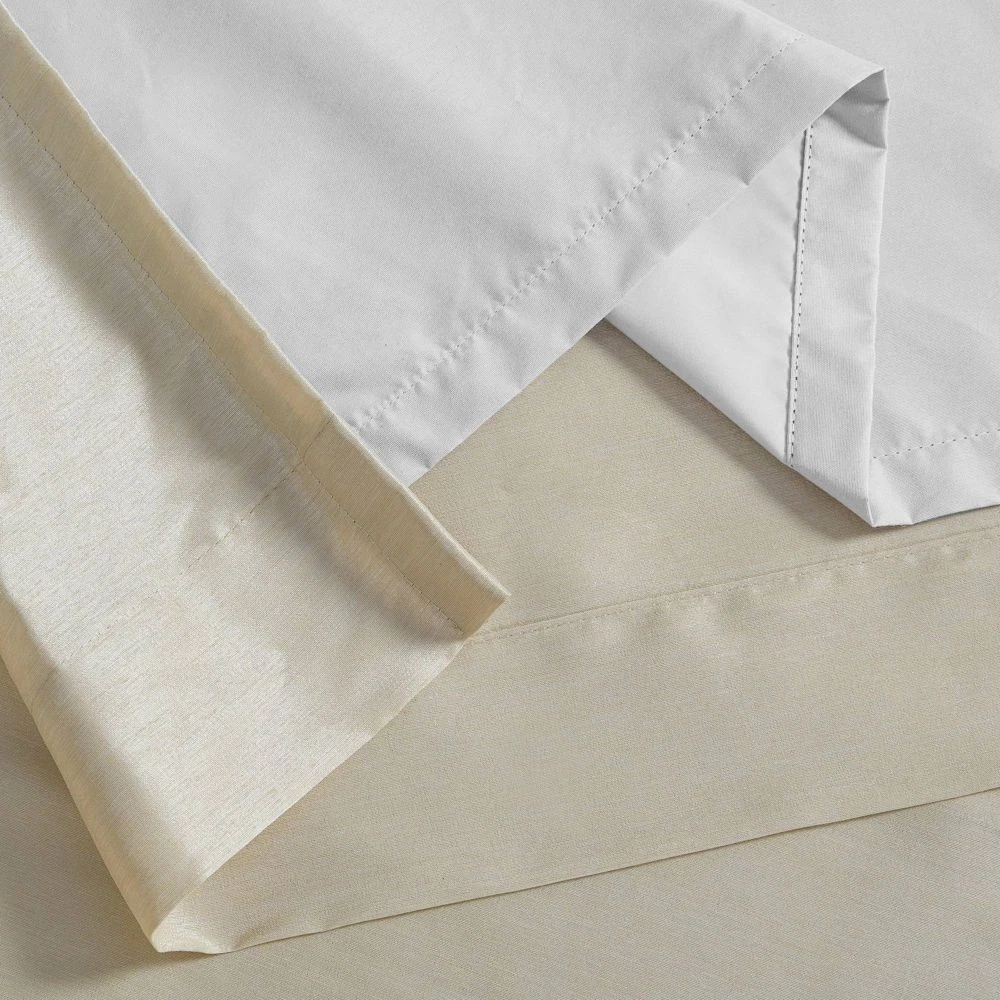 Love these curtains! The rich cream color and faux silk sheen add instant elegance, while the heavy-duty blackout lining blocks light completely—perfect for movie nights or sleeping in. Super easy to install with the twisted tab tops, and they feel high-quality with the added foam backing. Bonus that they're machine-washable and eco-friendly. Definitely need two panels for full coverage, but totally worth it for the luxurious look and total darkness they provide. A fantastic upgrade for any room!
