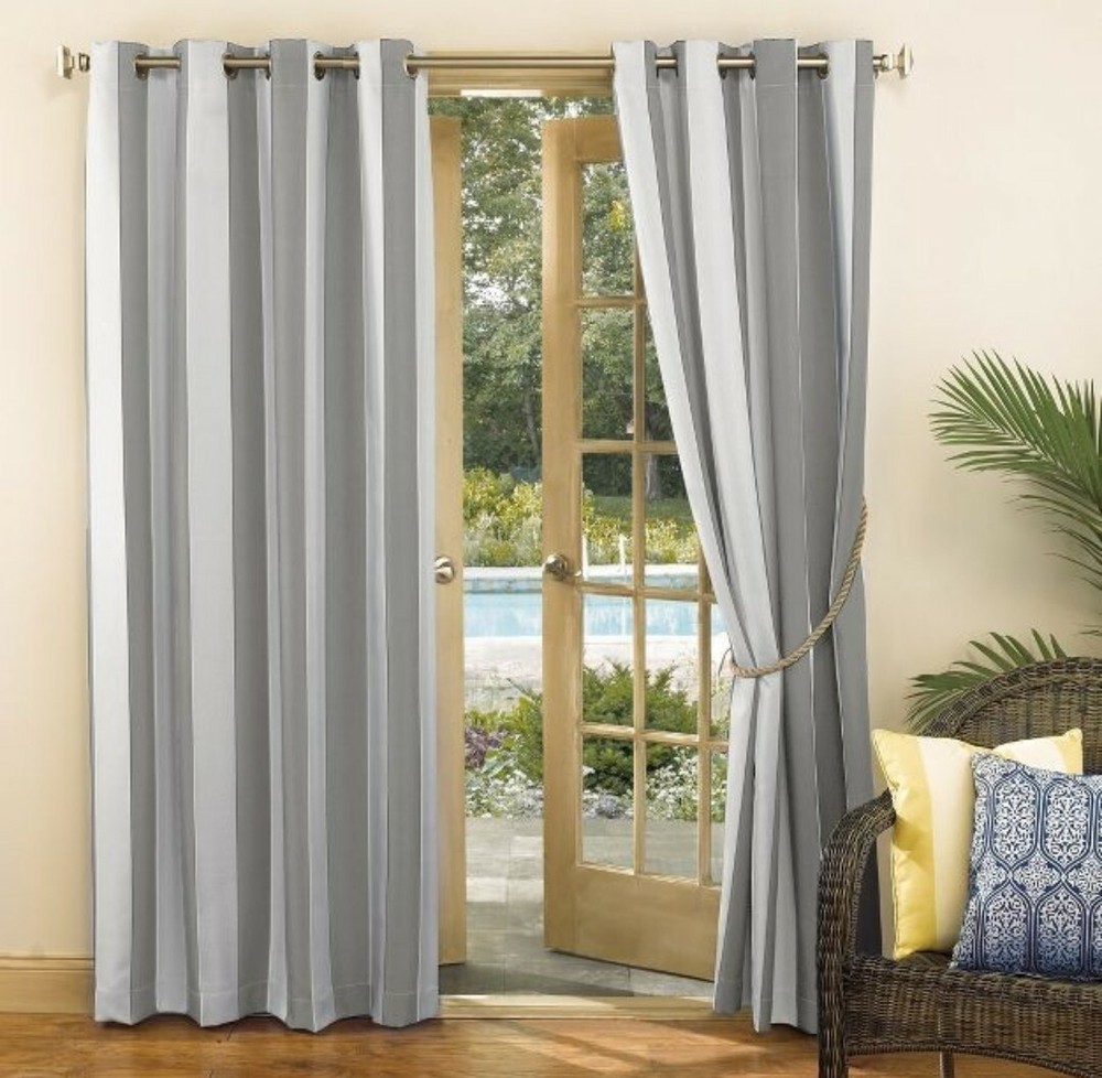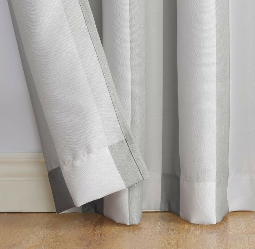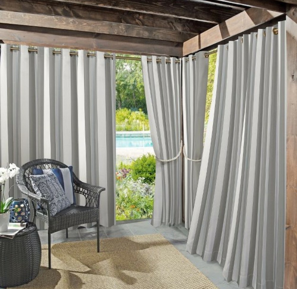 Color: Striped Grey Number of Panels in Packaging: 1 Dimensions (Overall): 95 in L x 54 in W Fabric Name: Plain Weave Accommodates Pole Size: 1.5 Inches Indoor/Outdoor: Both Textile Material: Polyester Required, Not Included: Rod Hanging Style: Grommet Top Light Filtration: Room Darkening Vertical cabana stripe design adds a coastal ambience Fade resistant durable indoor/outdoor fabric Offers light blocking with UPF 50+ UV Protection Stain and water resistant lightweight material Ideal for outdoor pergolas and gazebos Rust-proof grommets fit curtain rods up to 1.5" in diameter Add a coastal ambience to your outdoor or indoor space with the Sun Zero Valencia Curtain Panel. Woven with durable stain-resistant, water-resistant, fade-resistant, and light-blocking lightweight fabric offering upf 50+ UV protection, these curtains are the perfect solution to add privacy and protect your deck, patio, porch, or outdoor space from the elements. Perfect for pergolas and Gazebos, Sun Zero Curtain Panel is equipped with rust-proof grommets allowing easy hanging on a standard curtain rod up to 1.5 inch in diameter. Sold as individual panels. Measure carefully before selecting your desired size and quantity. Rod not included. Machine wash cold on gentle cycle. Use non-chlorine bleach when needed. Tumble dry on low heat, using a cool iron as needed.