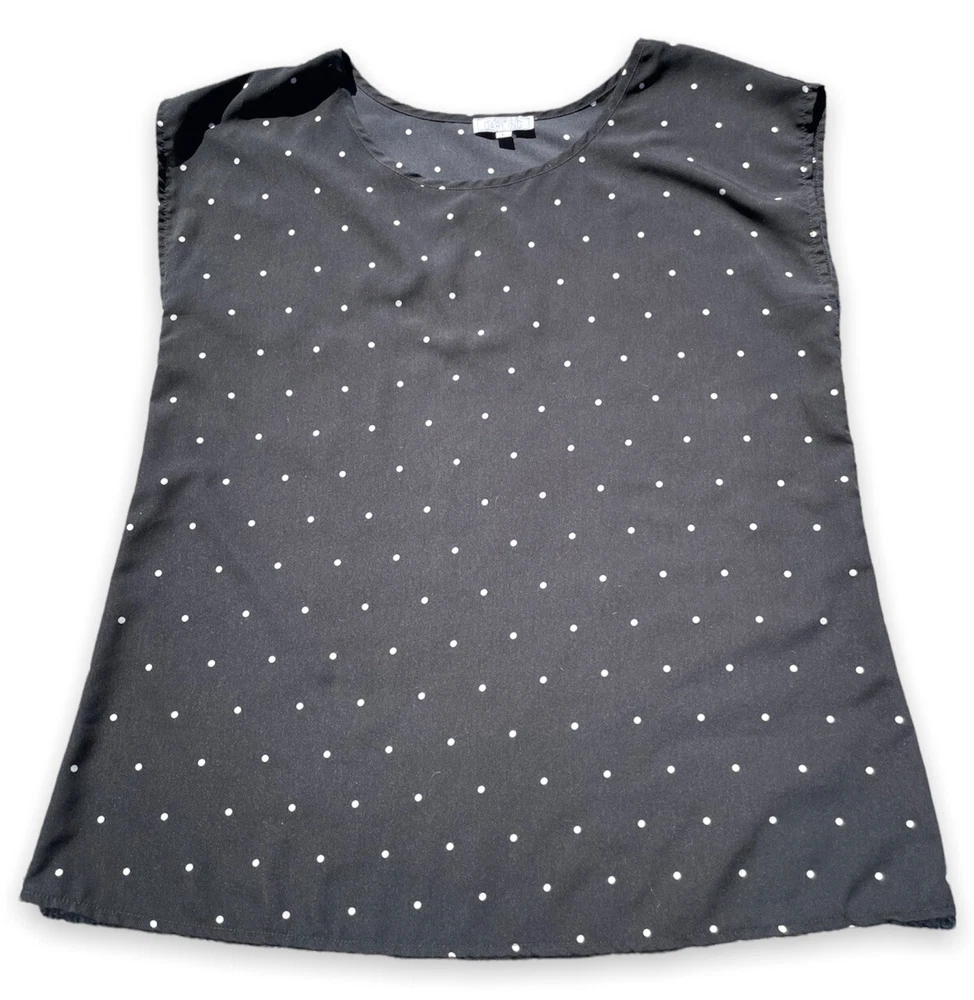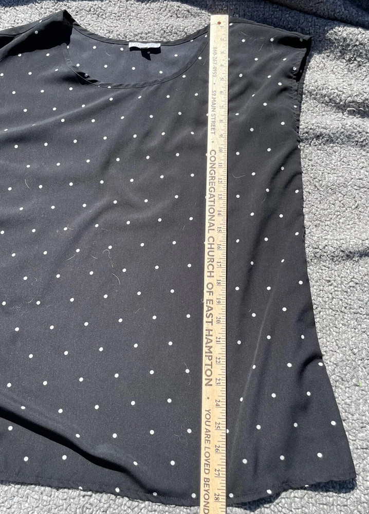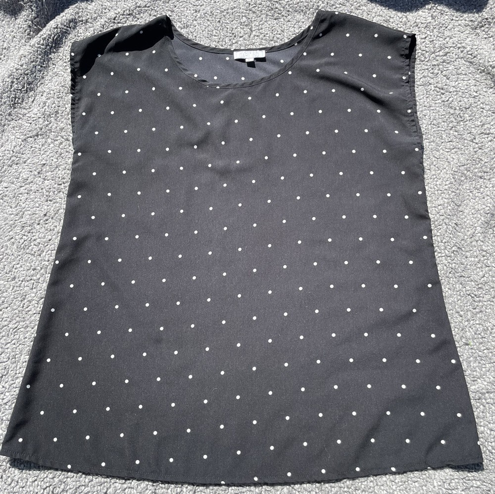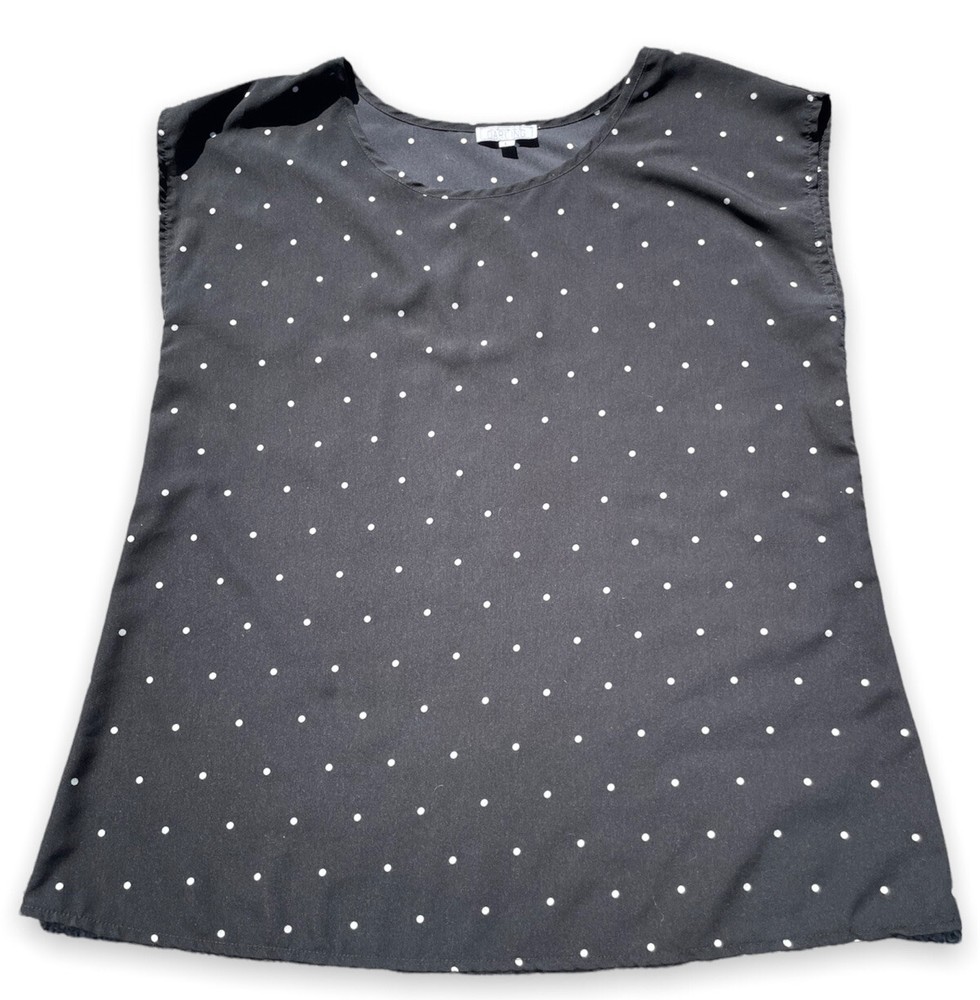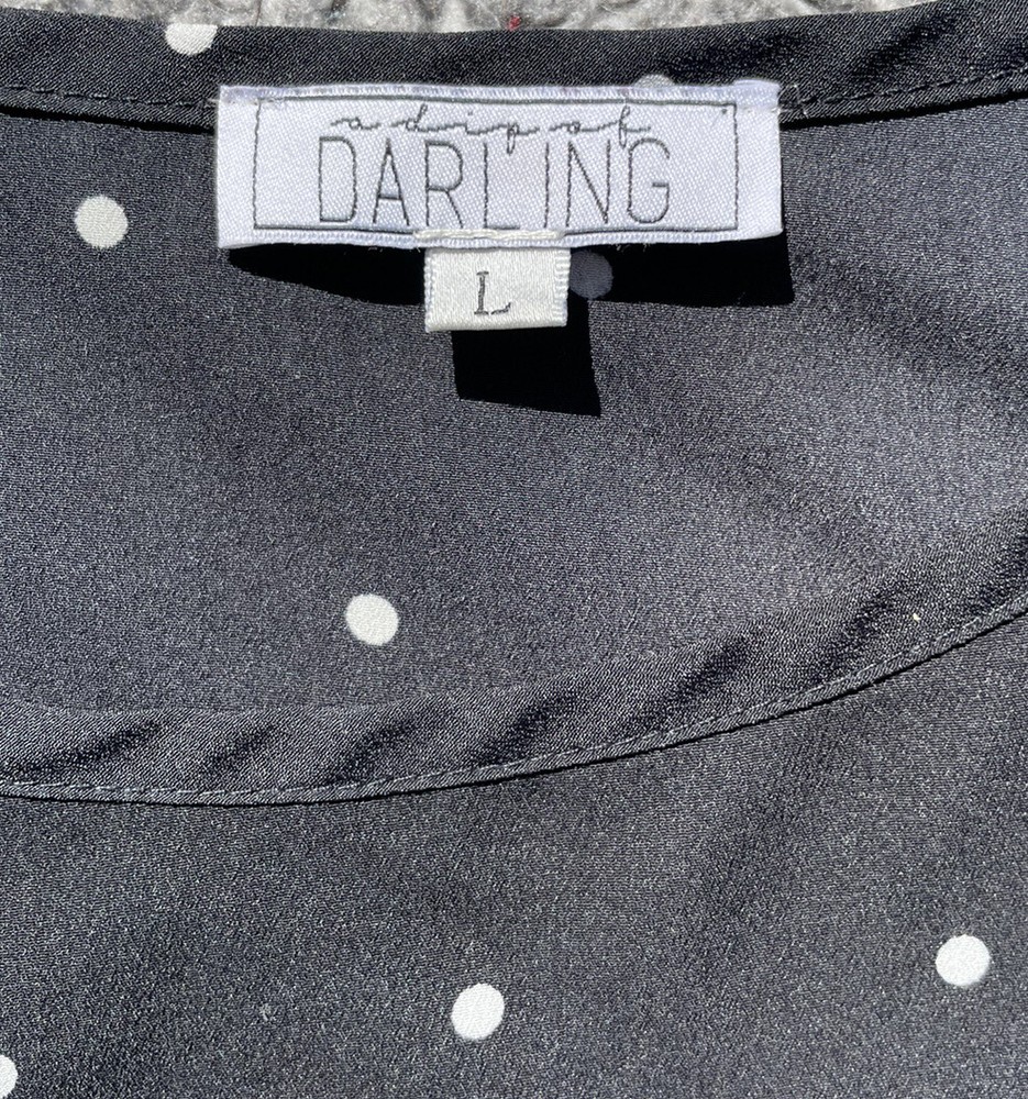 A Dip Of Darling Cap Sleeve Blouse L Black with White Polka Dots Top Shirt Rayon Scoop Neck. I can combine orders to save you money on shipping. Thanks for shopping!...