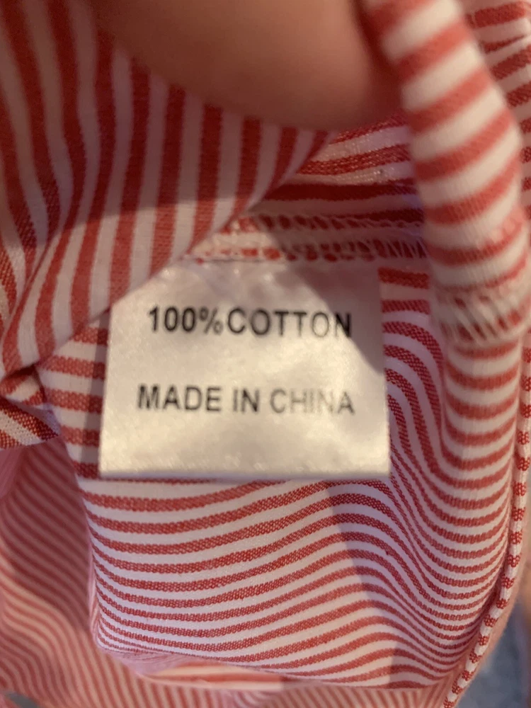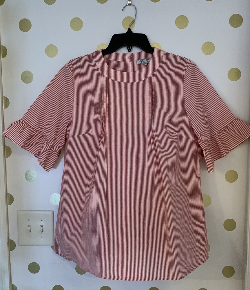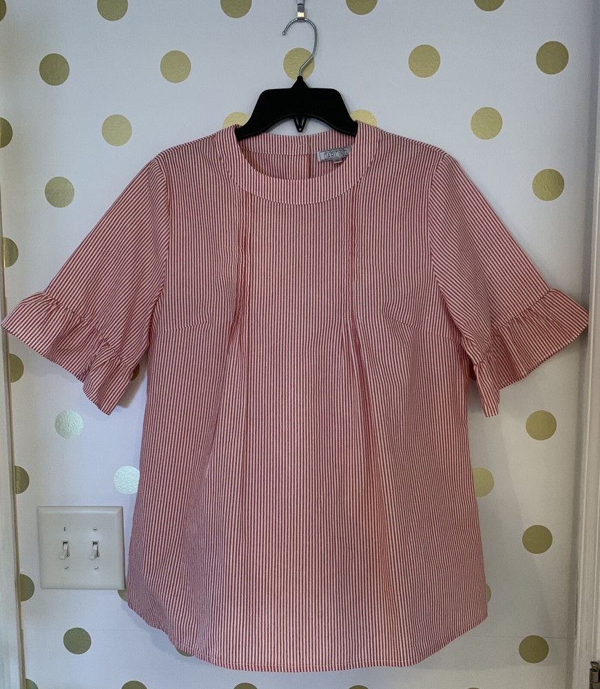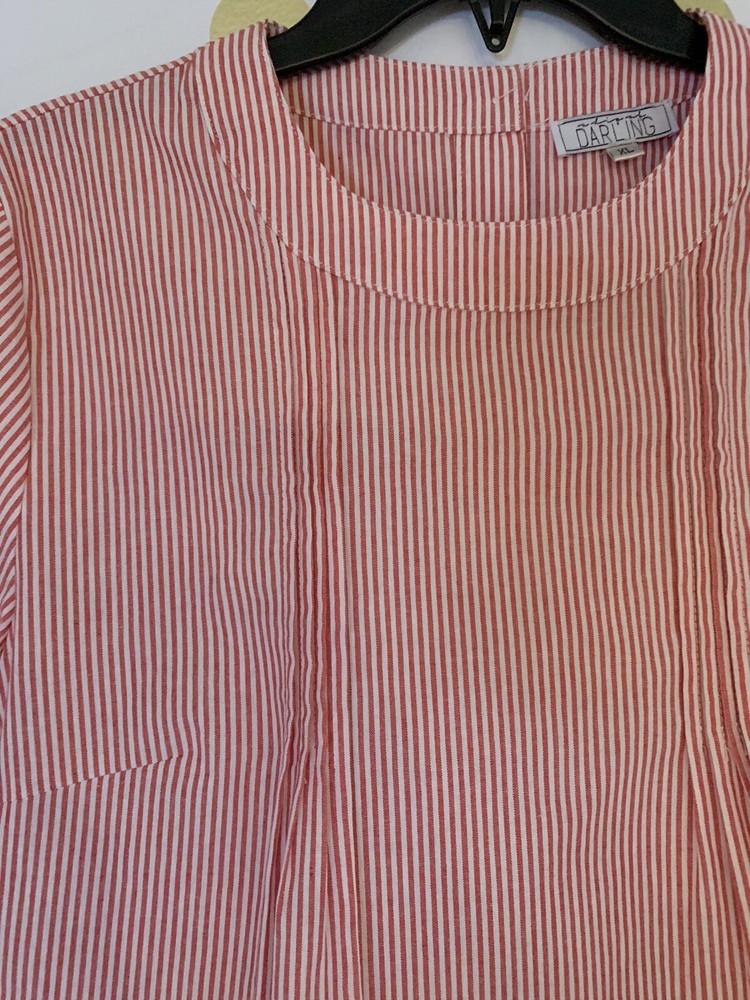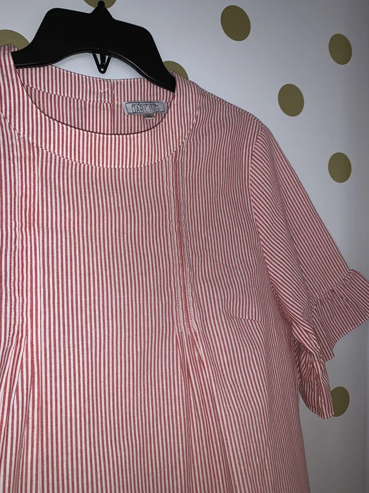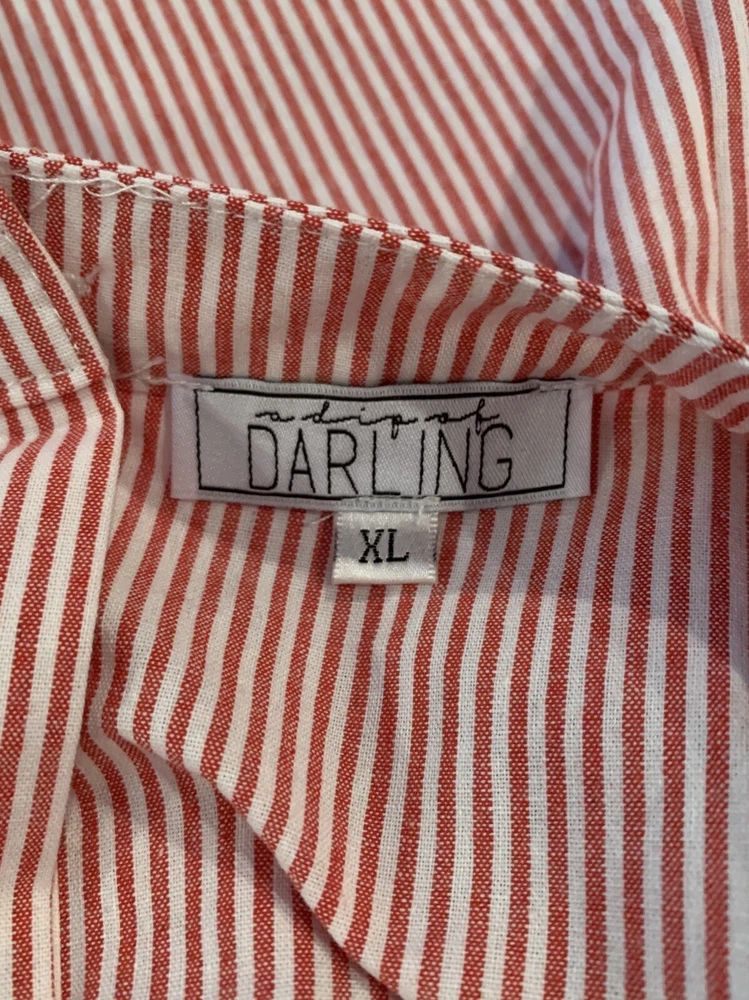 A Dip Of Darling XL red White Seersucker Flutter Shirt . Button up back. Excellent used condition. Smoke-free home. Condition is Pre-owned. Shipped with USPS First Class.