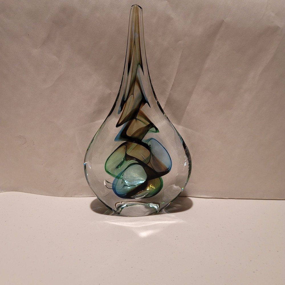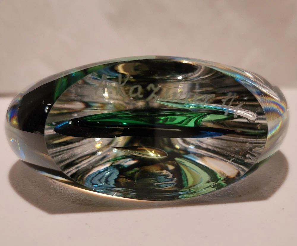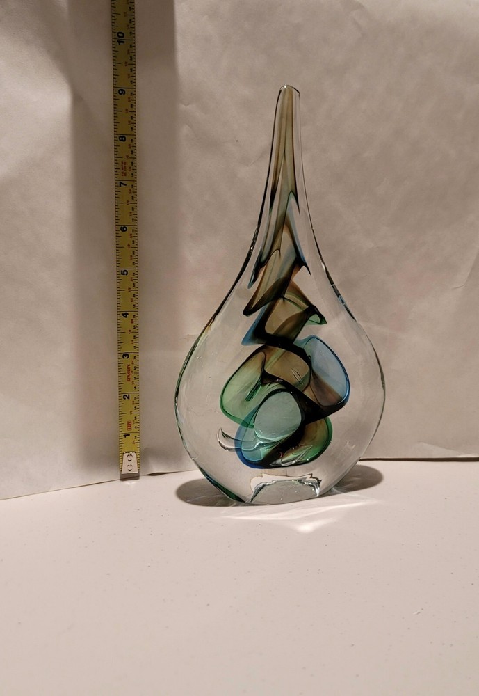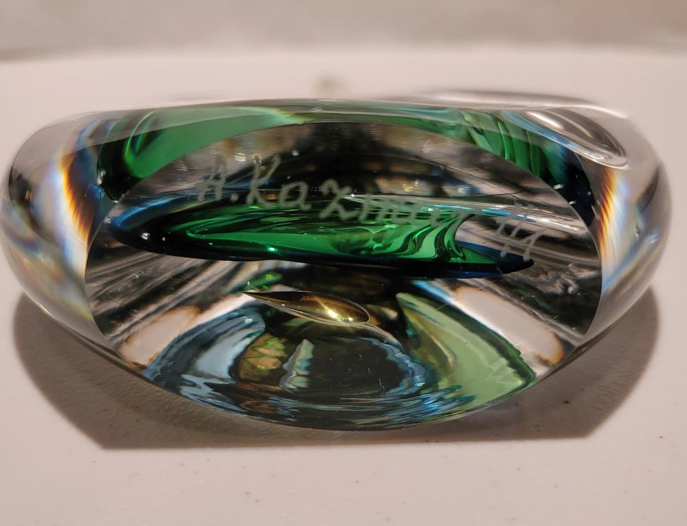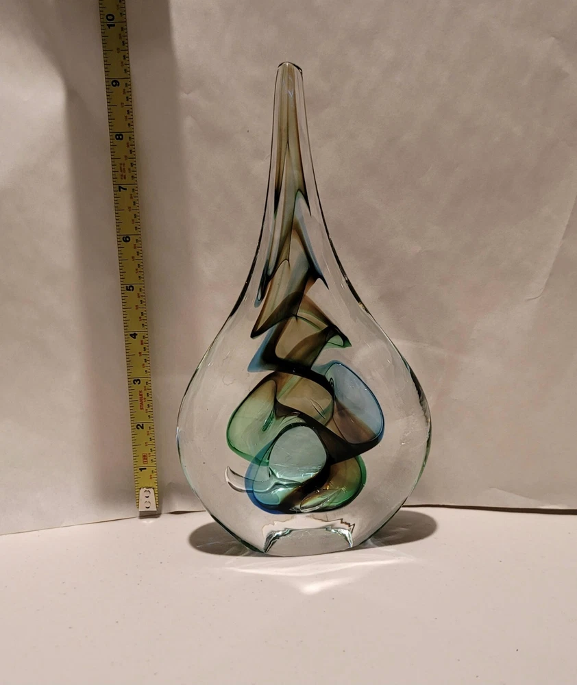 This exquisite paperweight from A Kazmar Studios is a true masterpiece of contemporary art glass. The beautiful teardrop shape and multicolored swirl pattern make it a stunning addition to any collection. Crafted by hand in Poland using the hand blown glass production technique, this original piece is signed by the artist and features a decorative design that is sure to impress. The vintage-inspired style and antique look of this paperweight make it a unique and timeless piece that will never go out of fashion. Whether you're a collector or simply looking for a beautiful and unique decorative item, this A Kazmar Studios paperweight is sure to exceed your expectations. The piece is in excellent condition no chips cracks or scratches..the items are described as accurately and honestly as possible. Happy to answer any questions. Thank you..