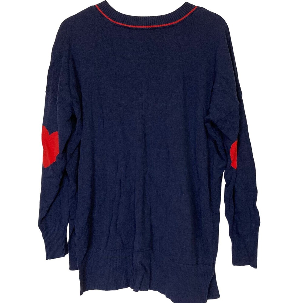 <![CDATA[<div>A630700 STUDIO PARK x Amy Stran V-Neck Heart Sleeve Sweater Navy L Condition: NWOT Size: Large Colorway: Navy If ever there was a moment to wear your heart on your sleeve...it's now! So, scoop up this sweetly detailed color-pop sweater -- created in collab with QVC® Program Host Amy Stran -- and schedule some time with your squad. Crafted to be as touchably soft as it is sweet, it's an invitation to lounge together, laugh together, and (maybe) grab a few drinks together. From Studio ParkTM x Amy Stran. Fabrication: sweater knit Features: contrast intarsia heart shape at elbows, ribbed V-neckline with contrast stripe, drop-shoulder long sleeves, ribbed cuffs and hi-low hem, side slits Navy: red contrast details Ivory: pink contrast details Red/Pink Orchid: ivory contrast details Cool Blue: navy contrast details Apple Mint: pink orchid contrast details Fit: relaxed fit; generously cut with maximum wearing ease Length: missy length 25-1/4" to 27-5/8"; plus length 28" to 31-1/2" Content: 60% cotton/40% rayon Care: machine wash cold, dry flat Imported
