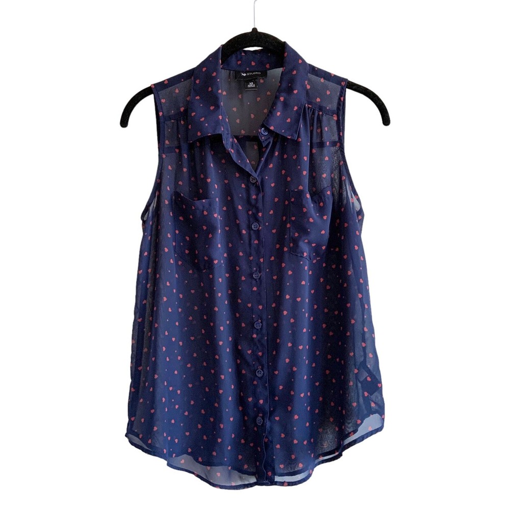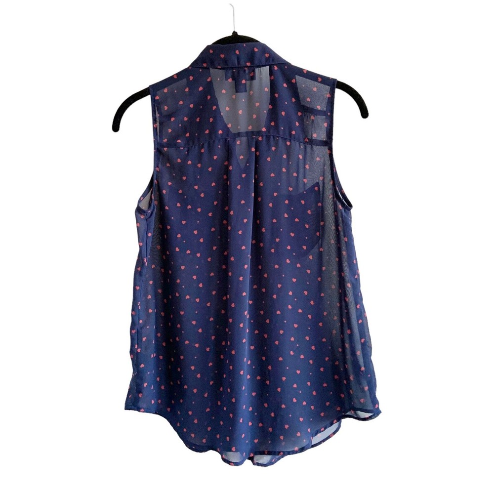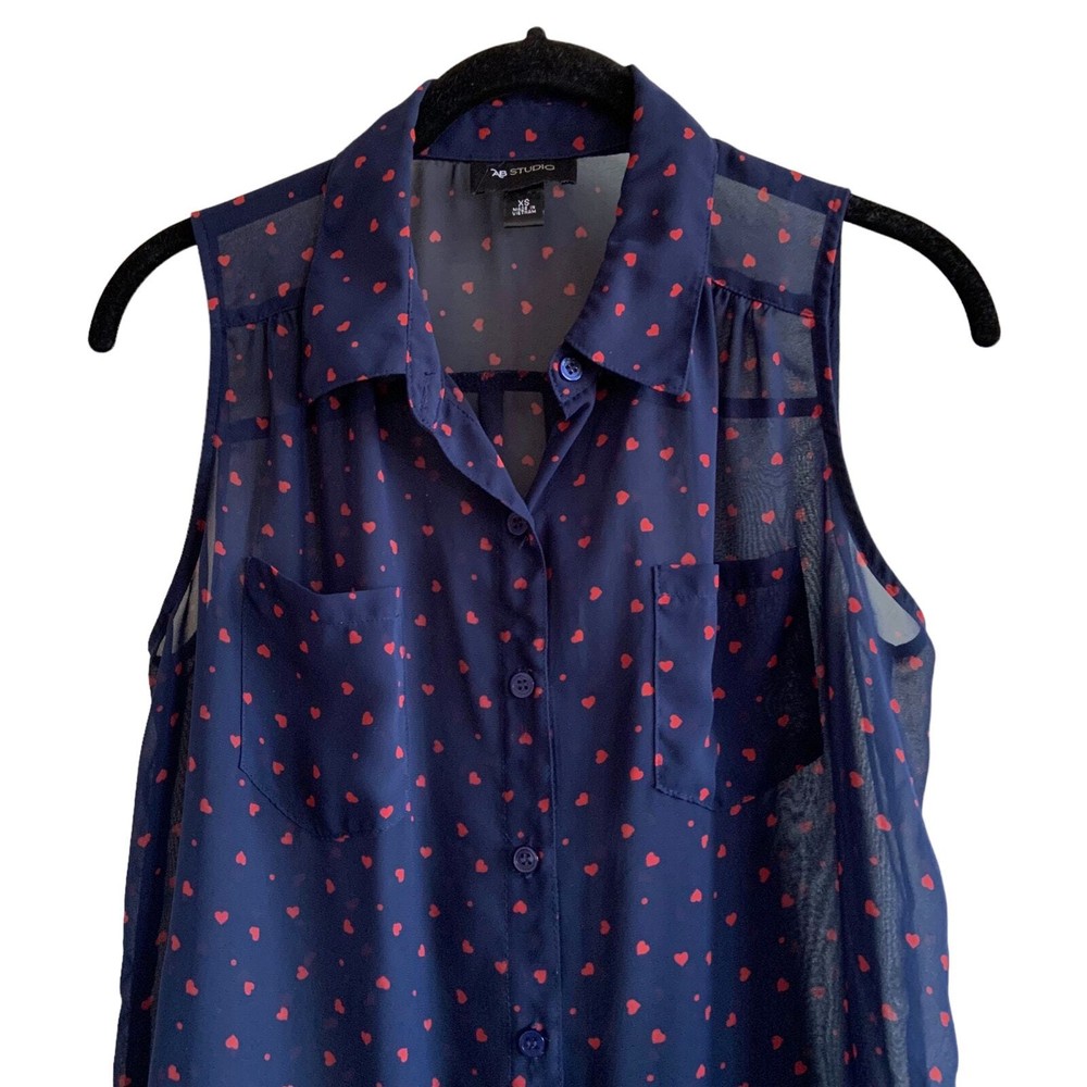 <![CDATA[<div>AB Studio XS Heart Print Sheer Sleeveless Button Up Very Good Condition! Approximate Measurements Pit to Pit: 18" Length: 24" Smoke-free, pet-free home Please let me know if you have any questions!