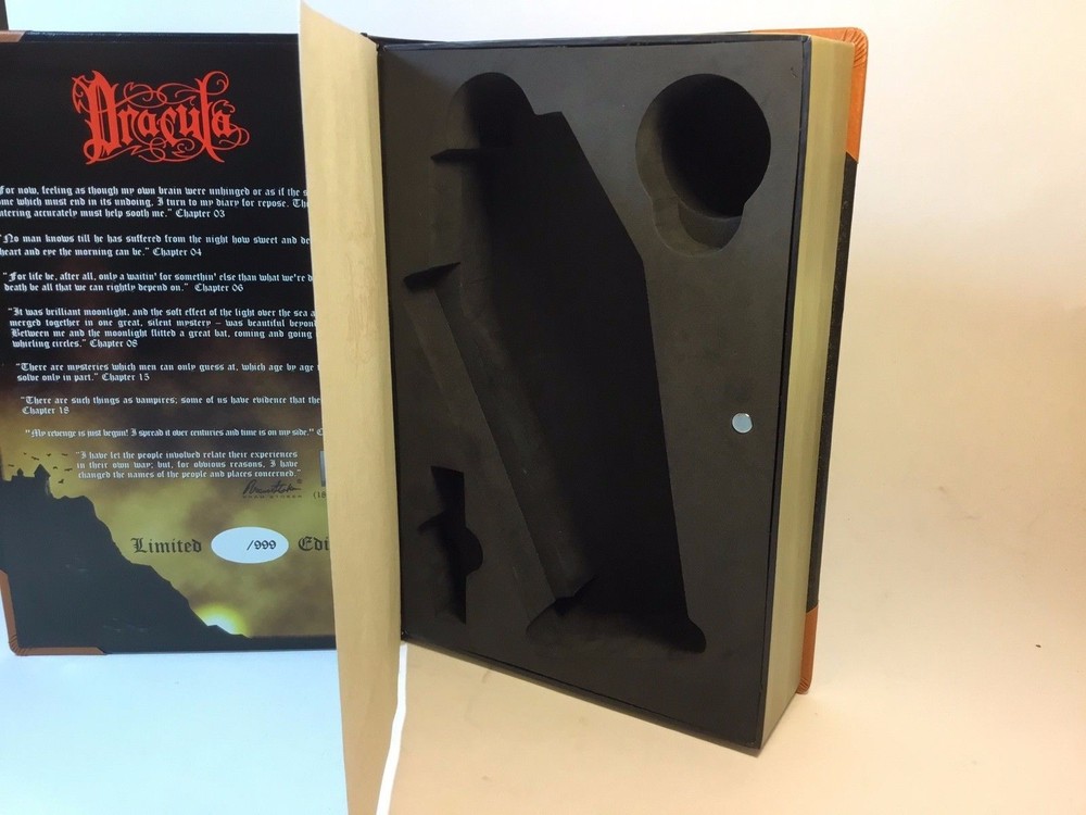 ACME Studio Bram Stoker's DRACULA Anniversary Pen EMPTY Packaging NEW Not the pen , this is the empty book shaped pen packaging. If you’d like the complete set, we have that too. Let us know. Dimensions: Book Packaging: D: 2-3/8" W: 7" H: 10-1/8" All sales final. About ACME Studio Started in 1985, ACME Studio is an international product design company, producing and marketing writing instruments, and other design objects. Its products are the result of cooperation with the world’s leading architects, designers, artists, foundations, estates and institutions. ACME Studio has a habit of producing limited editions and/or discontinuing products and destroying the molds – this causes items to become very unique and collectible. Check out our eBay storefront for more ACME Studio products! https://www.ebay.com/str/designmafiastore WE COMBINE SHIPPING! Upon payment we will pack a multiple item order to determine actual shipping cost so that we can then 'rebate' the appropriate combined shipping amount from the purchase payment in reasonable time. Any requests from buyer requiring any special packing and/or boxing, product packaging, or anything relating to combined shipping may incur an additional handling fee. Buyer will be notified in advance.